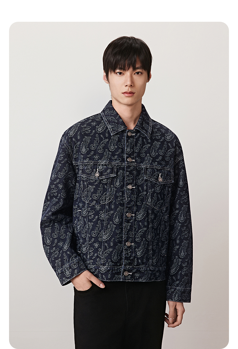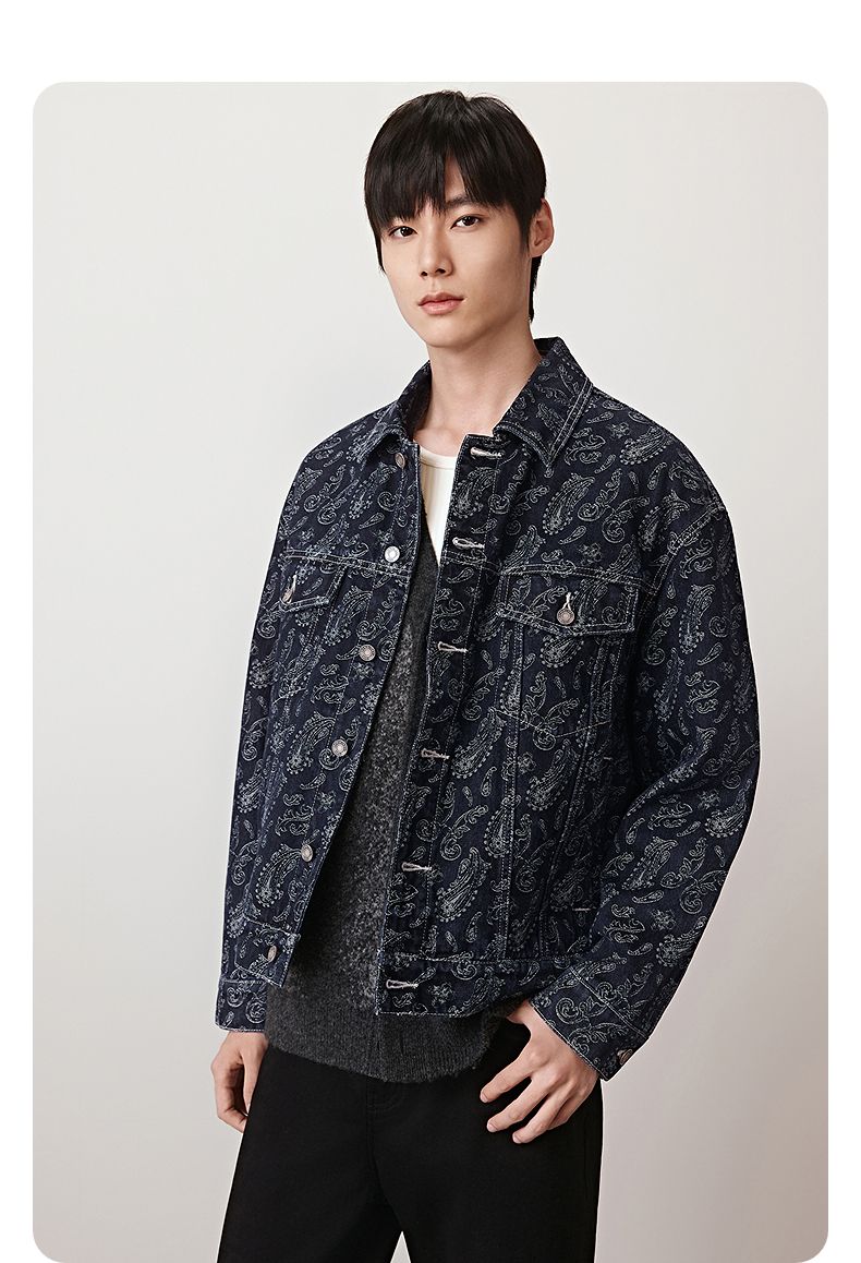GXG男装 提花设计廓形牛仔夹克男宽松复古牛仔外套 25秋季新品
