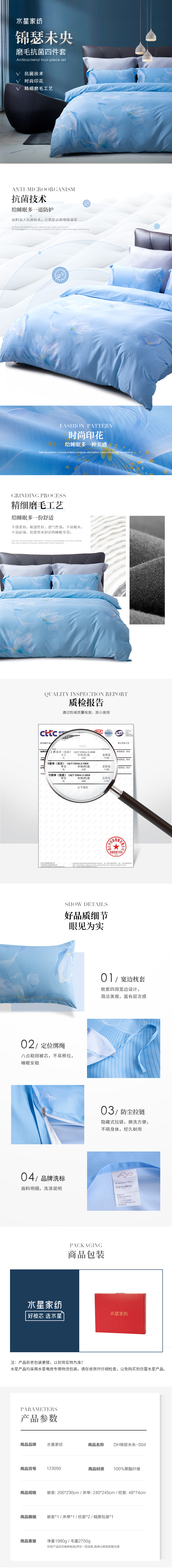 水星家纺 全涤磨毛四件套 锦瑟未央 被套:200*230cm 床单:240*245cm 枕套:48*74cm*2