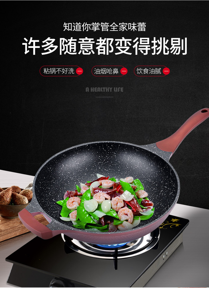 Debo 德铂德雷斯炒锅炒菜锅33cm3003合金聚能厚锅底无油烟明火电磁炉通用可立锅盖