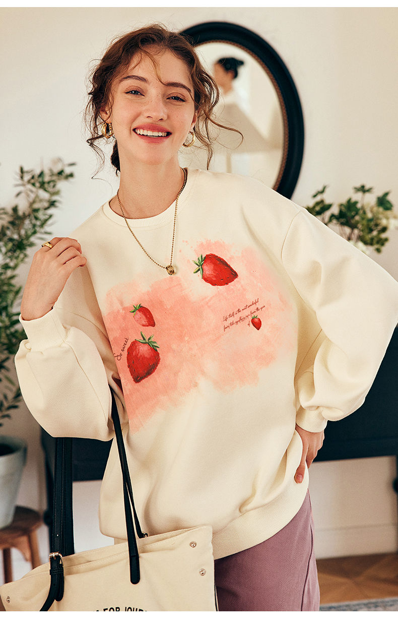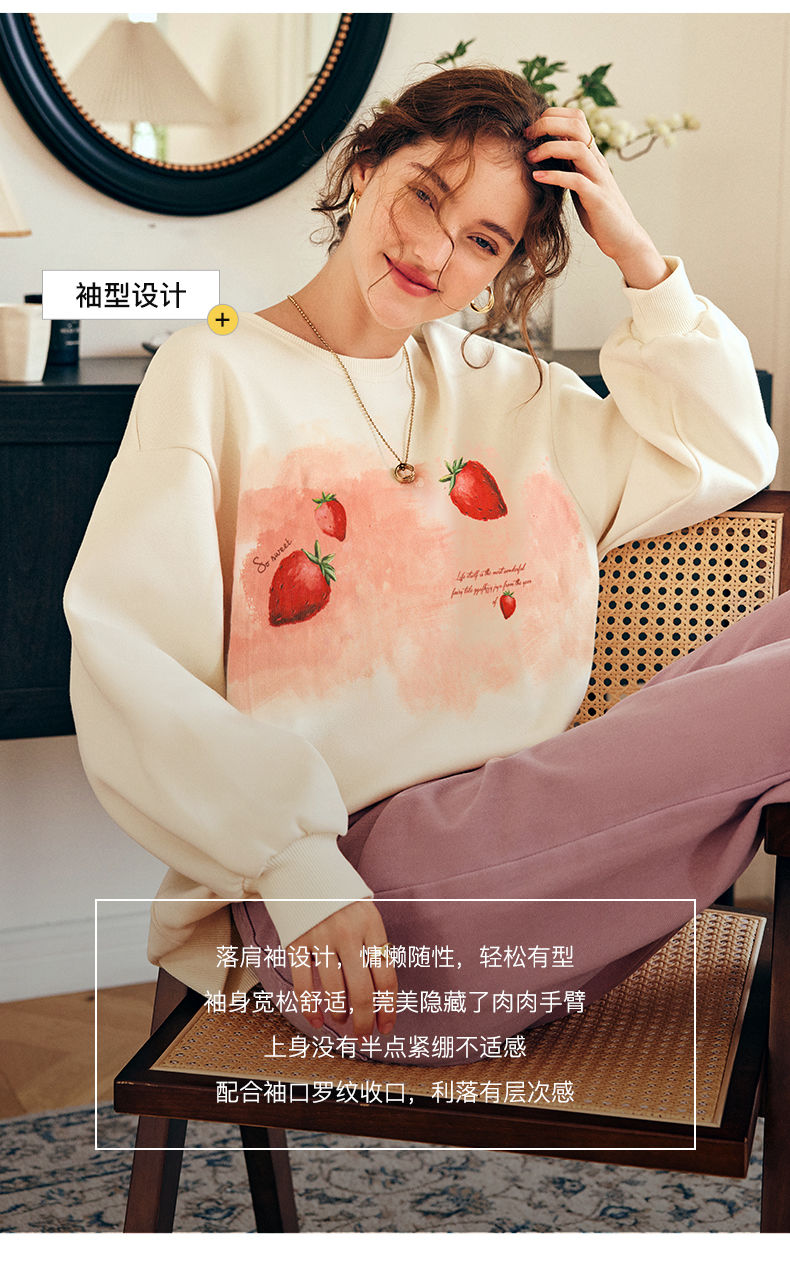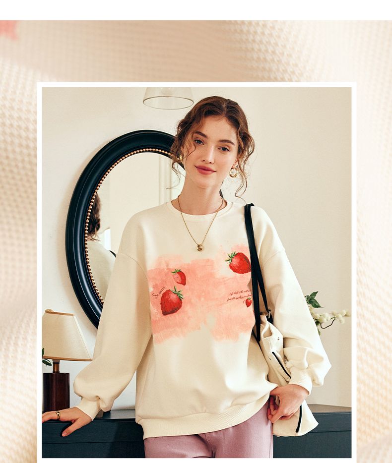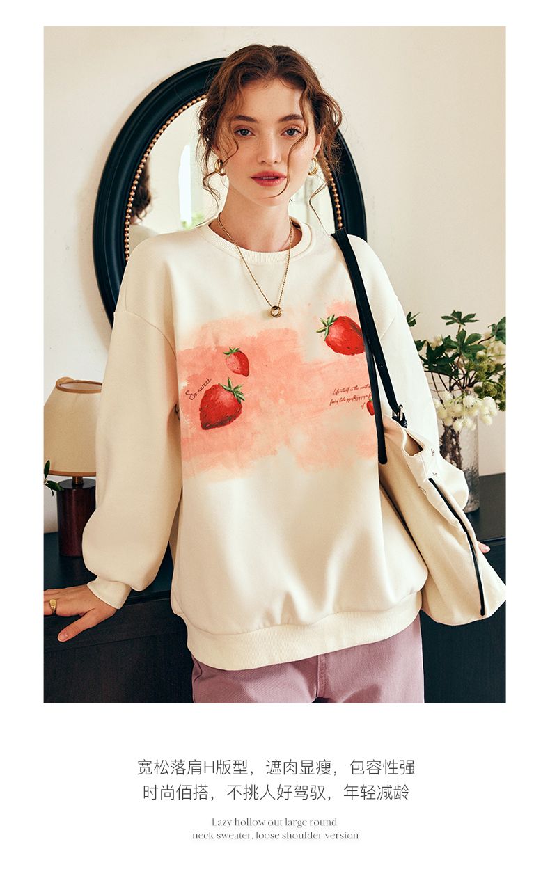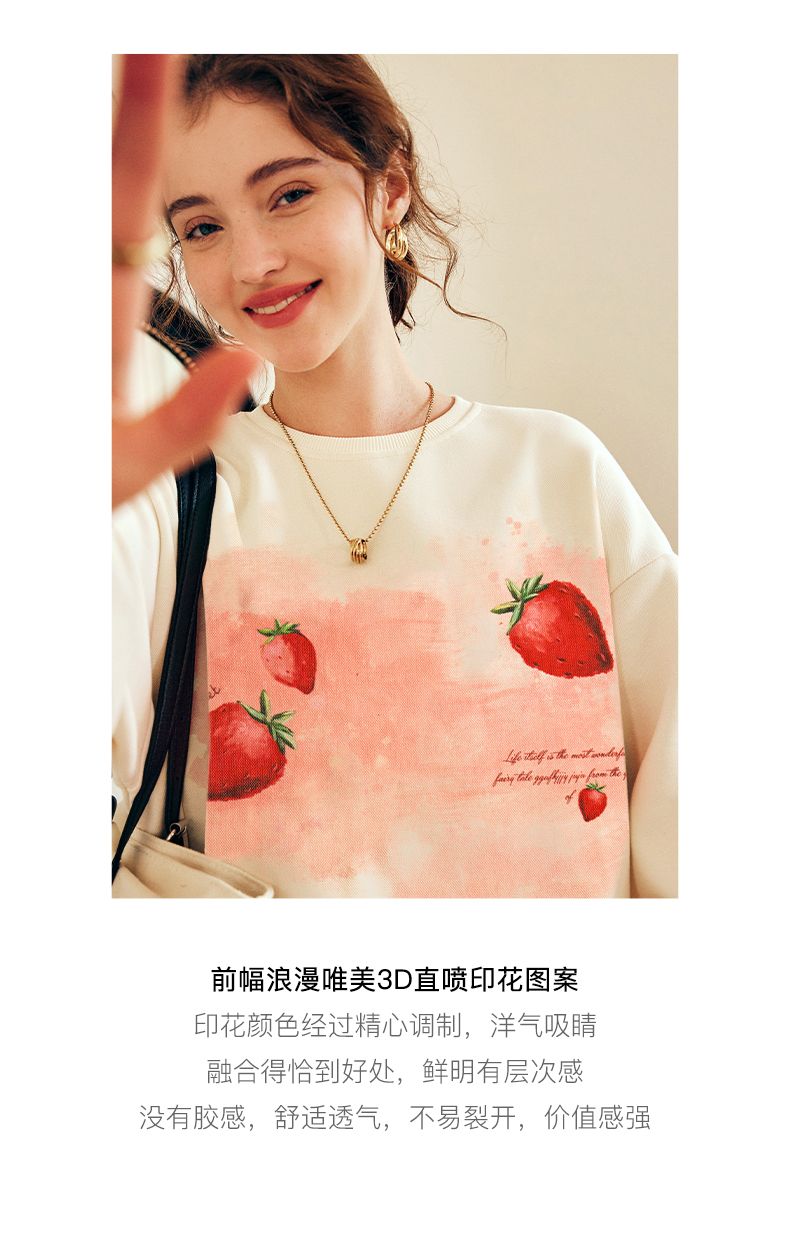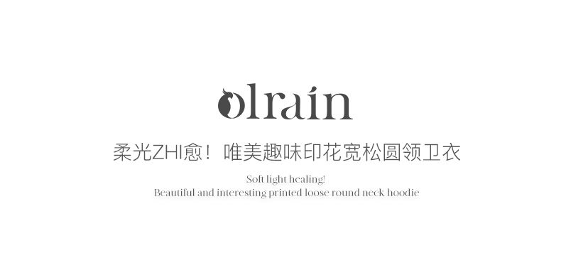 OLrain欧芮儿法式圆领卫衣女早春2023年新款宽松慵懒趣味印花上衣