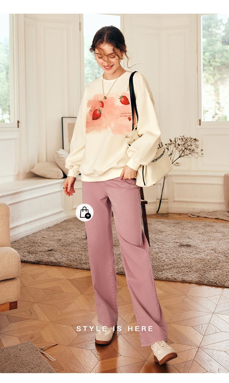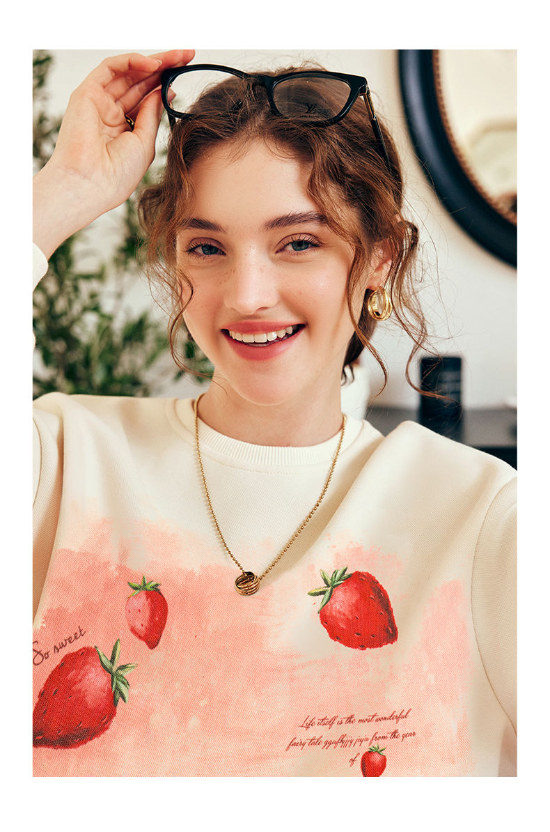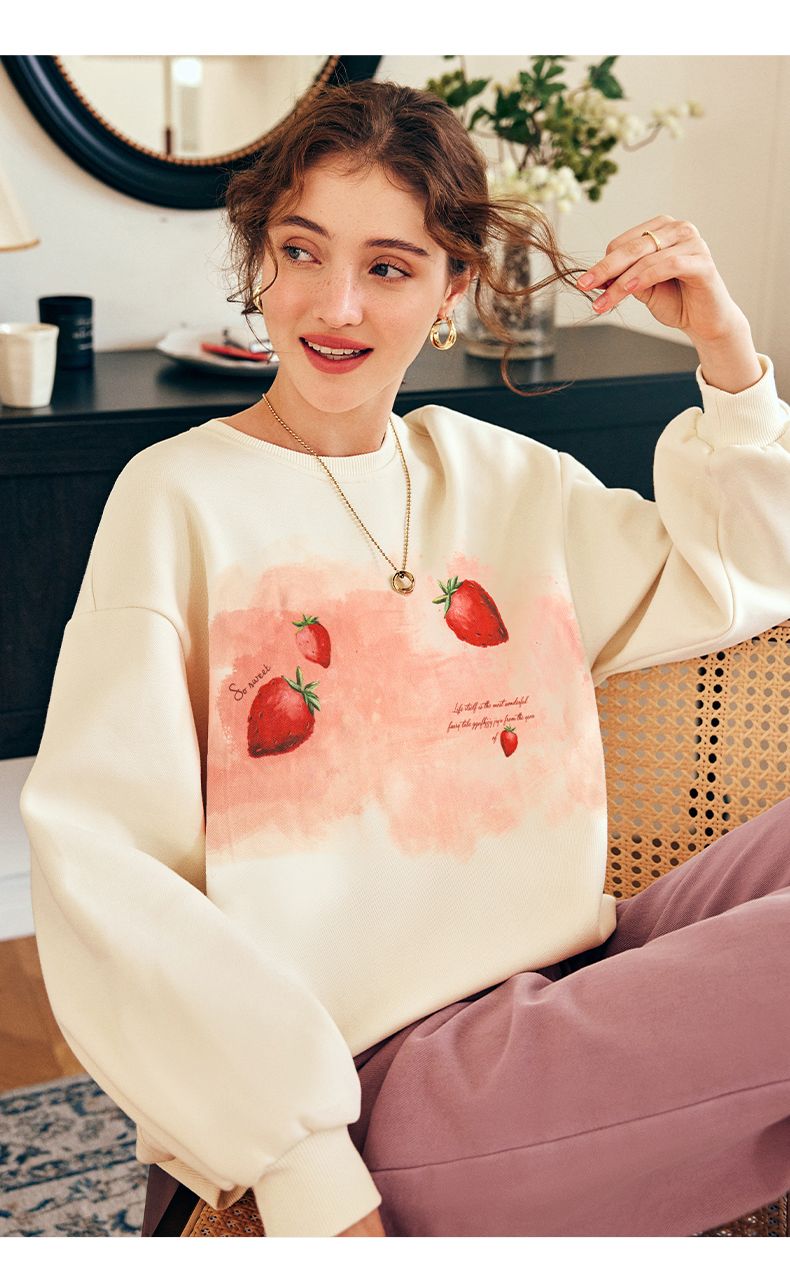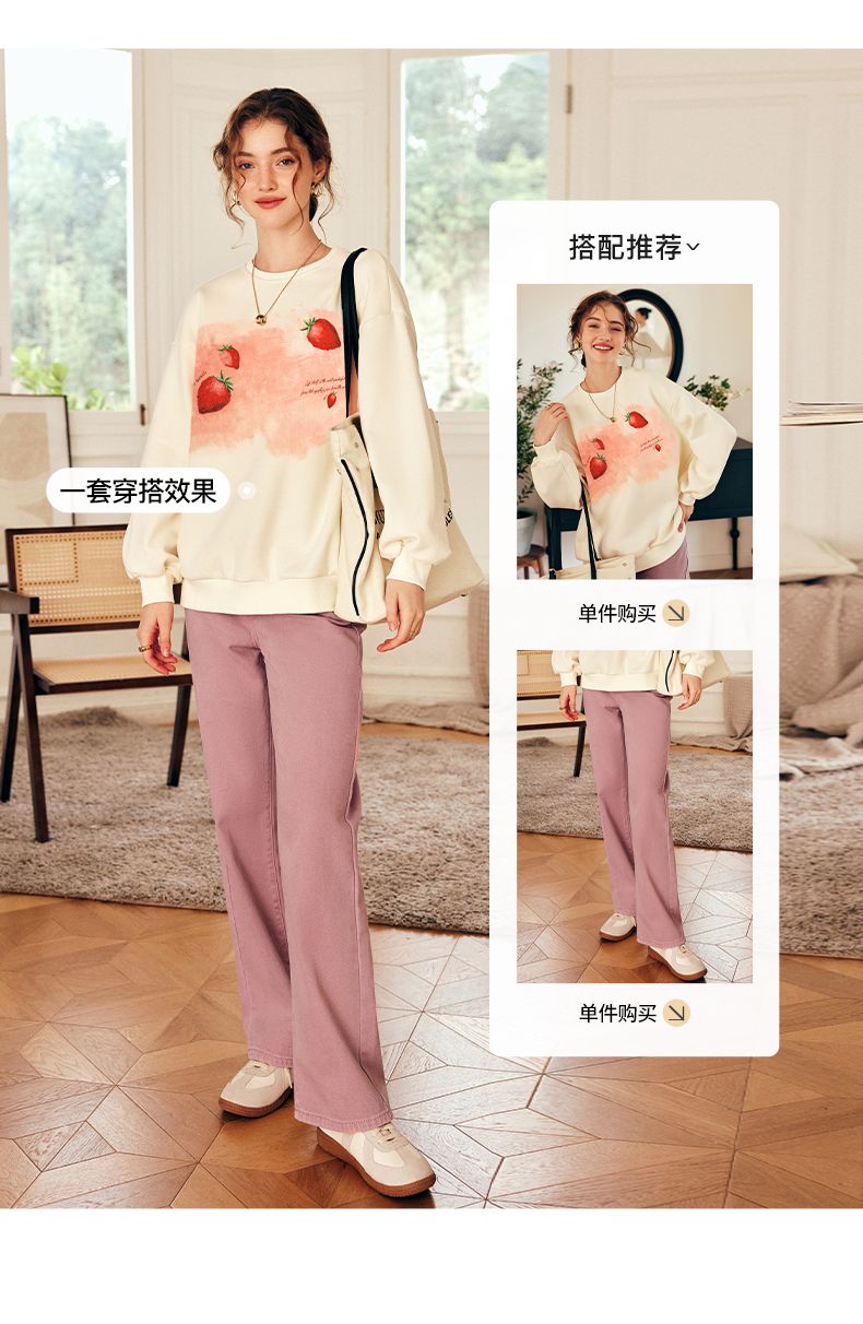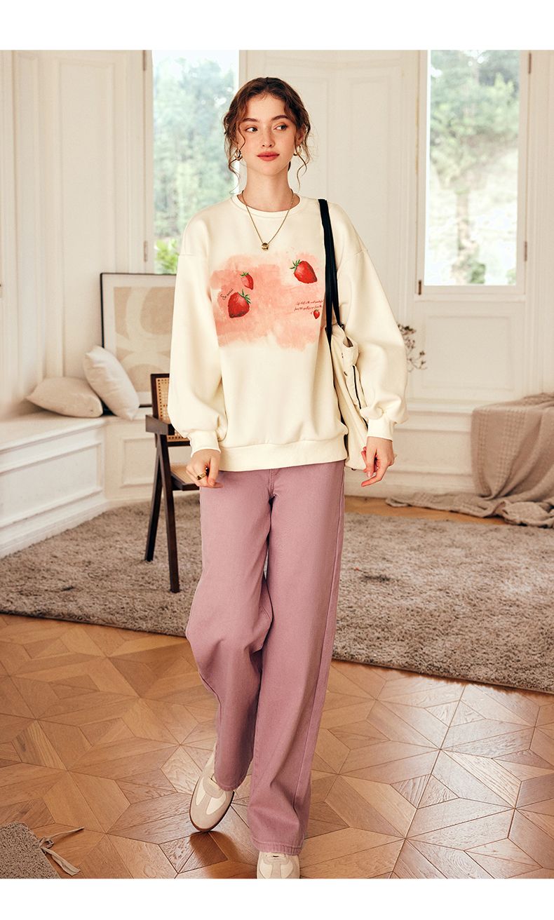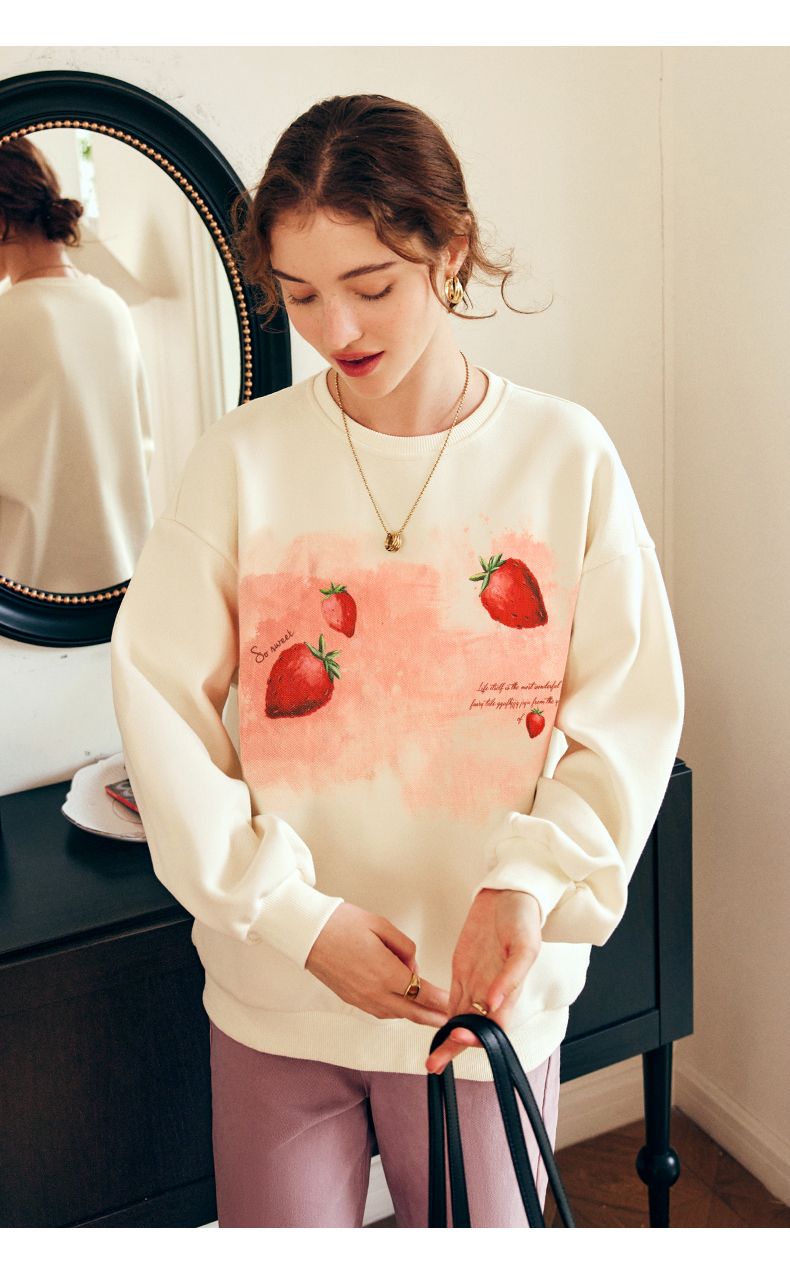 OLrain欧芮儿法式圆领卫衣女早春2023年新款宽松慵懒趣味印花上衣