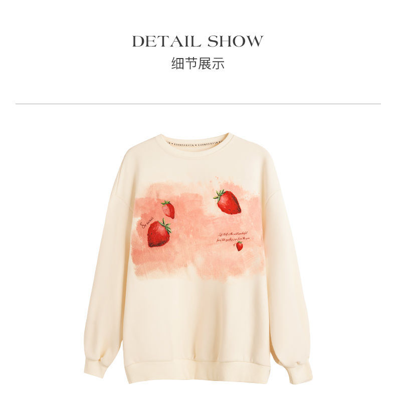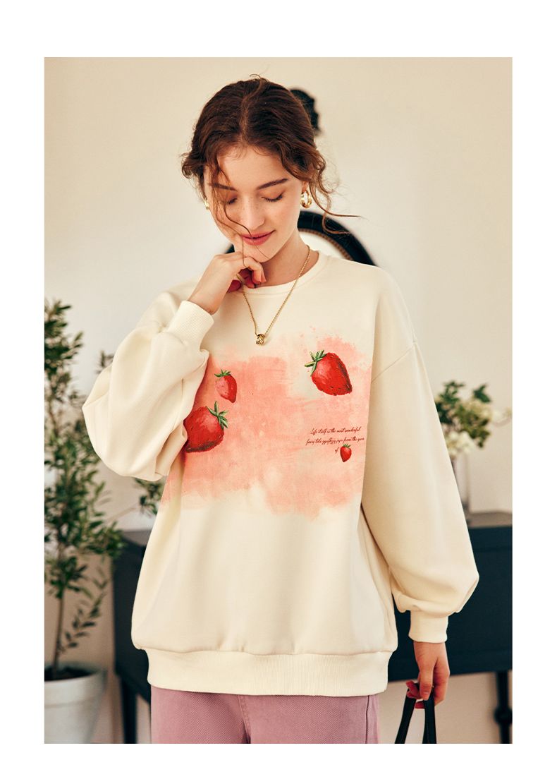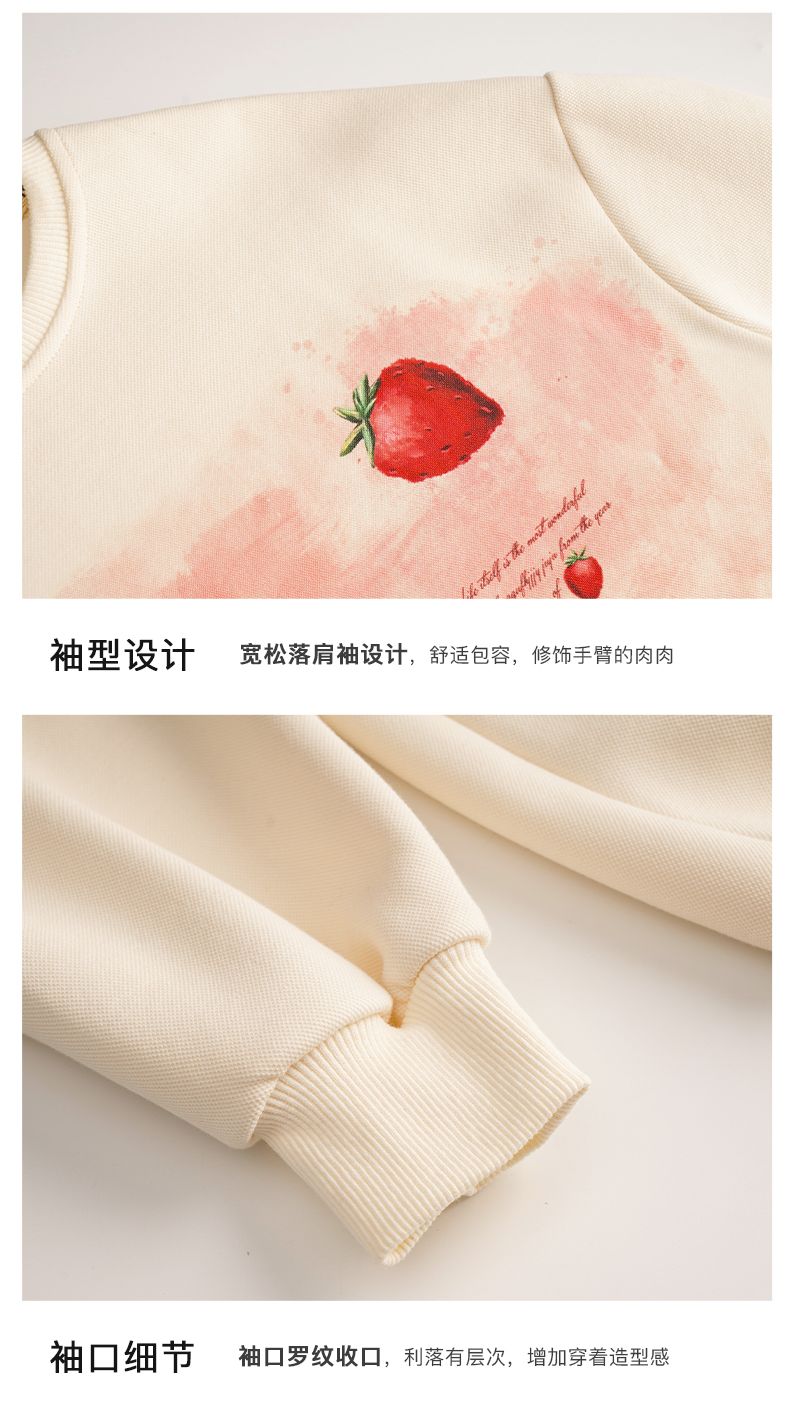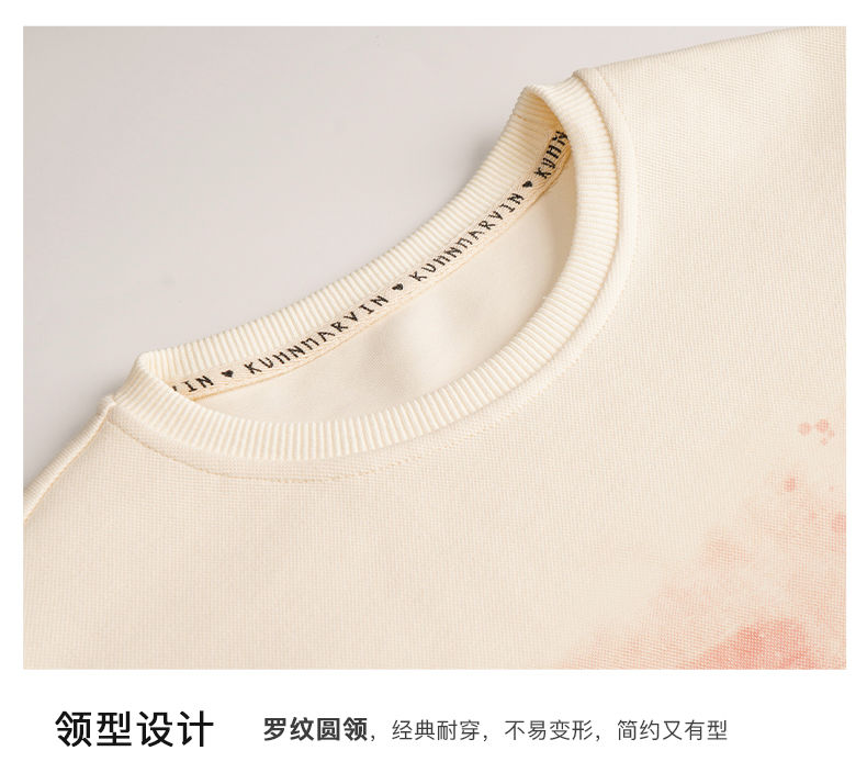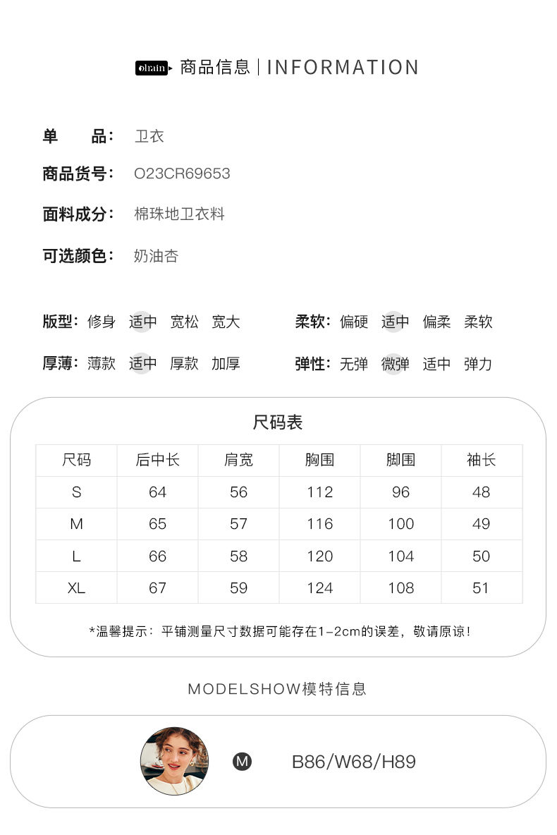 OLrain欧芮儿法式杏色卫衣女秋季2022年新款宽松珠地印花圆领上衣