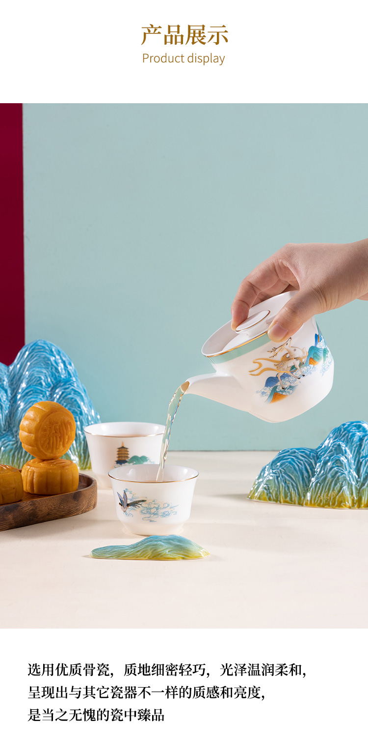 5头天元提梁壶—宝相青花茶具套装