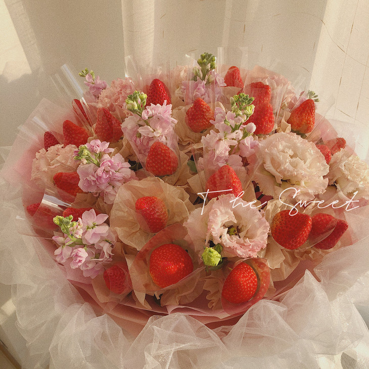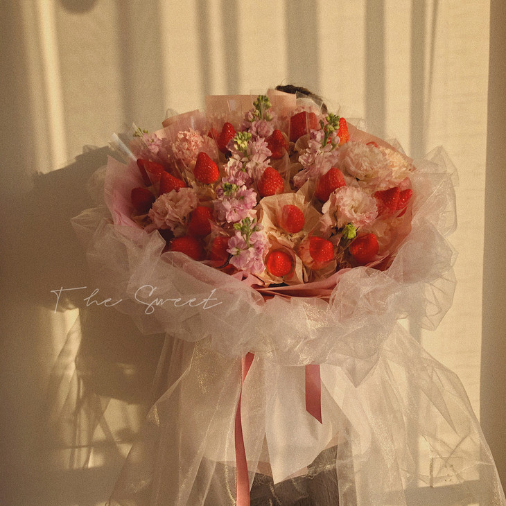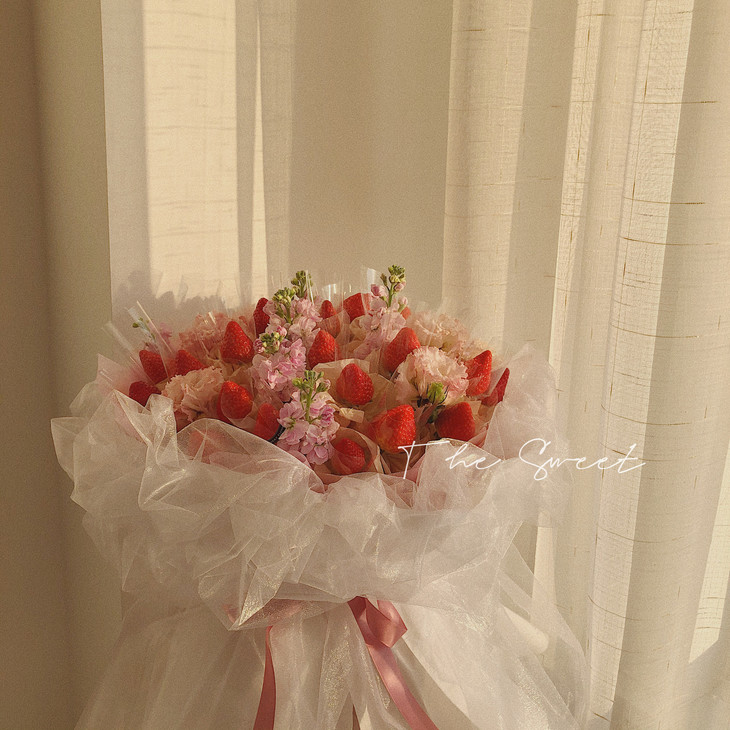 红彤彤的草莓在白纱的映衬下更显可爱诱人