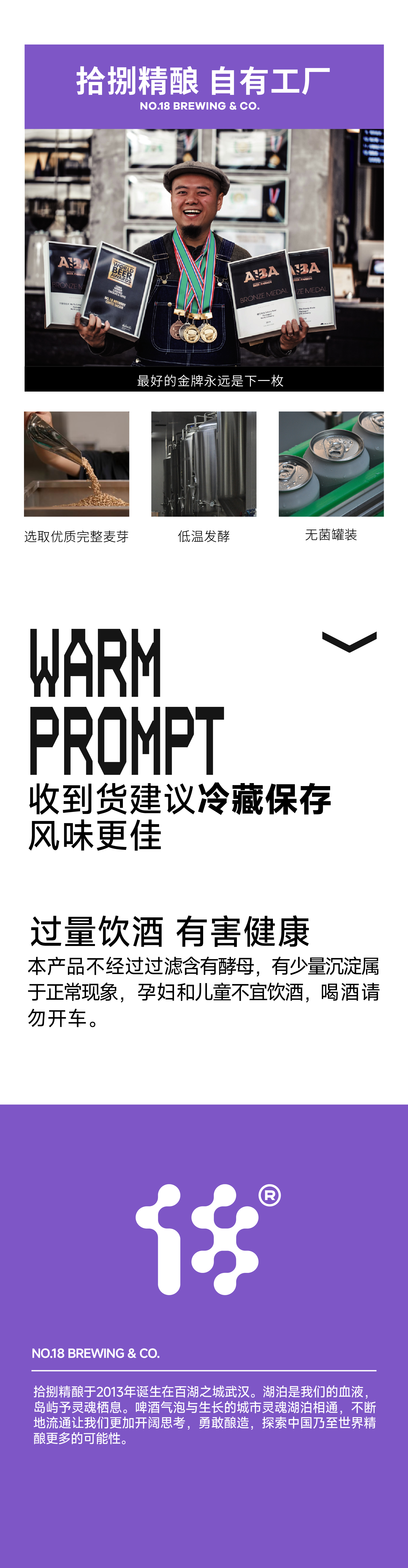 - 拾捌精酿酒厂创始于2013年,斩获15枚世界级精酿大奖。运营的精品餐酒吧18号酒馆,入选《LONELY PLANET》环球啤酒之旅中国五佳的精酿啤酒店铺。