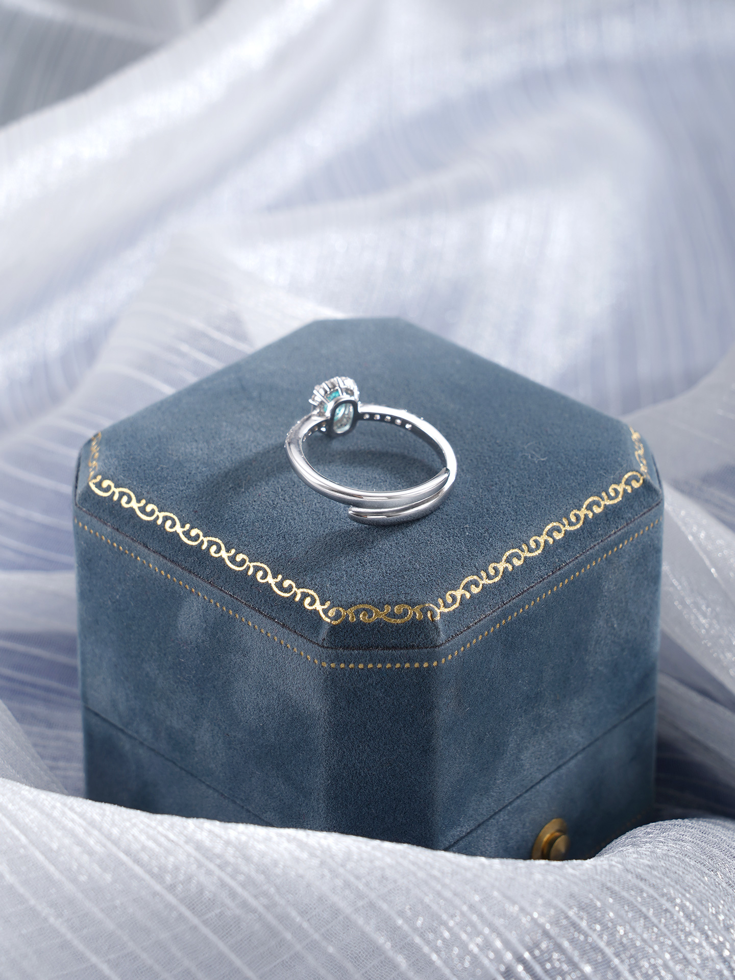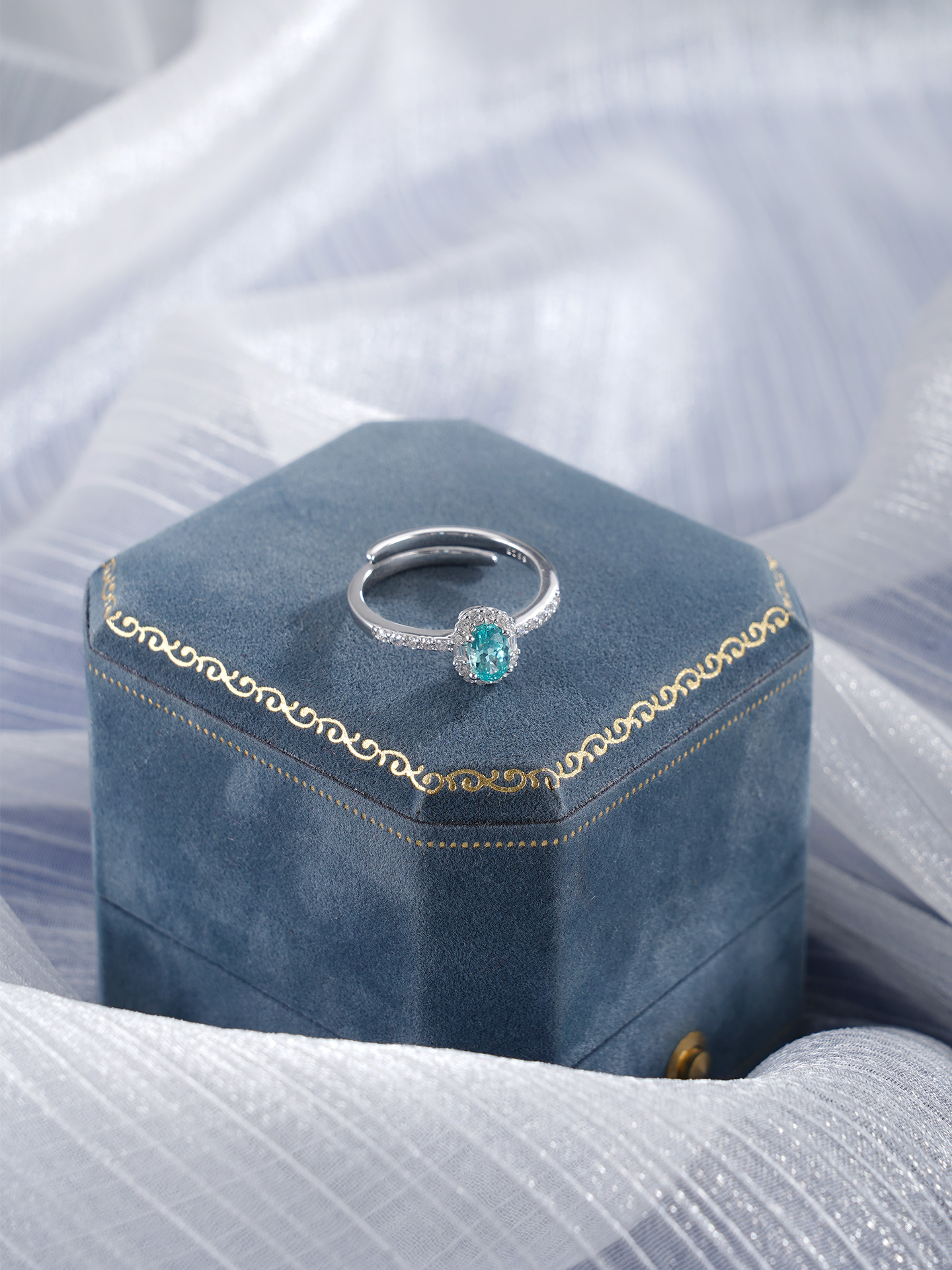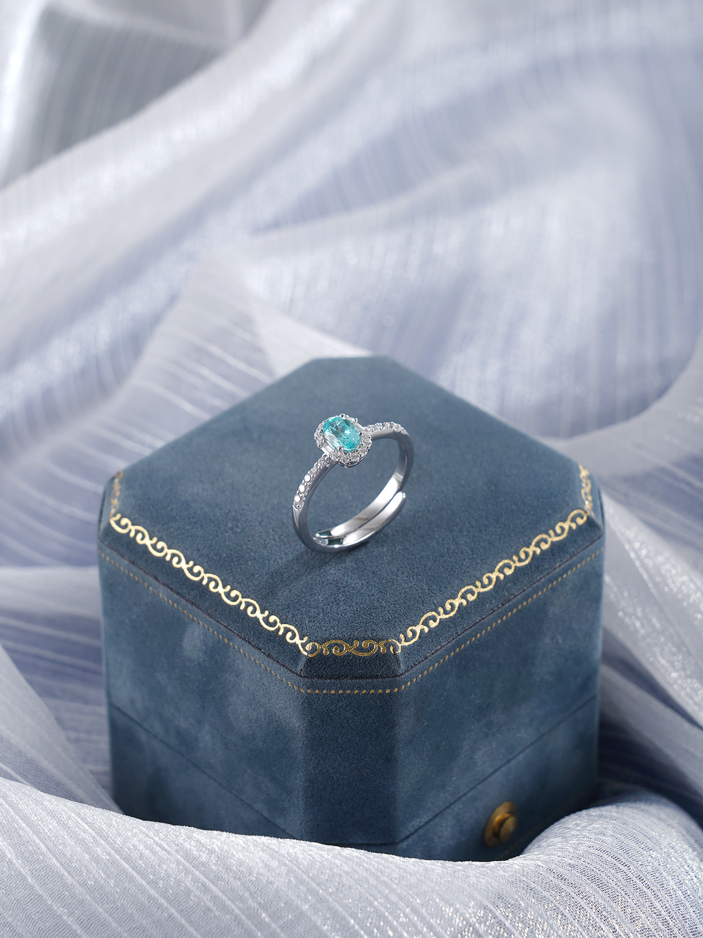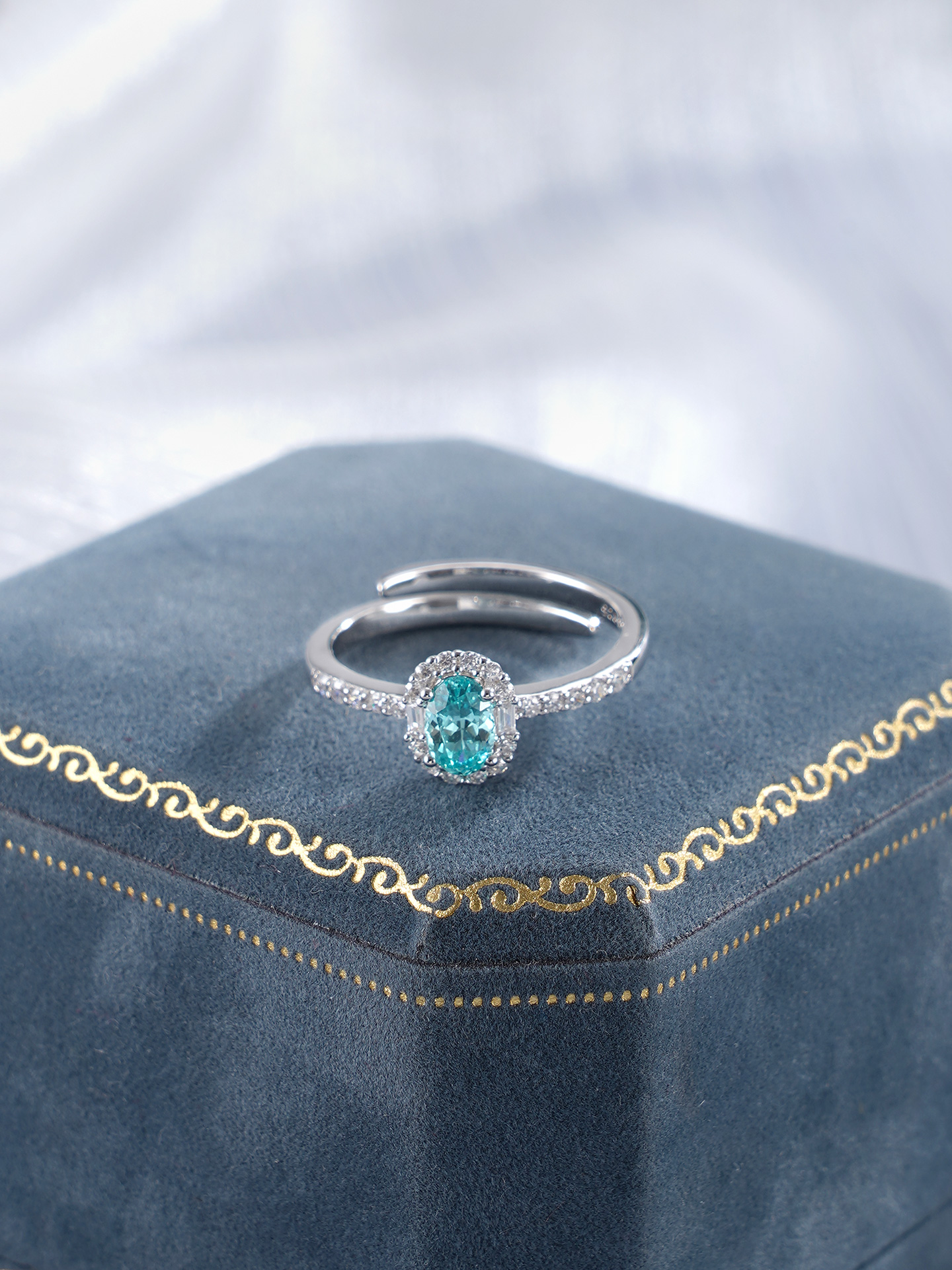 子佩集【宁静之海】S925银戒指【RM0517-XF】培育宝石帕拉伊巴蓝碧玺条钻2510