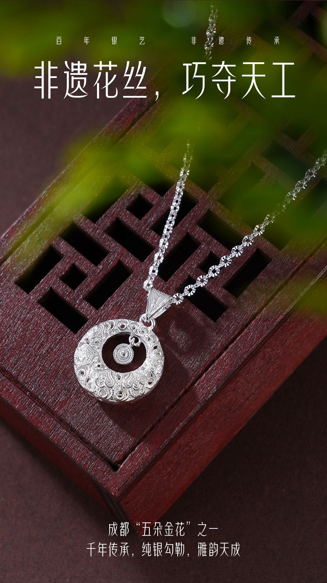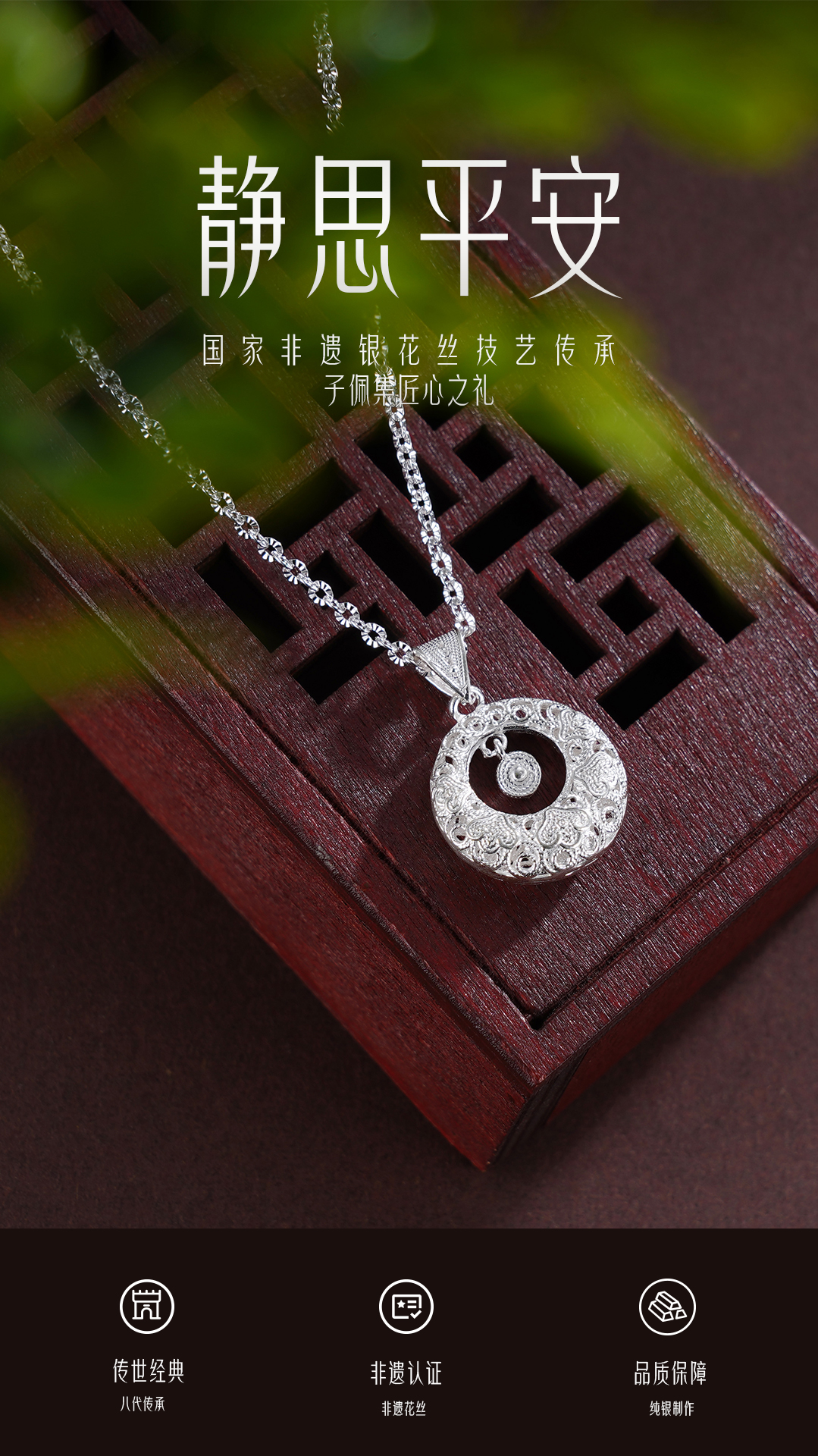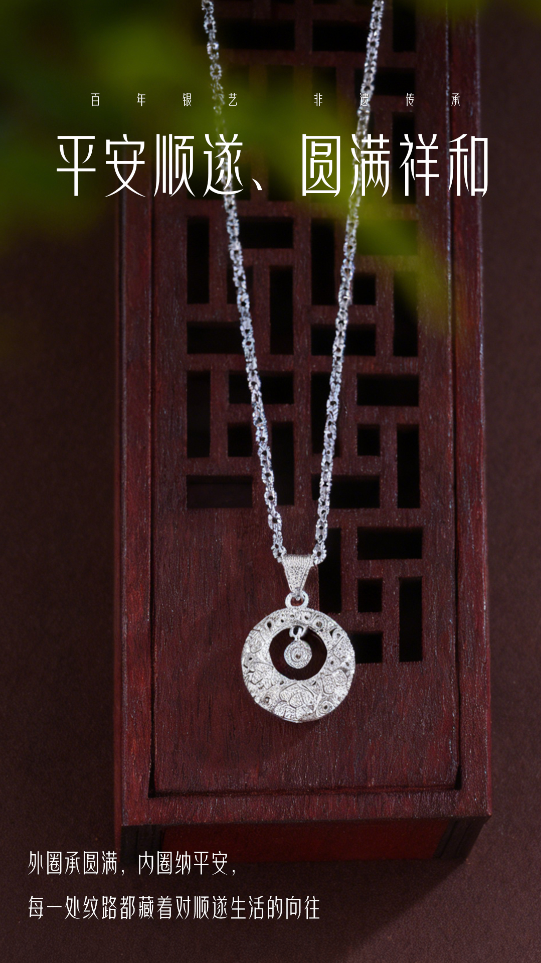 子佩集S990银【静思平安】套链【MXTL020】纯银花丝项链平安扣2412
