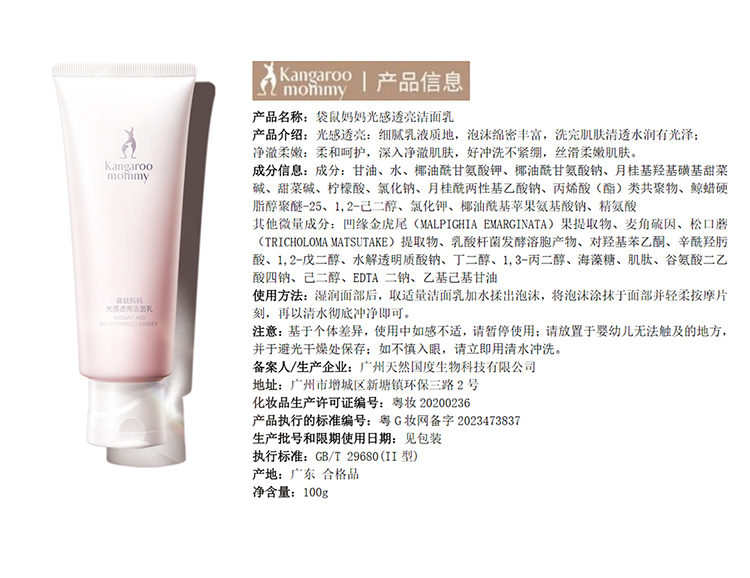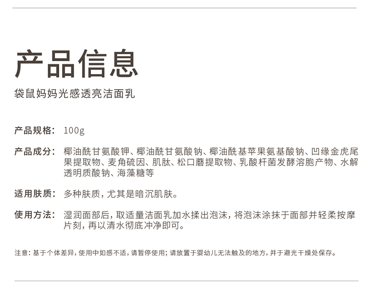 【光感洁面乳】氨基酸表活清洁 天然洁净 焕亮肌肤 光感透亮洁面乳(100g)