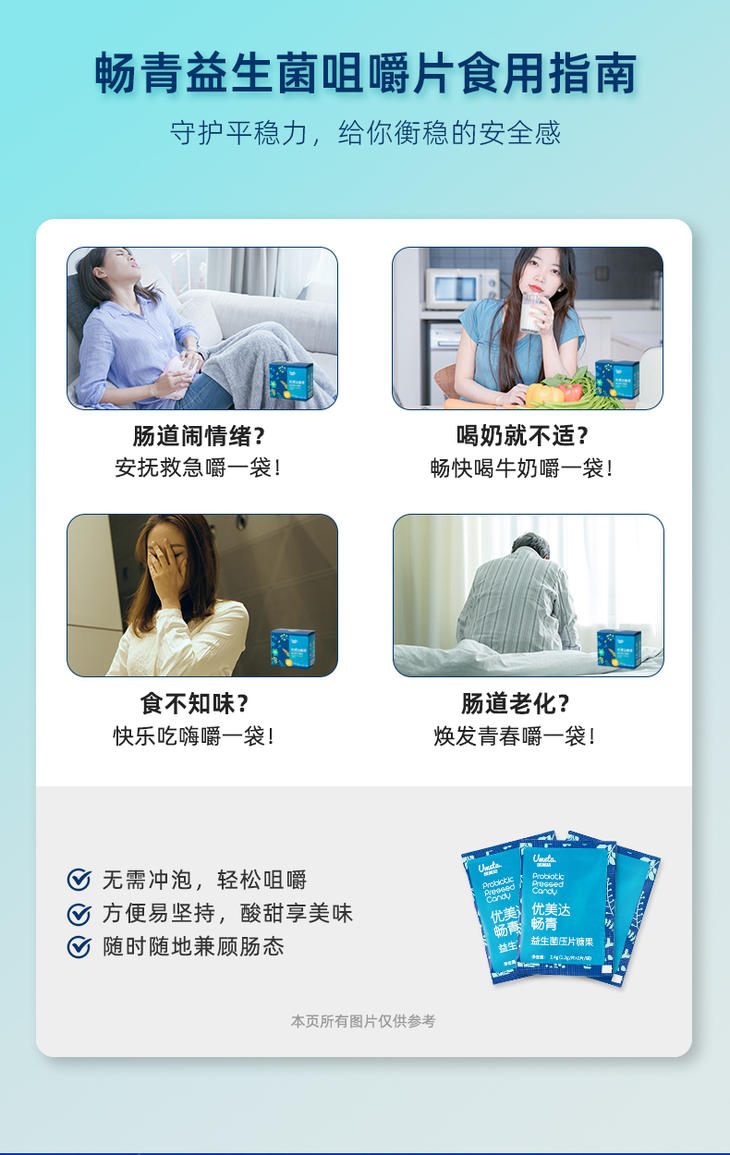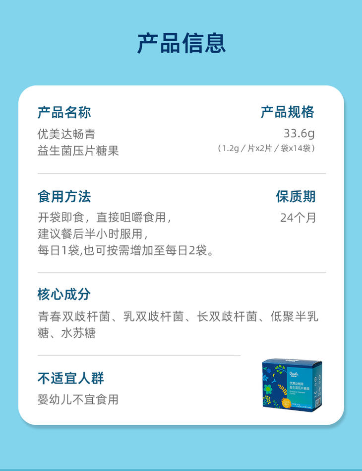 【肠肠健康】***优美达畅青益生菌压片糖果,补充实力派双歧杆菌@拒绝“拉到扶墙起”!肠肠平衡稳“菌心!(14袋/盒)