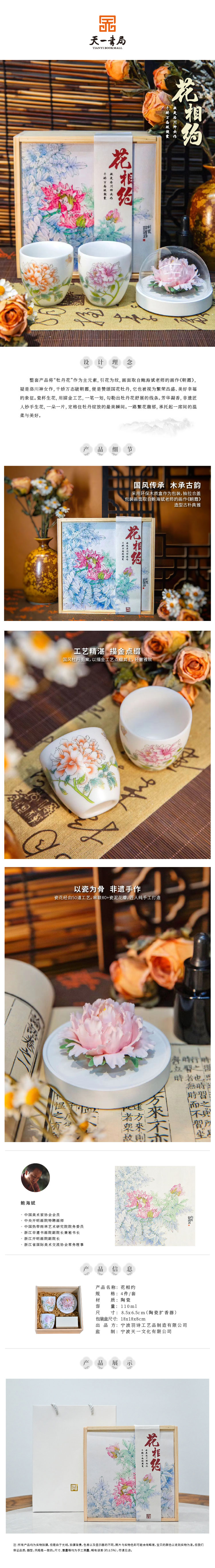 羽诗制造出品 花相约牡丹白瓷杯陶瓷扩香器香薰精油礼盒套装