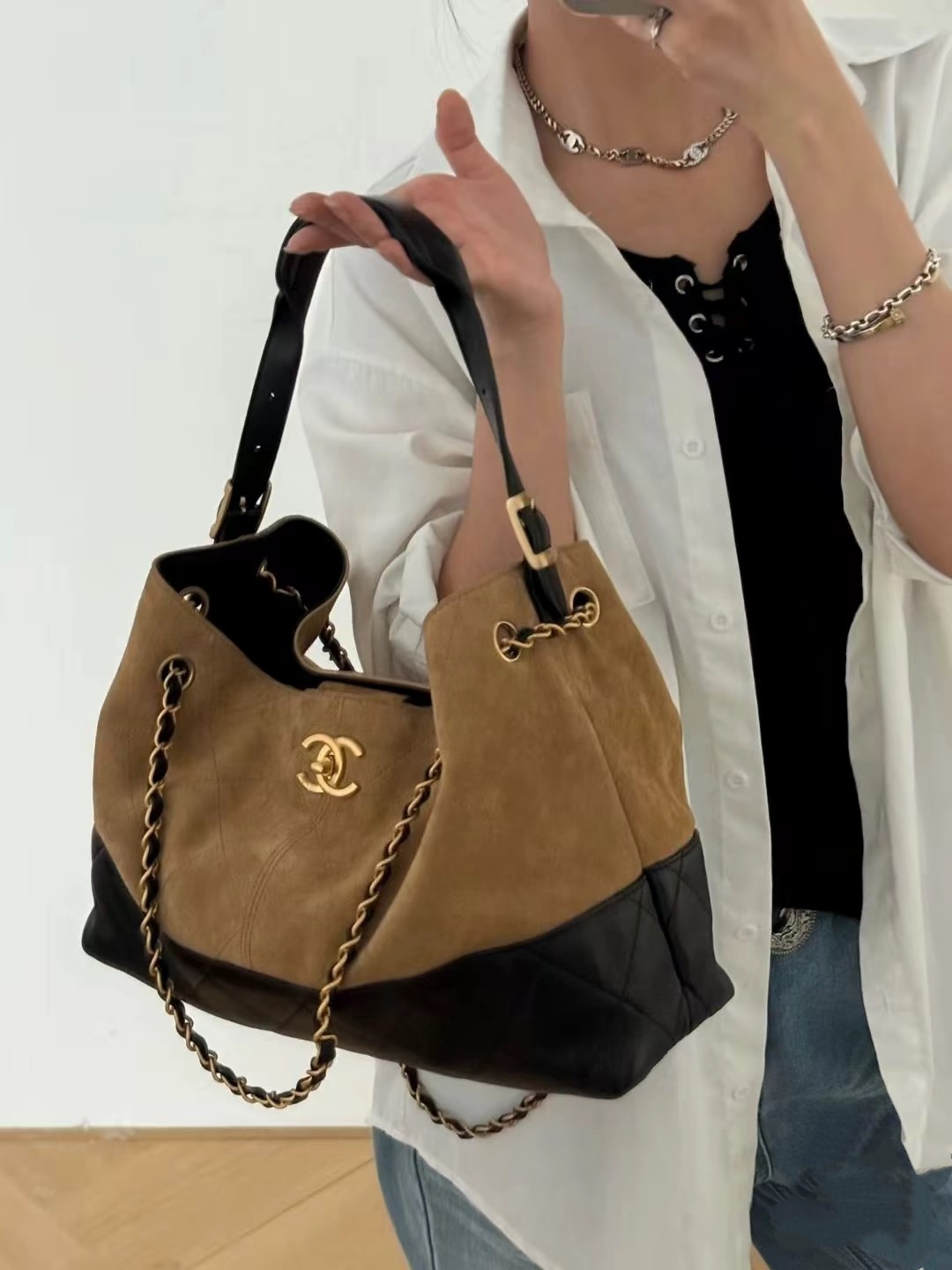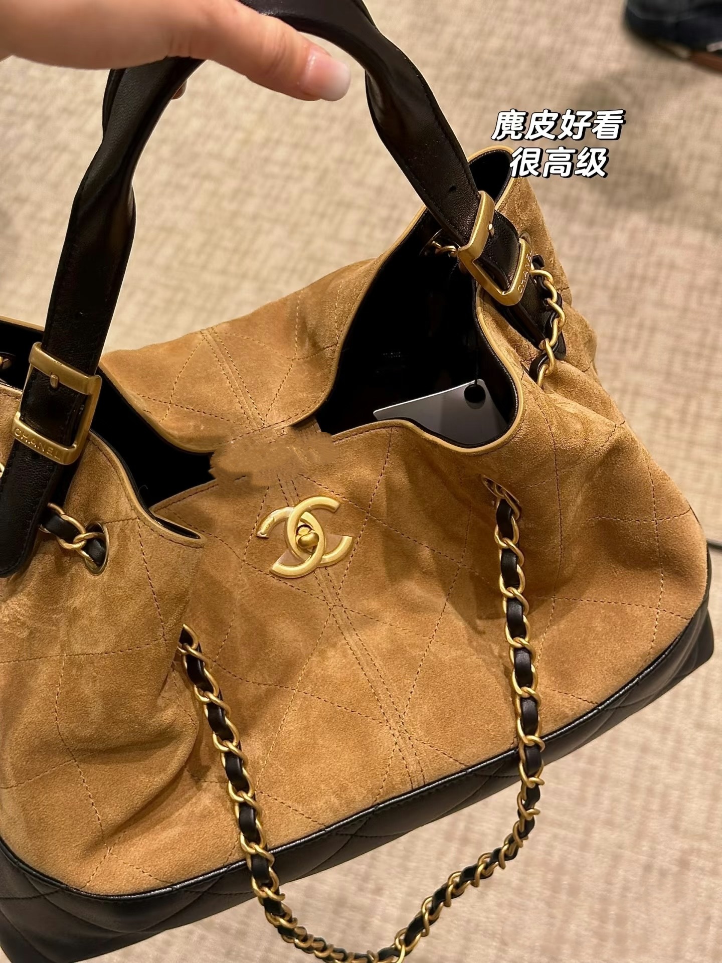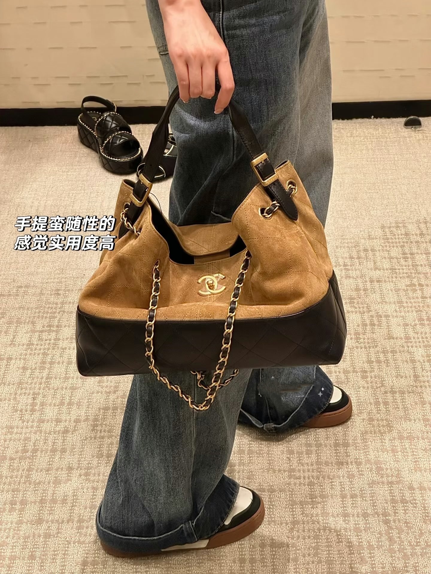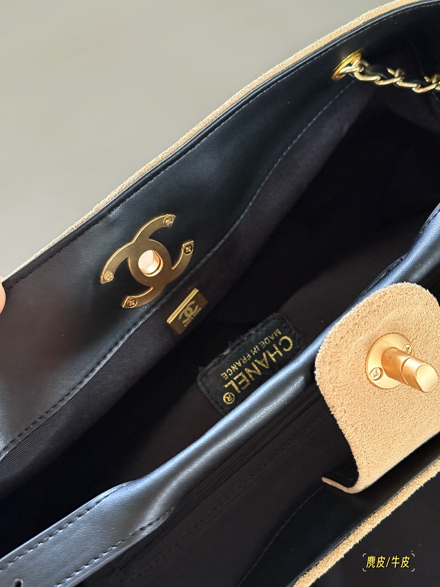 CHANEL 香奈儿25A高级手工坊 皮穿链麂皮购物包 美拉德色系自带复古滤镜 背出街直接封神~慵懒松弛感拉满,随手一挎就很有范儿,出片率 100%