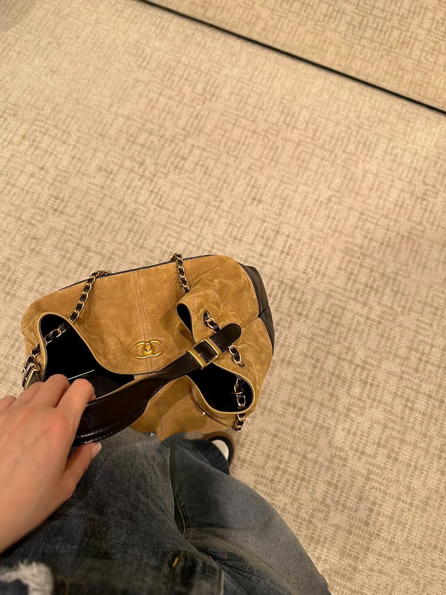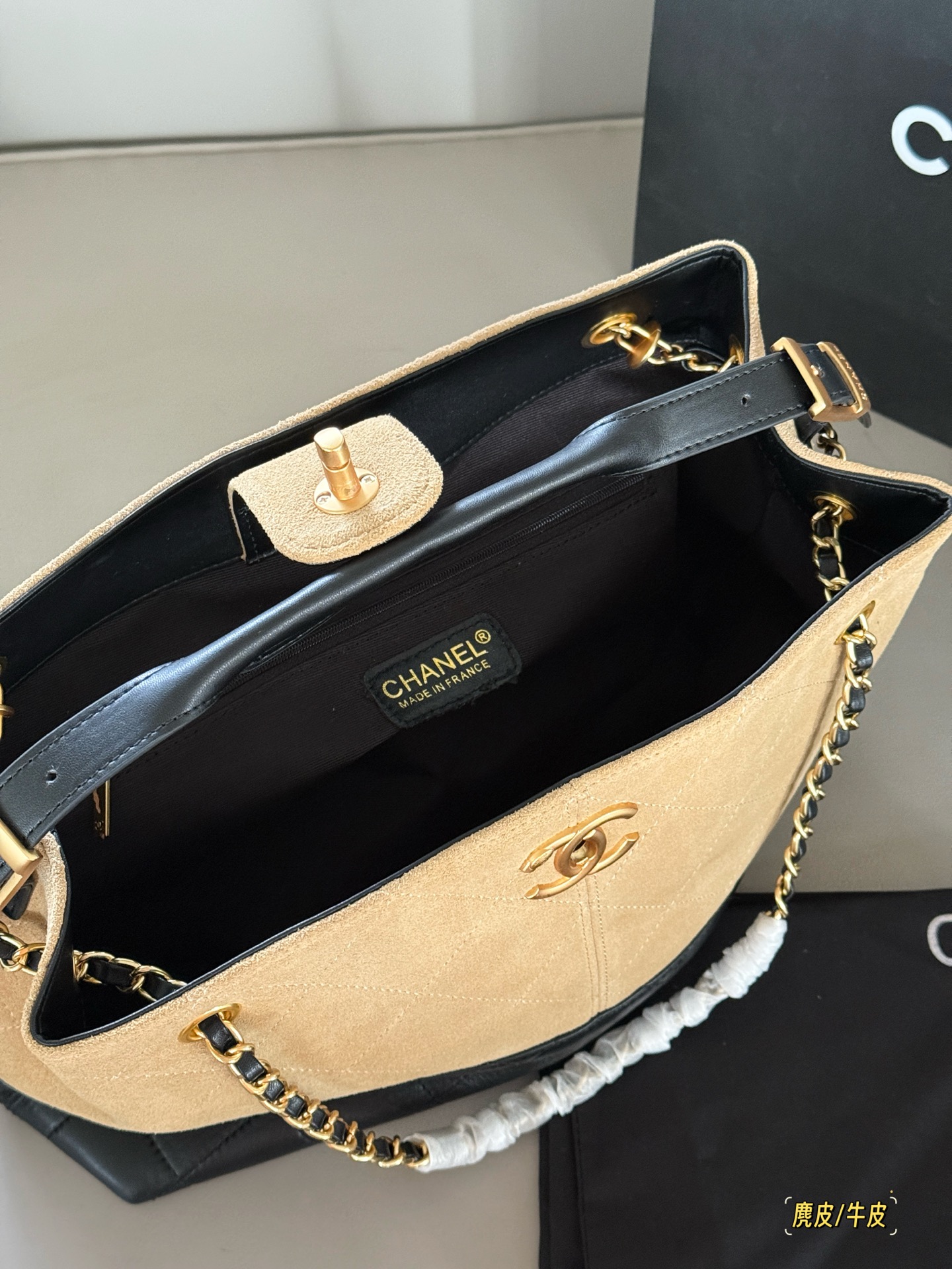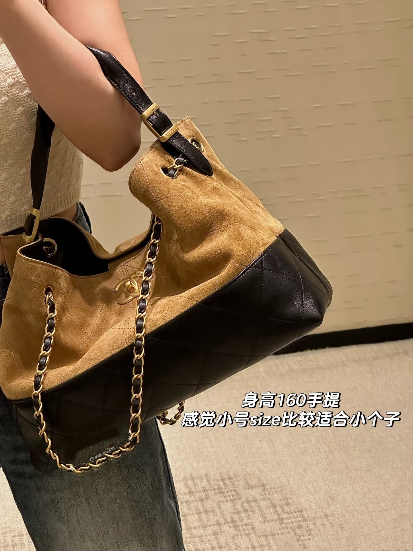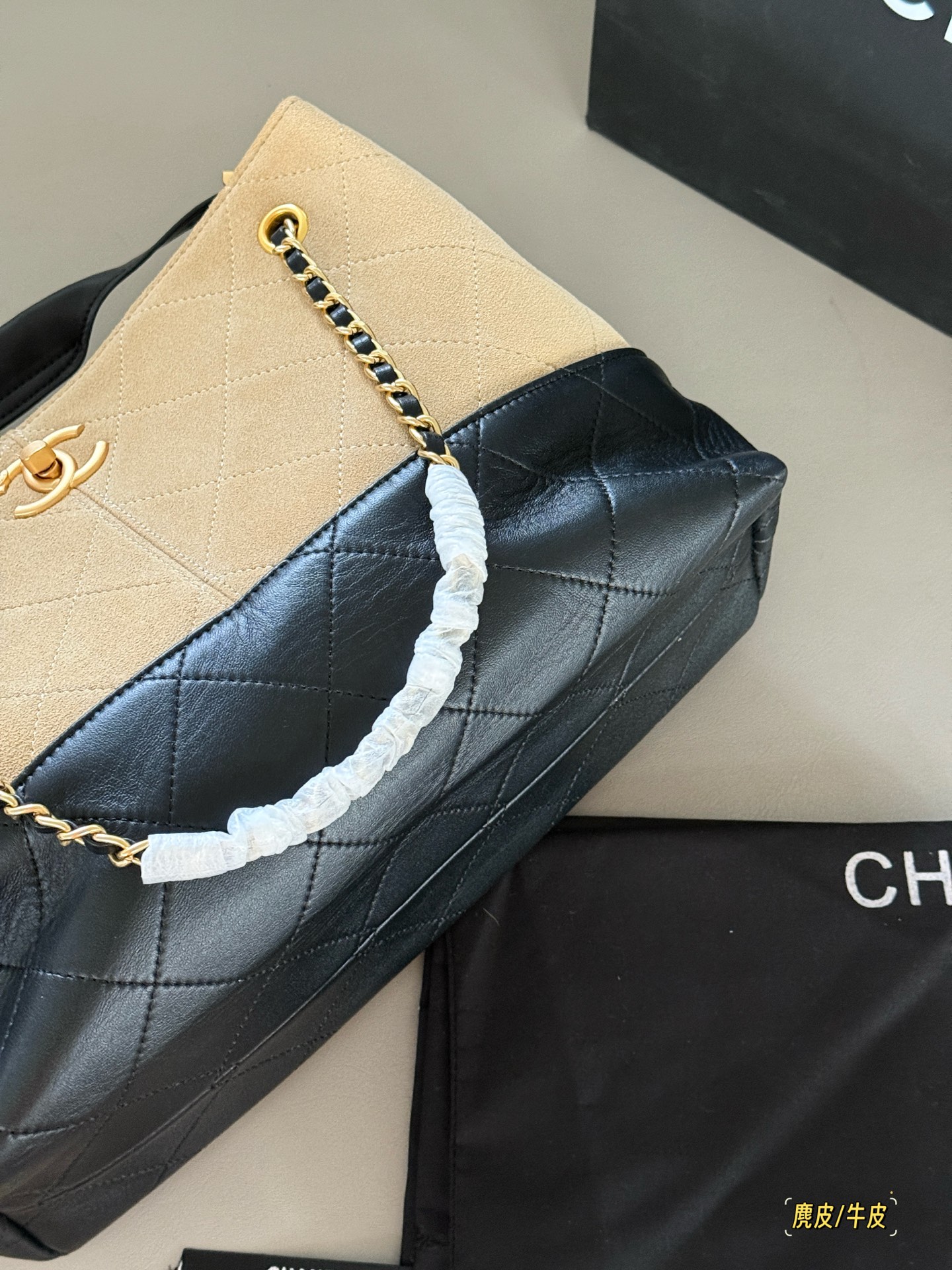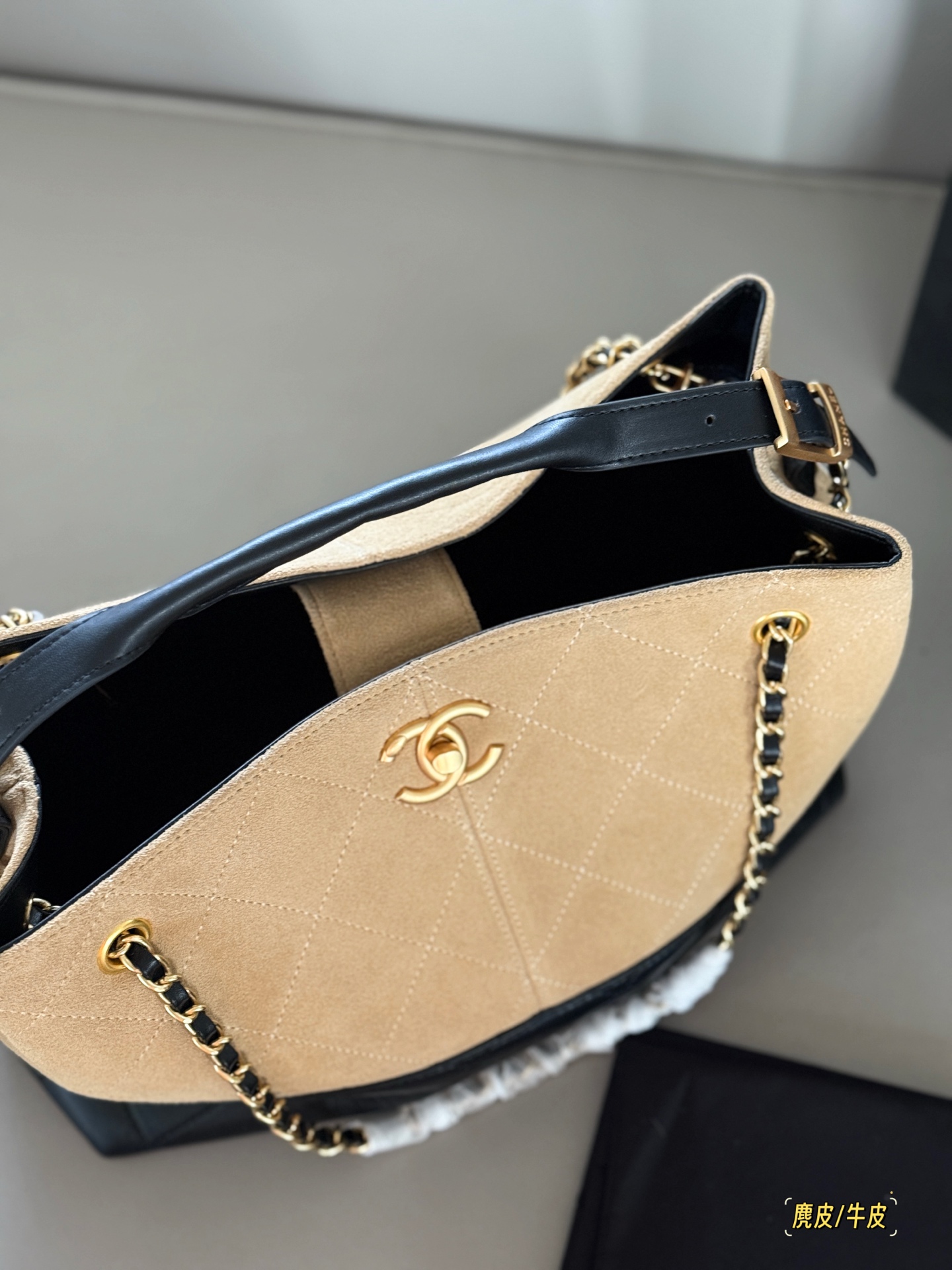 CHANEL 香奈儿25A高级手工坊 皮穿链麂皮购物包 美拉德色系自带复古滤镜 背出街直接封神~慵懒松弛感拉满,随手一挎就很有范儿,出片率 100%