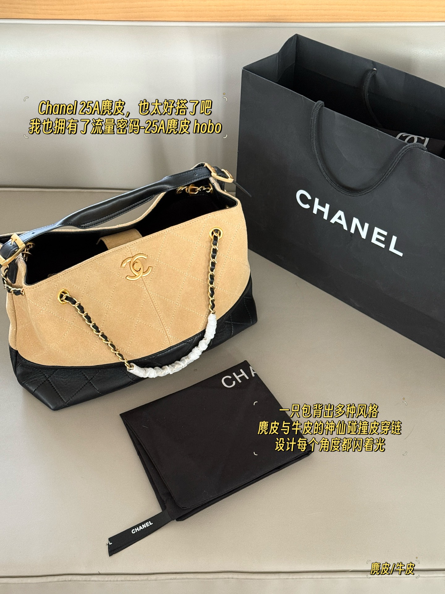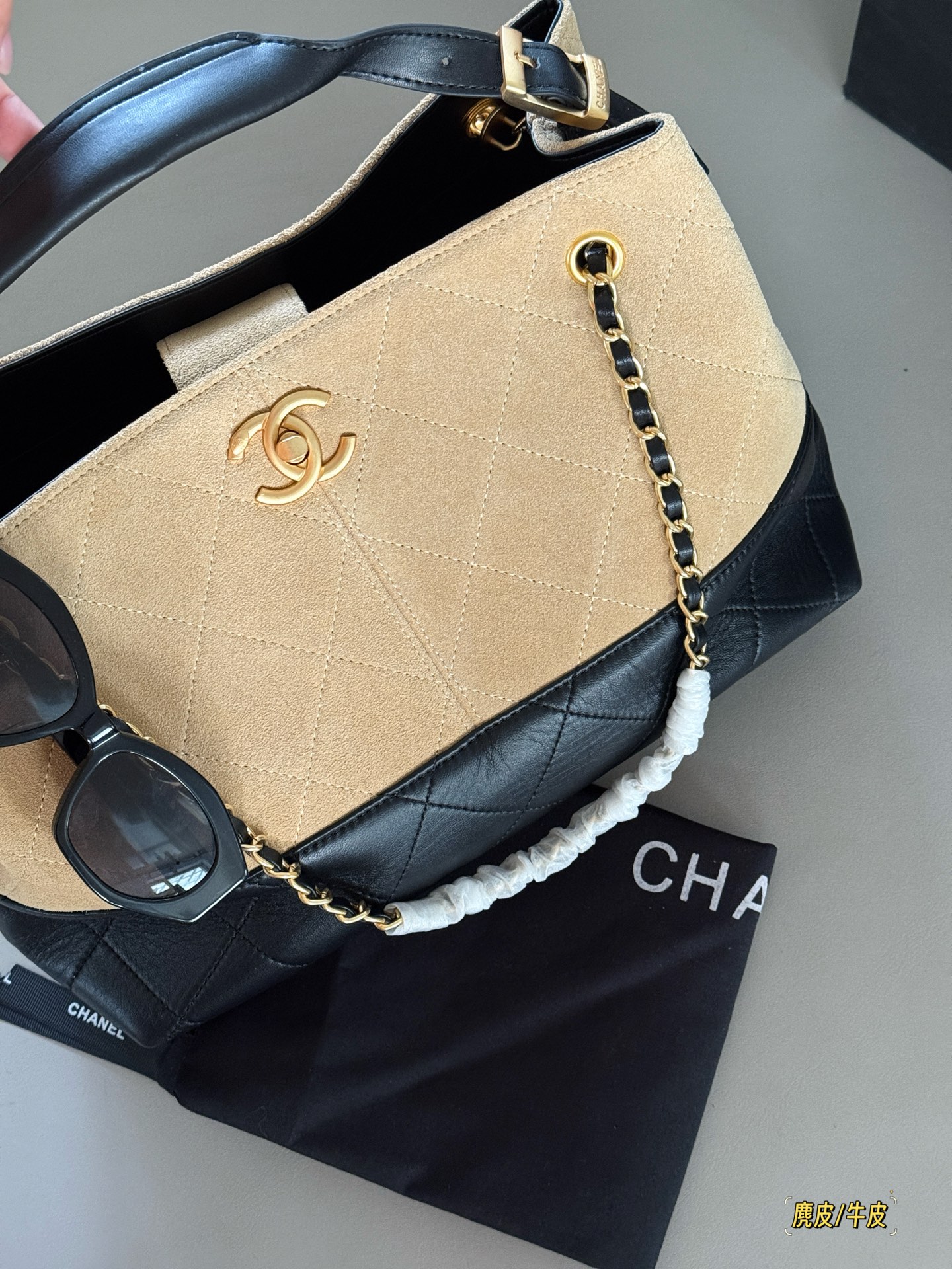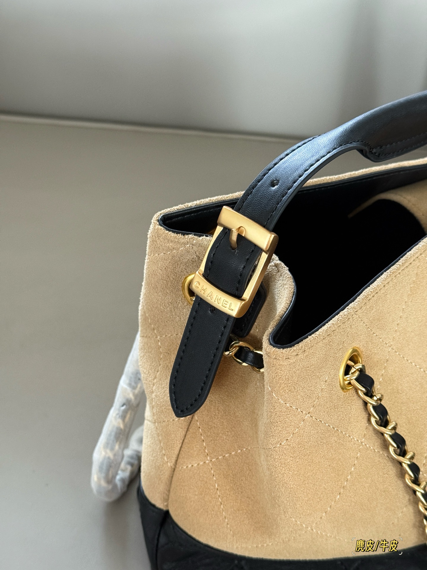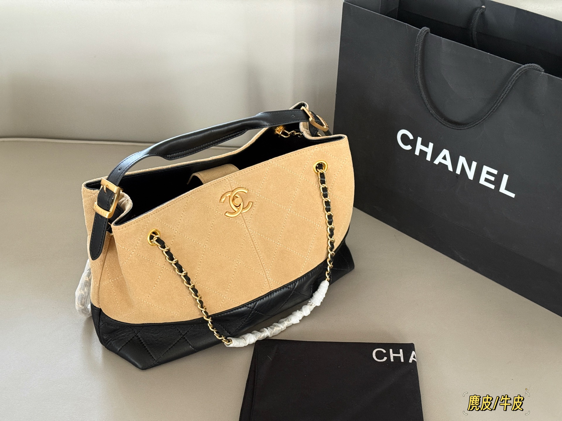 CHANEL 香奈儿25A高级手工坊 皮穿链麂皮购物包 美拉德色系自带复古滤镜 背出街直接封神~慵懒松弛感拉满,随手一挎就很有范儿,出片率 100%