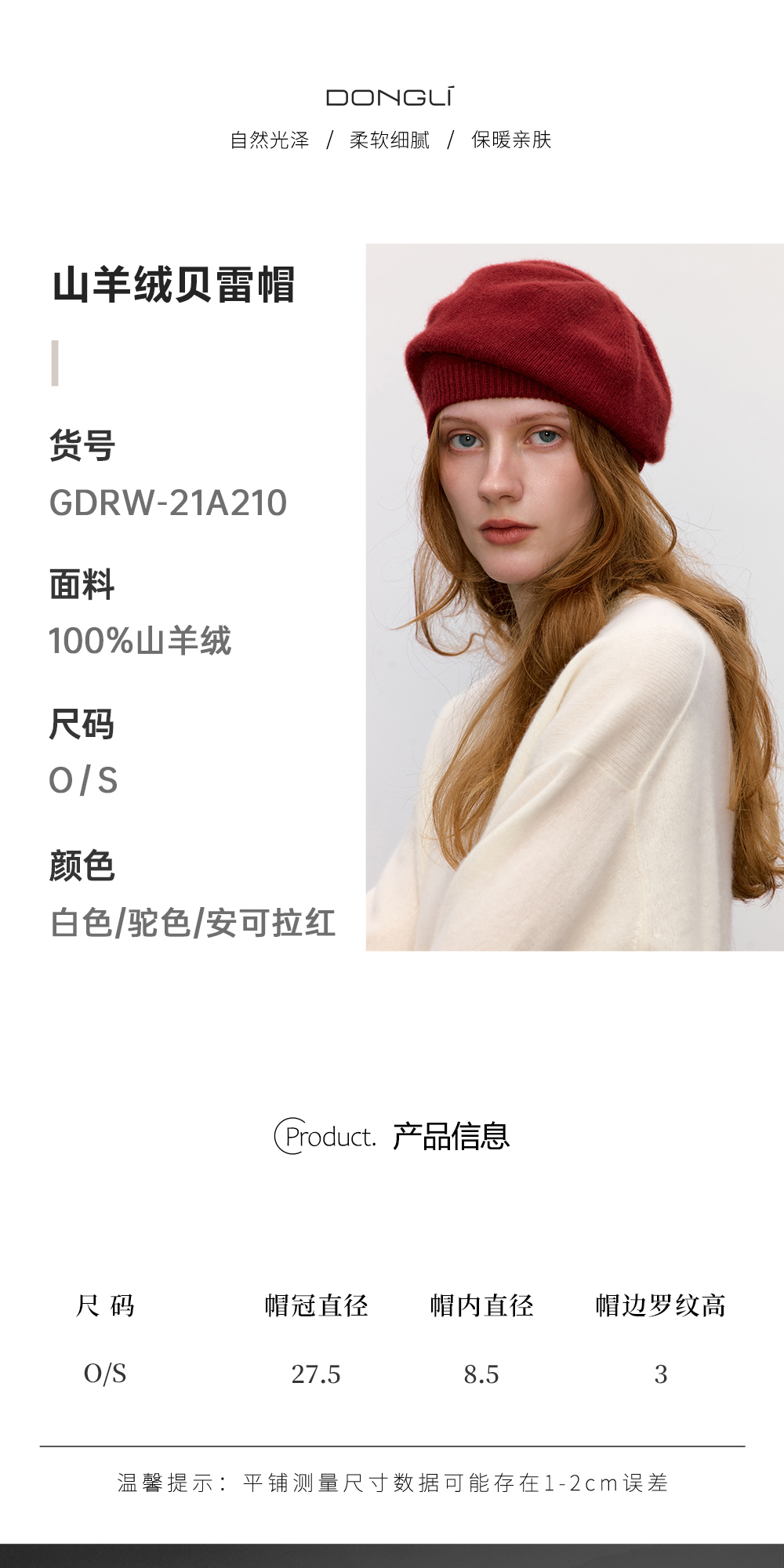 东黎 • 山羊绒女士秋冬保暖时尚贝雷帽 GDRW-21A210