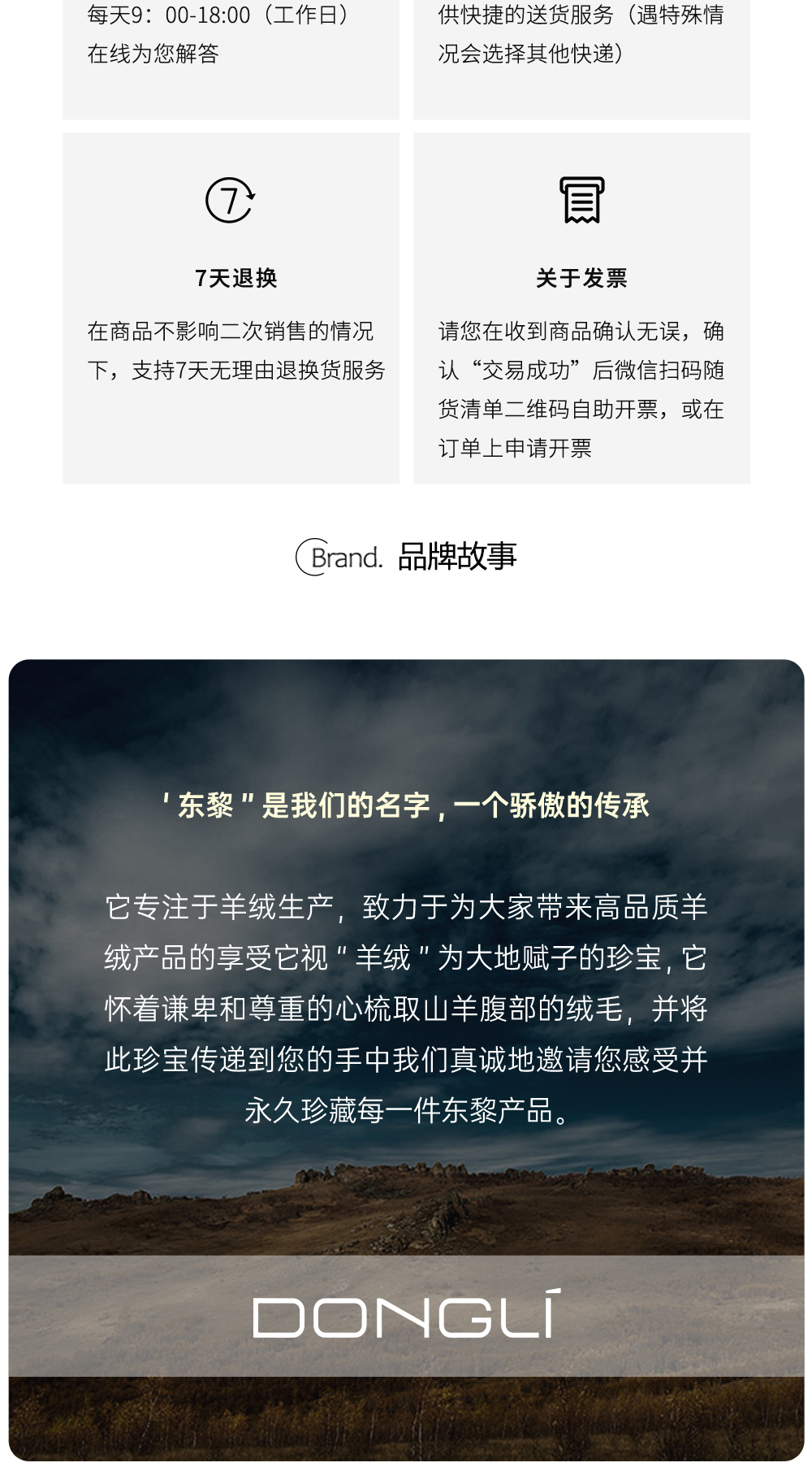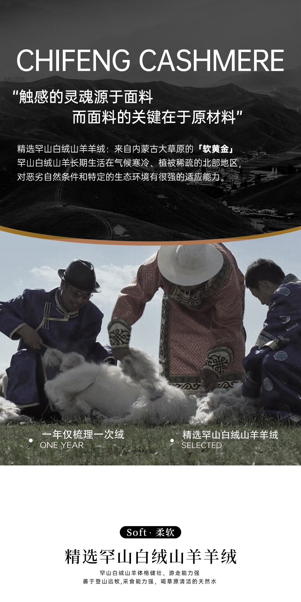 东黎羊绒是赤峰东荣集团自主品牌,自有牧场/羊绒制品全产业链优势,实现了羊绒从“牧场”到“商场”的华丽转变。