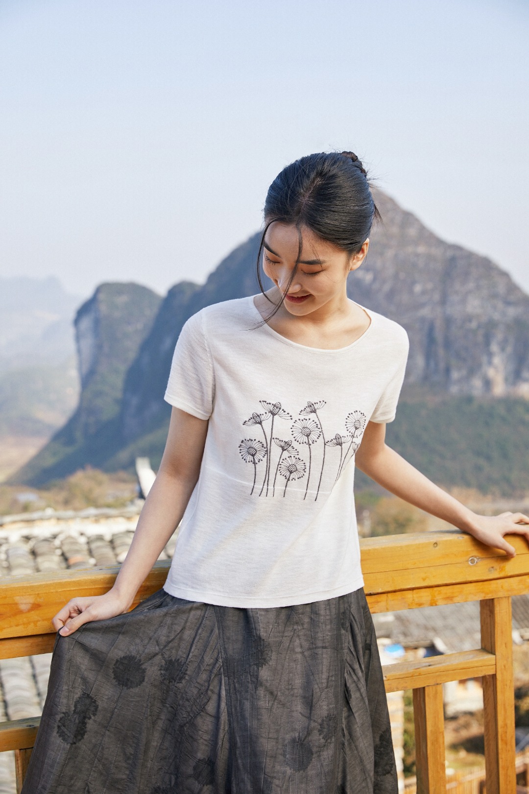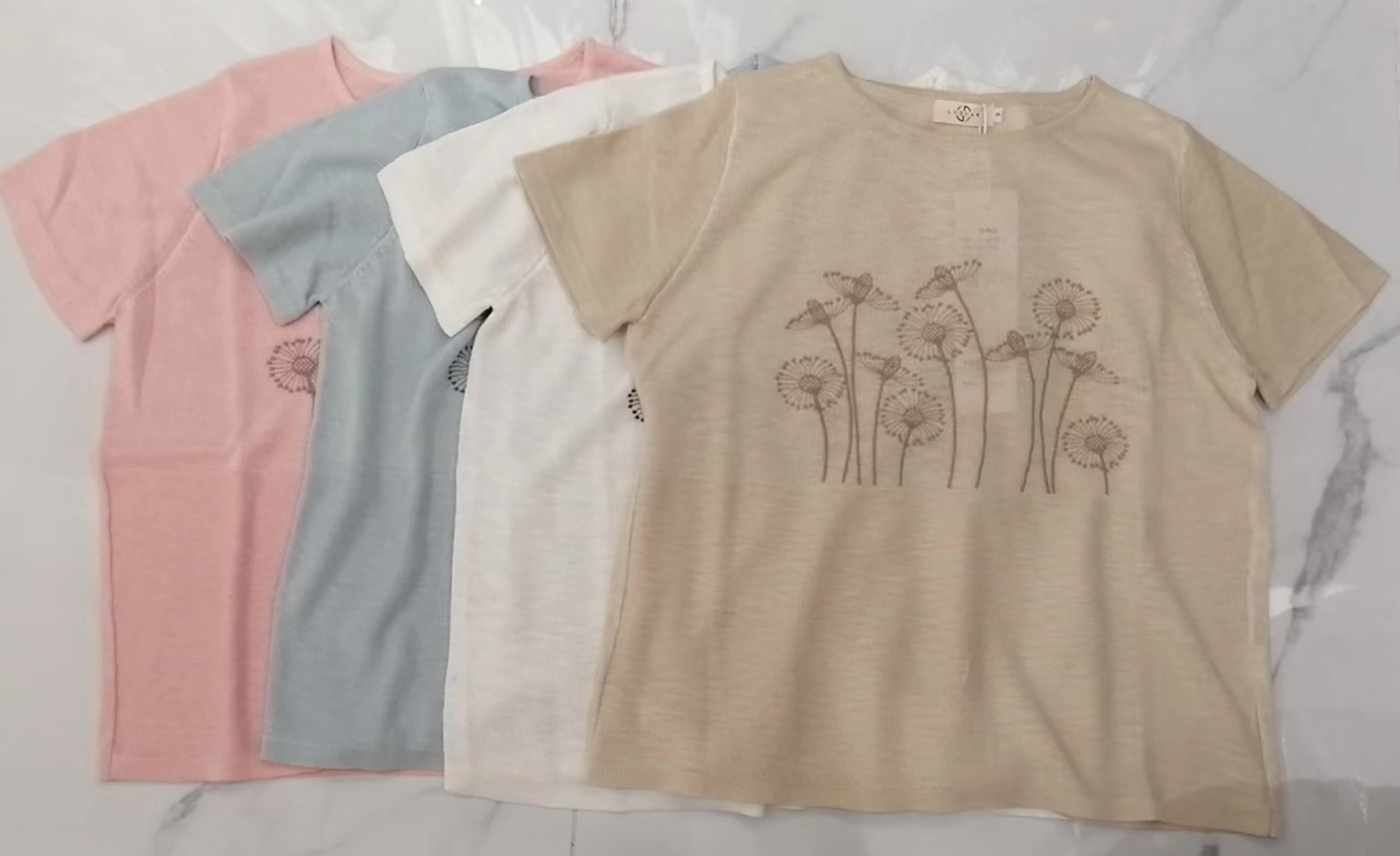 175 白 9 11 码 麻夏季薄款柔软套头女 休闲文艺清凉短袖印花 针织上衣短袖T恤
