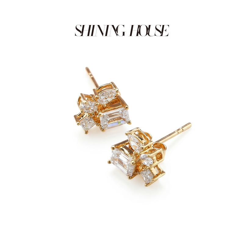 ShiningHouse[培育] 18k金钻石耳饰 刻面形人工真钻人造钻石K金耳钉时尚钻石耳饰耳环悦己送礼臻选【此商品不支持7天无理由退货退款】预计3日发货