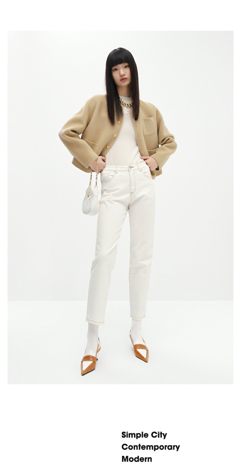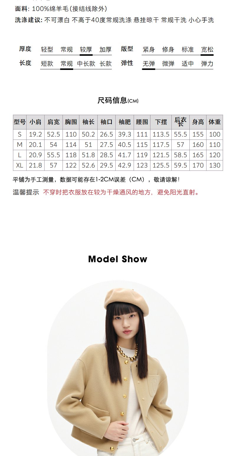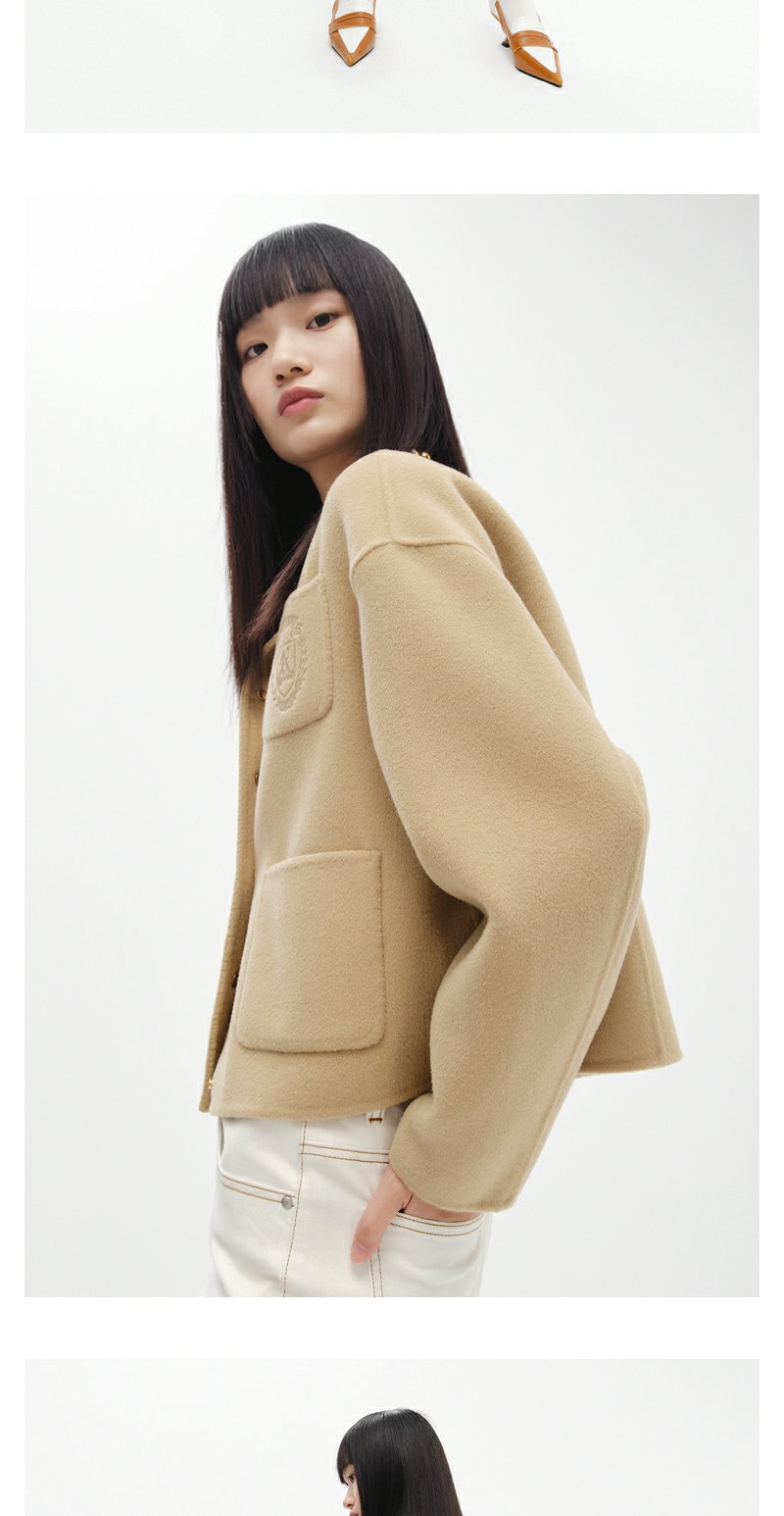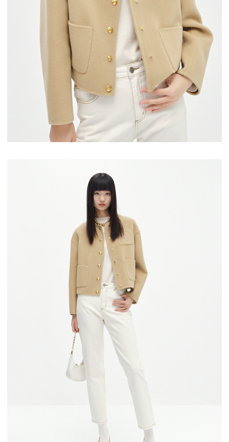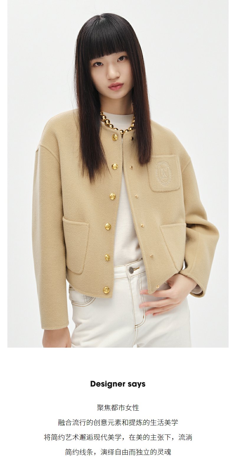 NEELLY纳俪商场同款小个子双面呢短外套女圆领小香风气质通勤上衣N23104N04401