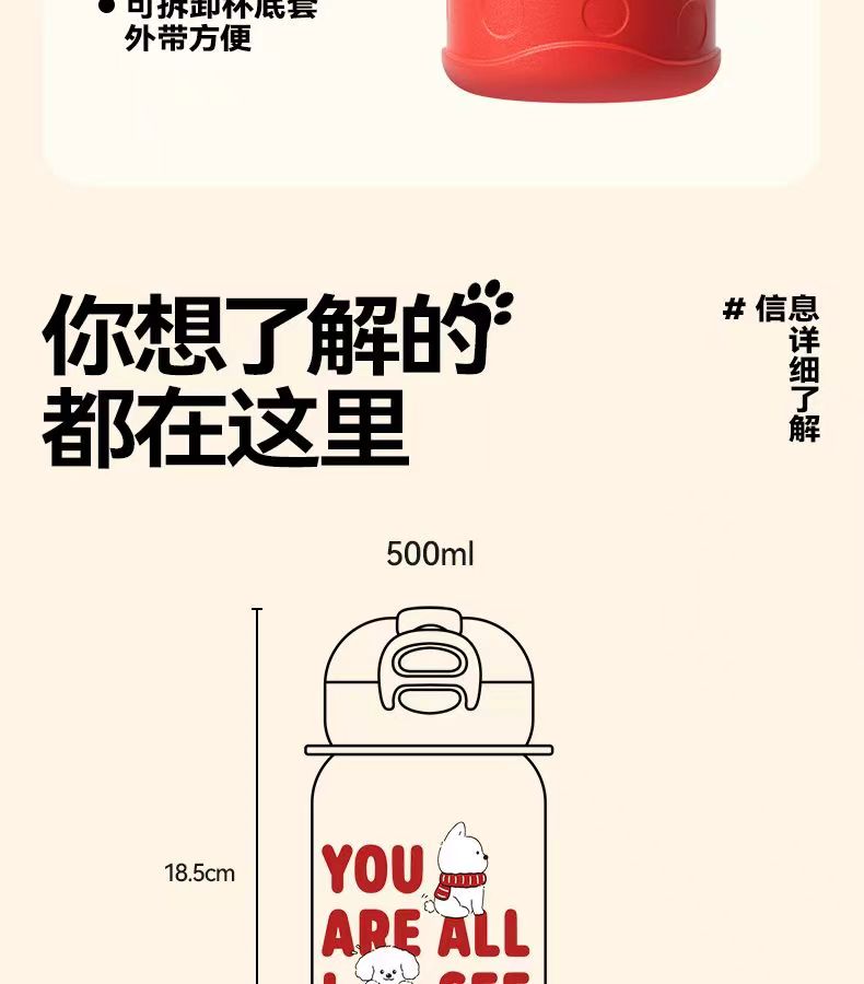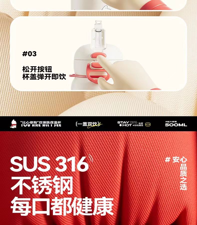 希乐扣保温杯儿童316不锈钢学生吸管保温杯500ml