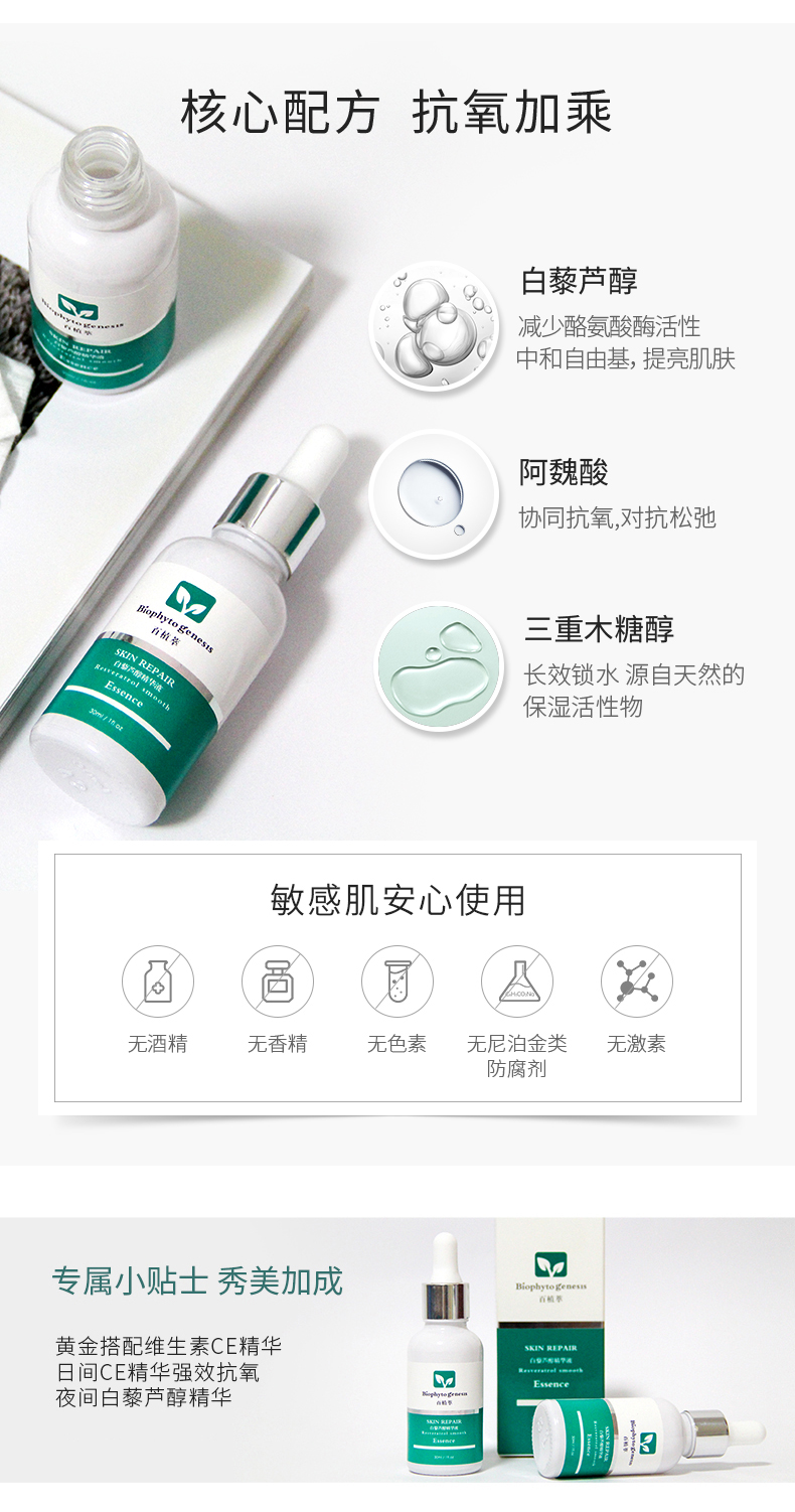 【百植萃】百植萃抗氧提亮补水保湿白藜芦醇精华液肌肤干燥修护液 白藜芦醇精华30ml