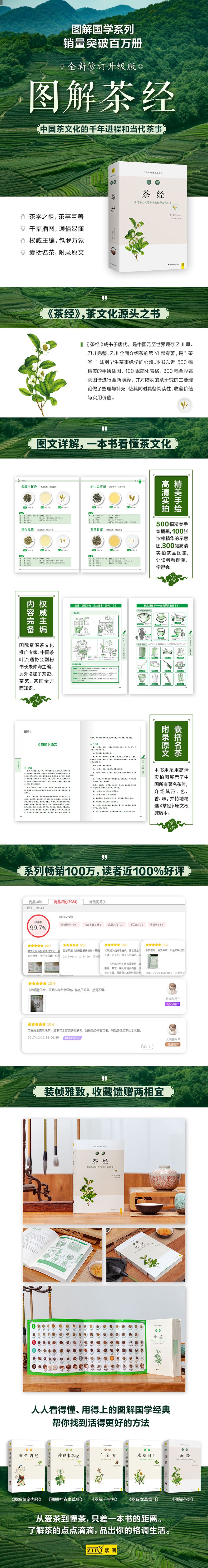 《图解茶经》是一本言简意赅、通俗易懂、配以500幅精美手绘插画、100张简化图表的当代版《茶经》,以求让读者了解《茶经》的全貌以及正确涵义。此外,融入了大量现代茶事经典,例如茶道、茶艺、茶俗、茶类、十大名茶等,并附录106种中国茶全品图鉴,使您不仅能全面品味《茶经》,更能全方位了解中国茶文化的千年进程和当代茶事。