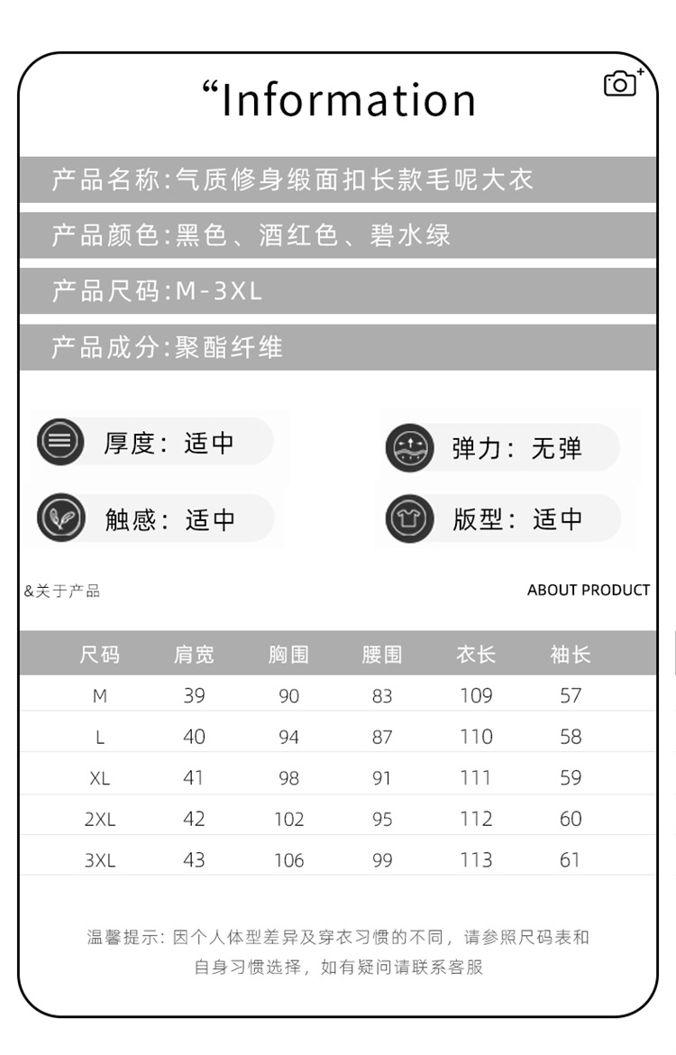韩系感呢子大衣,中长款毛呢外套HR-WAY6601A