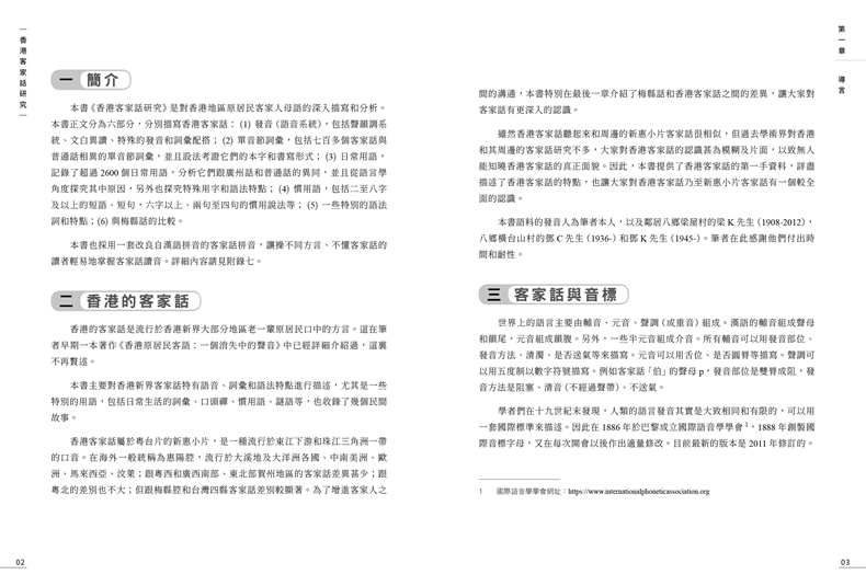 本書從語音、詞彙、日常用語等方面對香港客家話進行了深入全面的描寫和分析。並將香港客家話與廣州話、梅縣話等進行比較和歸納,是一部了解和研究香港客家話的學術力作,對保育香港地方方言和傳統特色文化有重要意義。