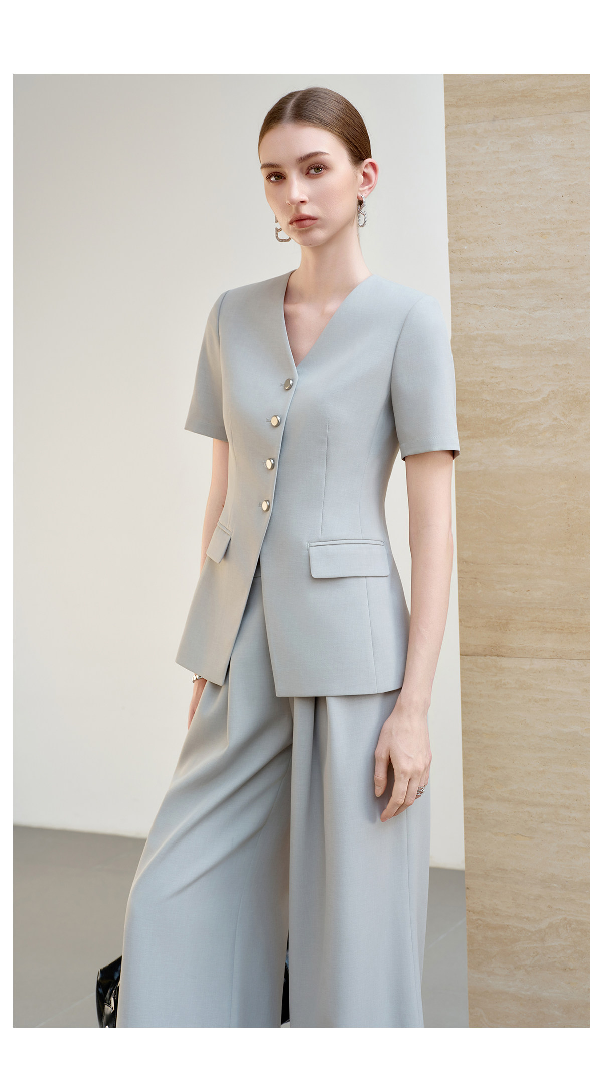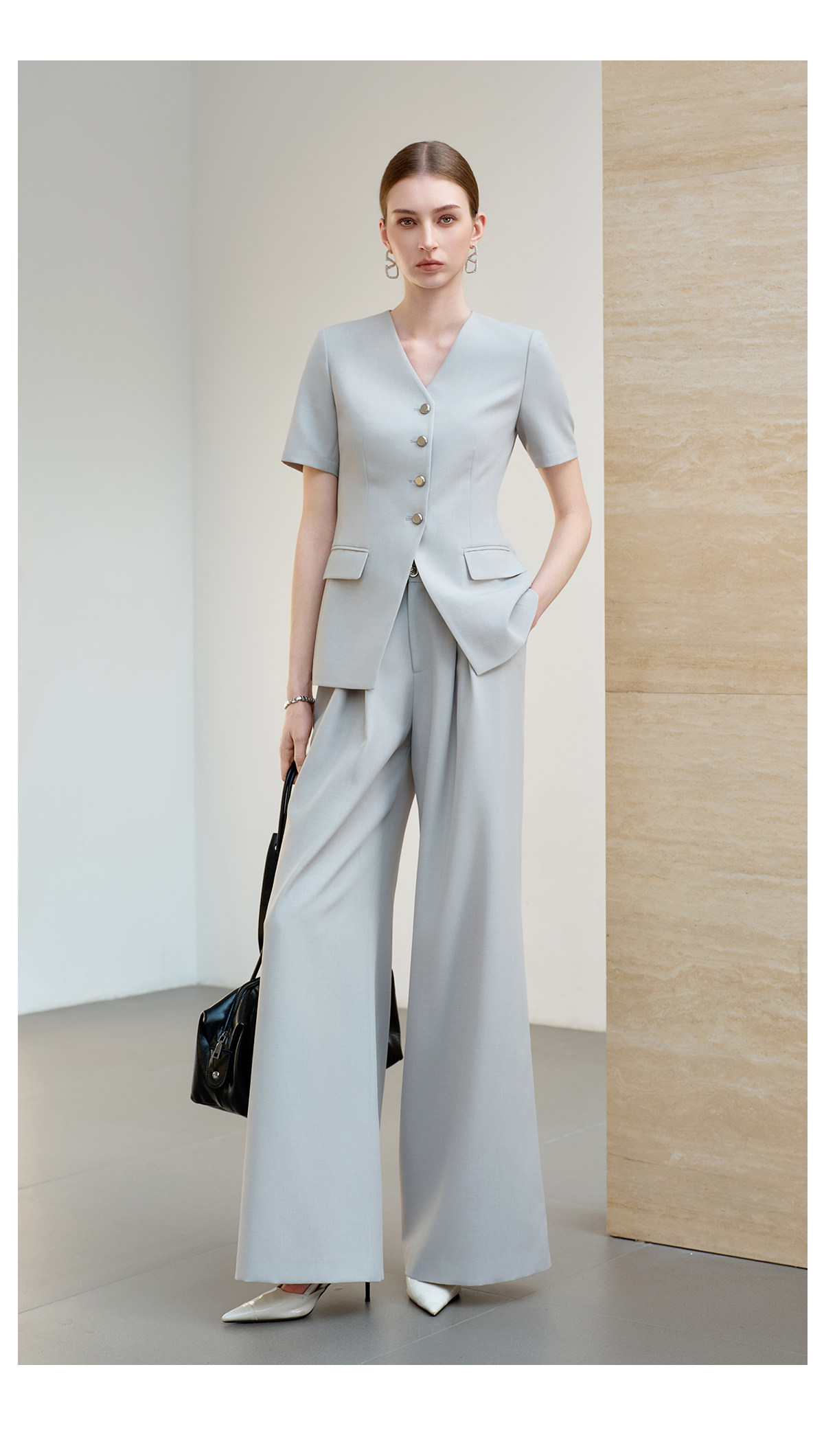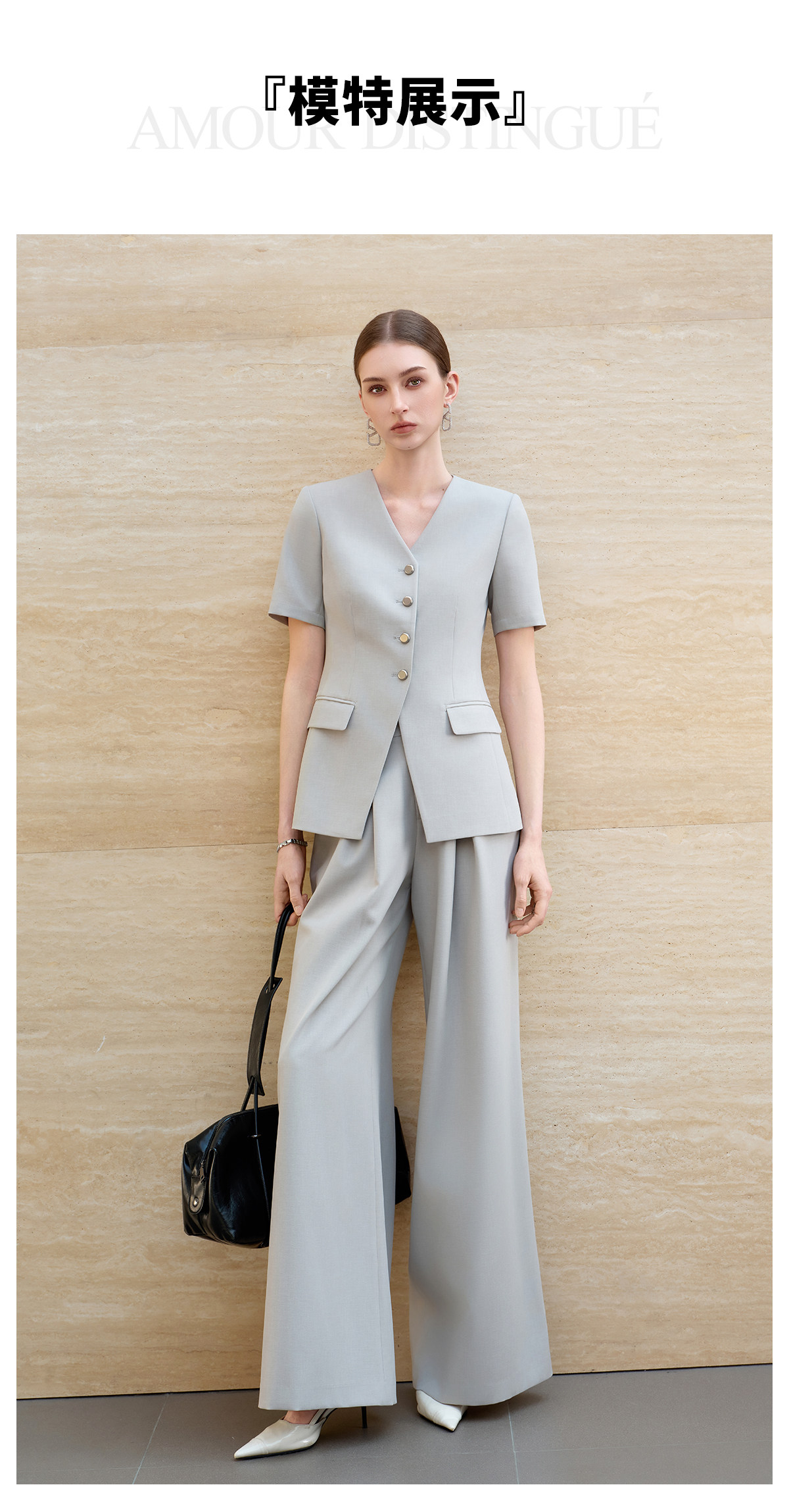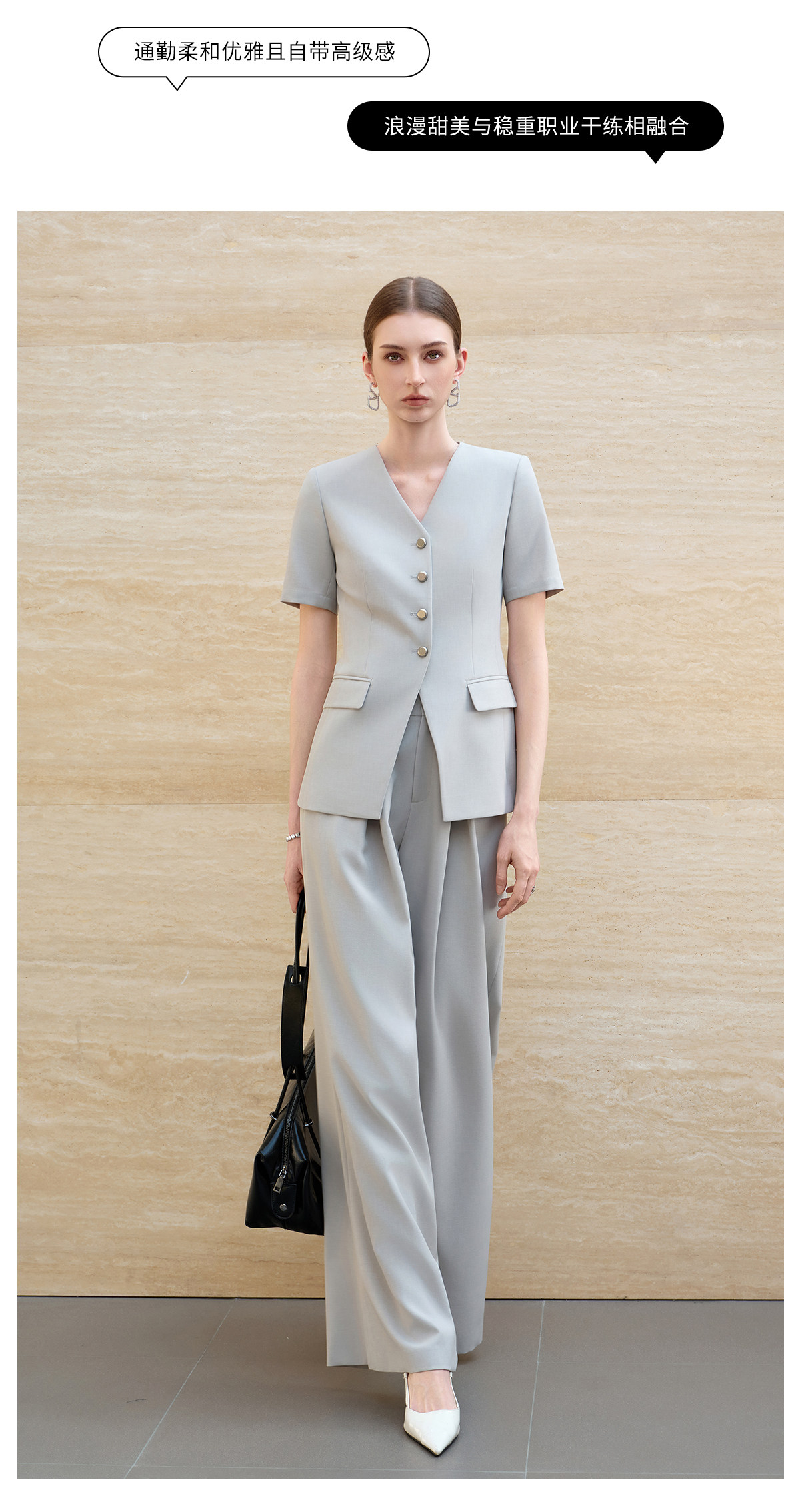 IWY/羽灰色夏季短袖西装套装女高级感职业装通勤阔腿裤正式场合工作服6CP07