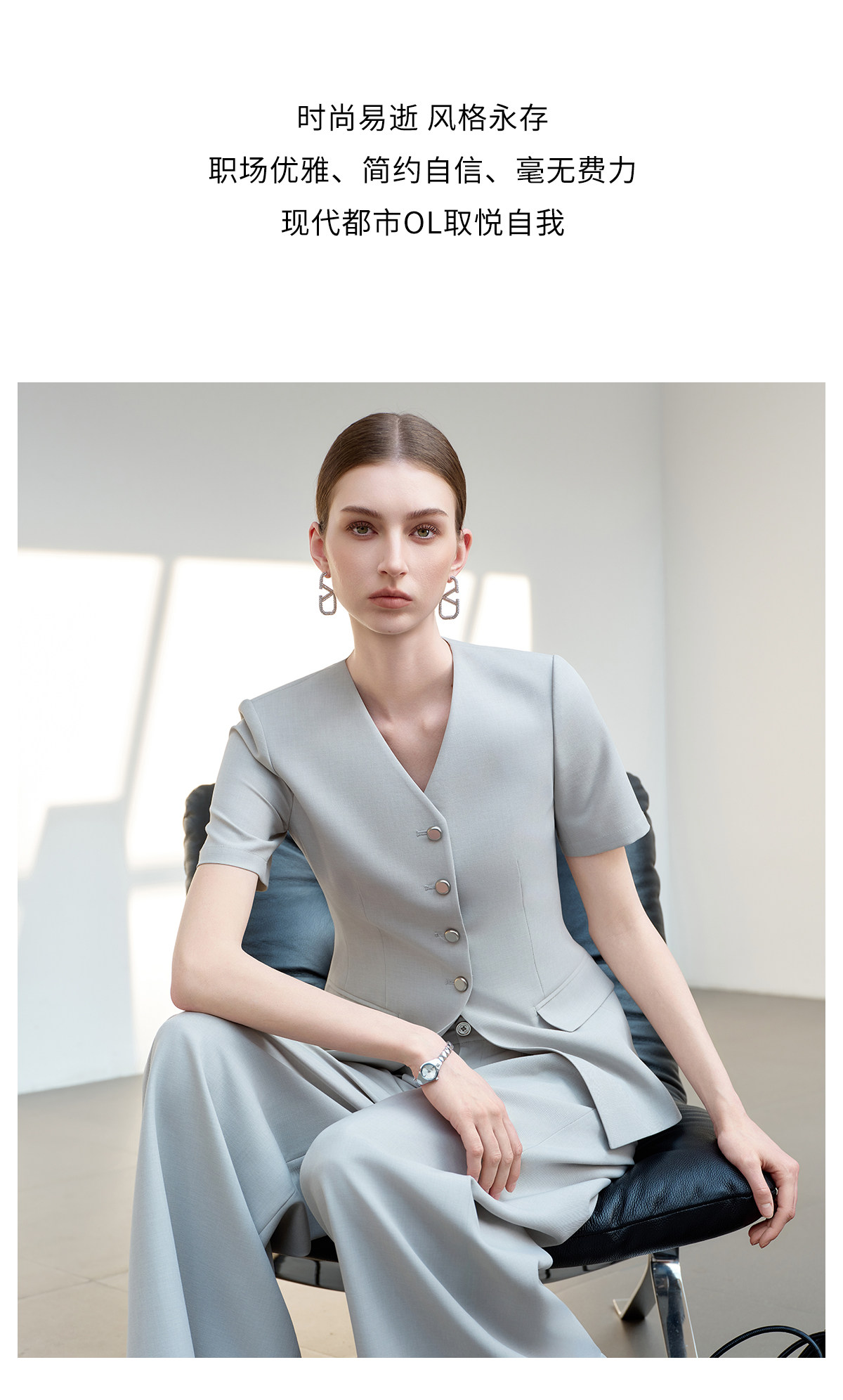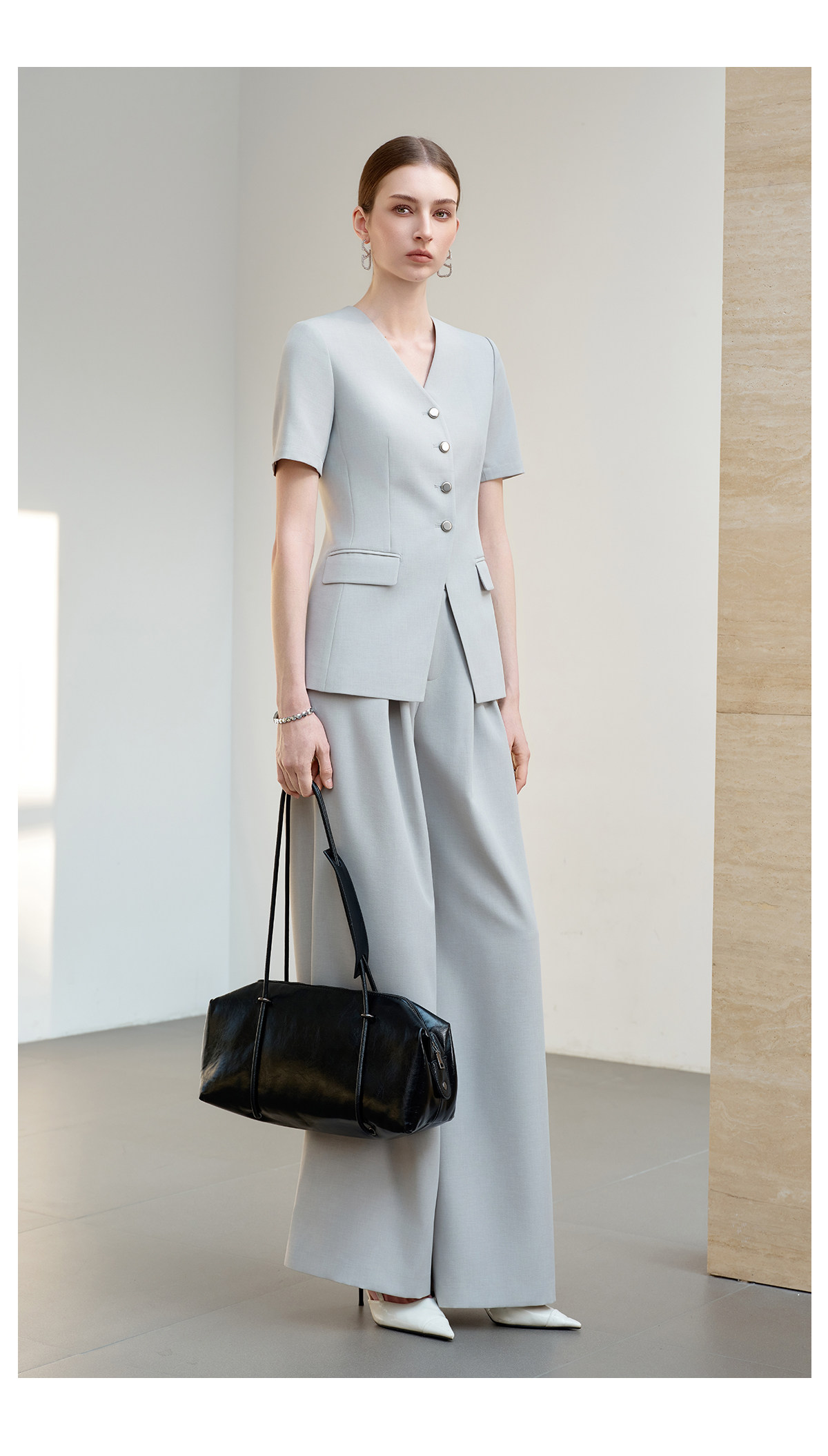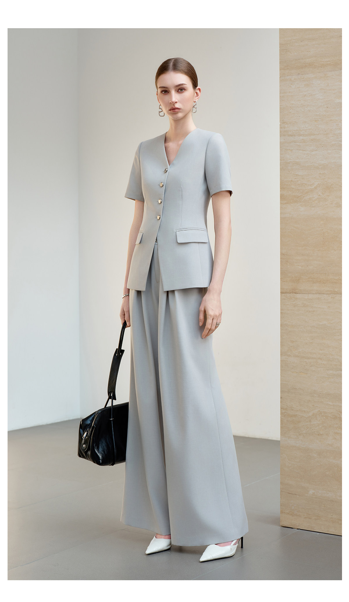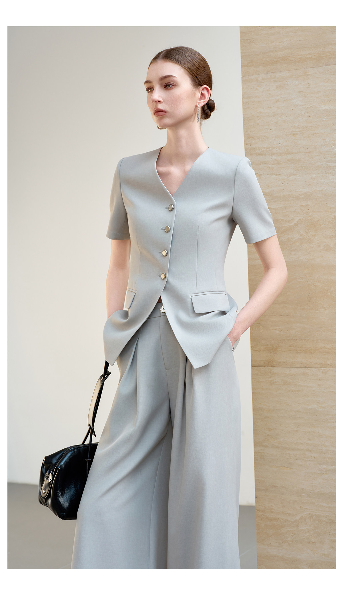 IWY/羽灰色夏季短袖西装套装女高级感职业装通勤阔腿裤正式场合工作服6CP07