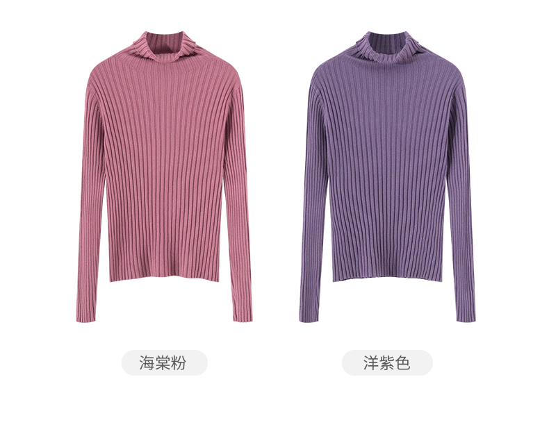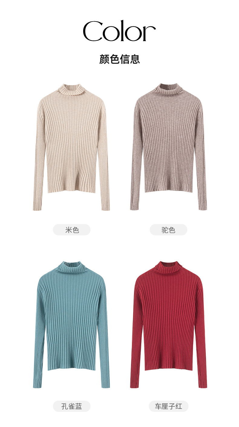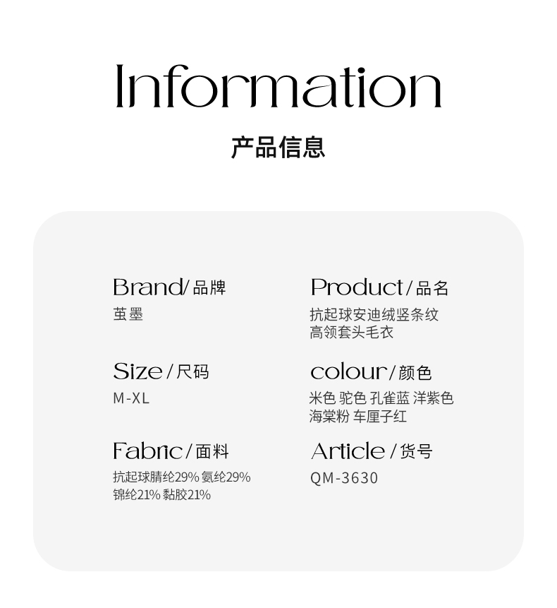 茧墨 抗起球安迪绒竖条纹高领套头毛衣