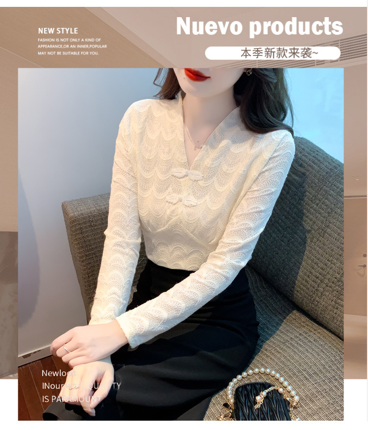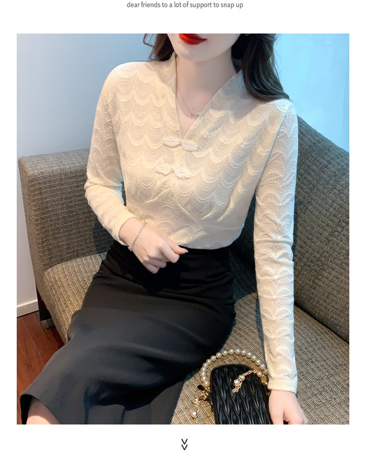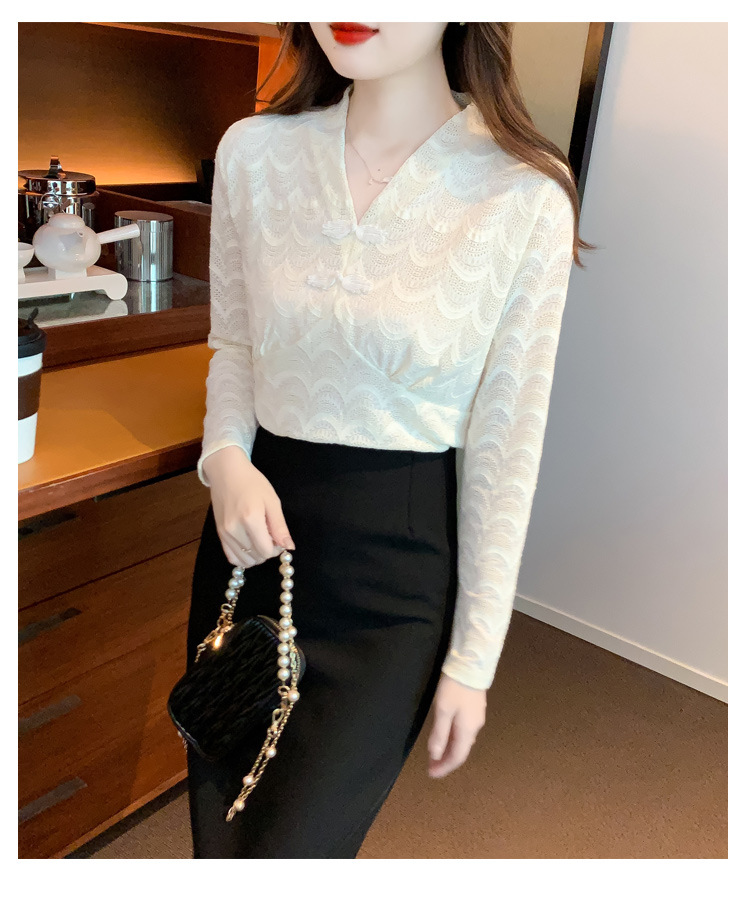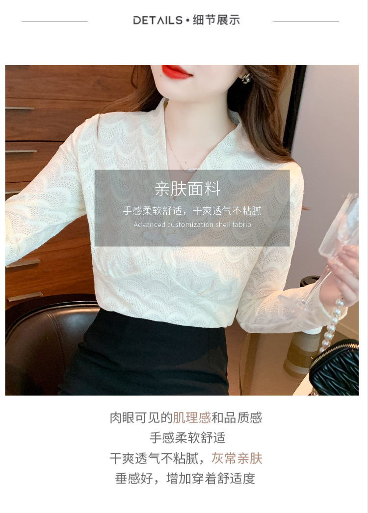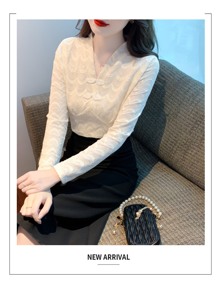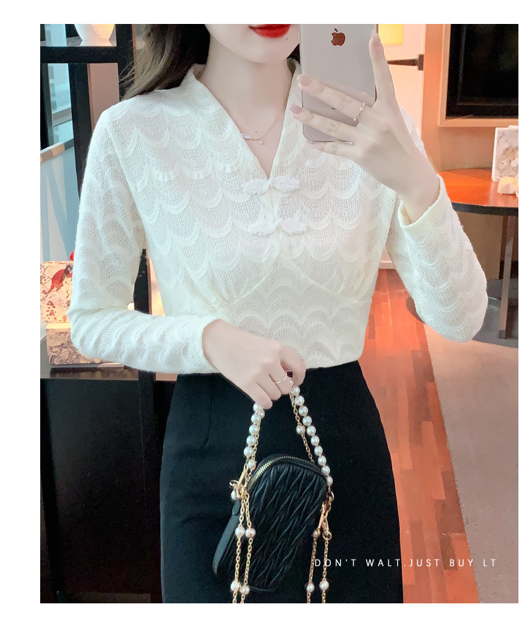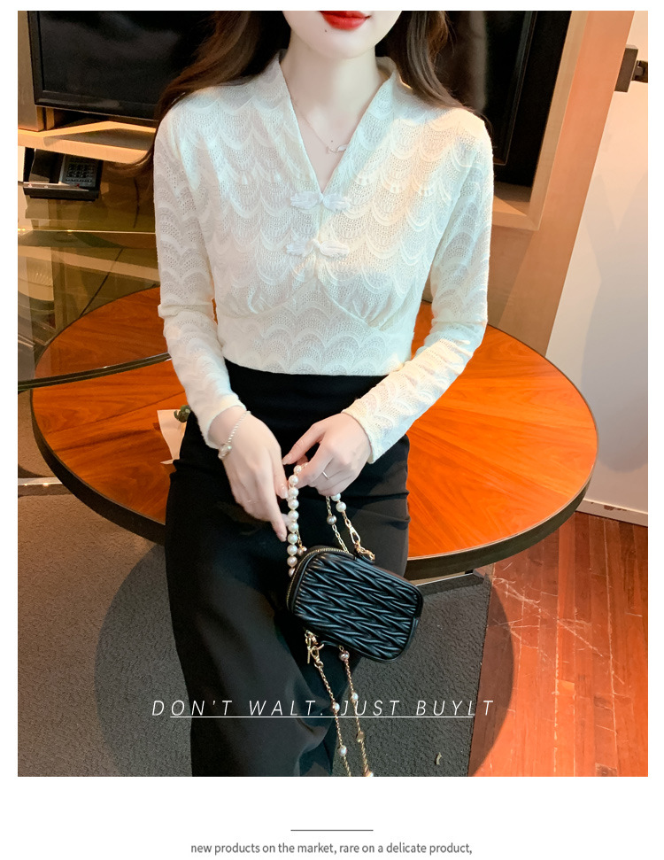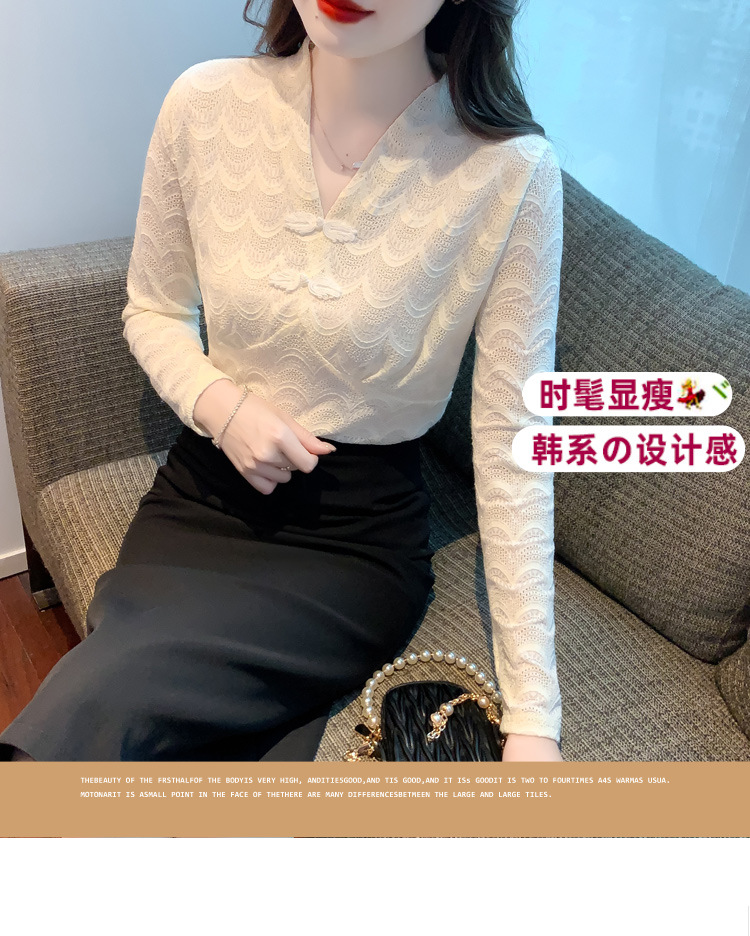 v领蕾丝打底衫女2022秋季新款时尚气质内搭长袖洋气漂亮小衫上衣 KQL-323H2976