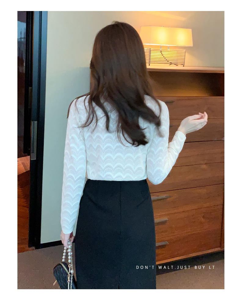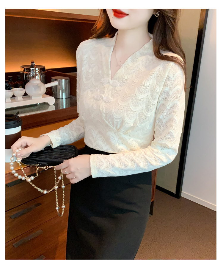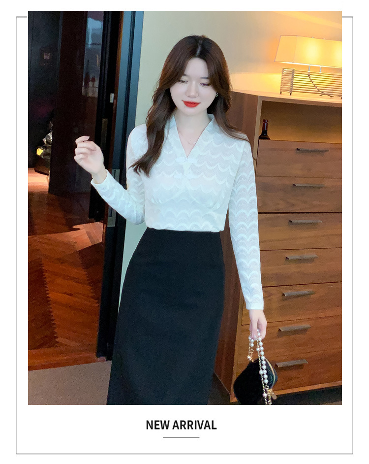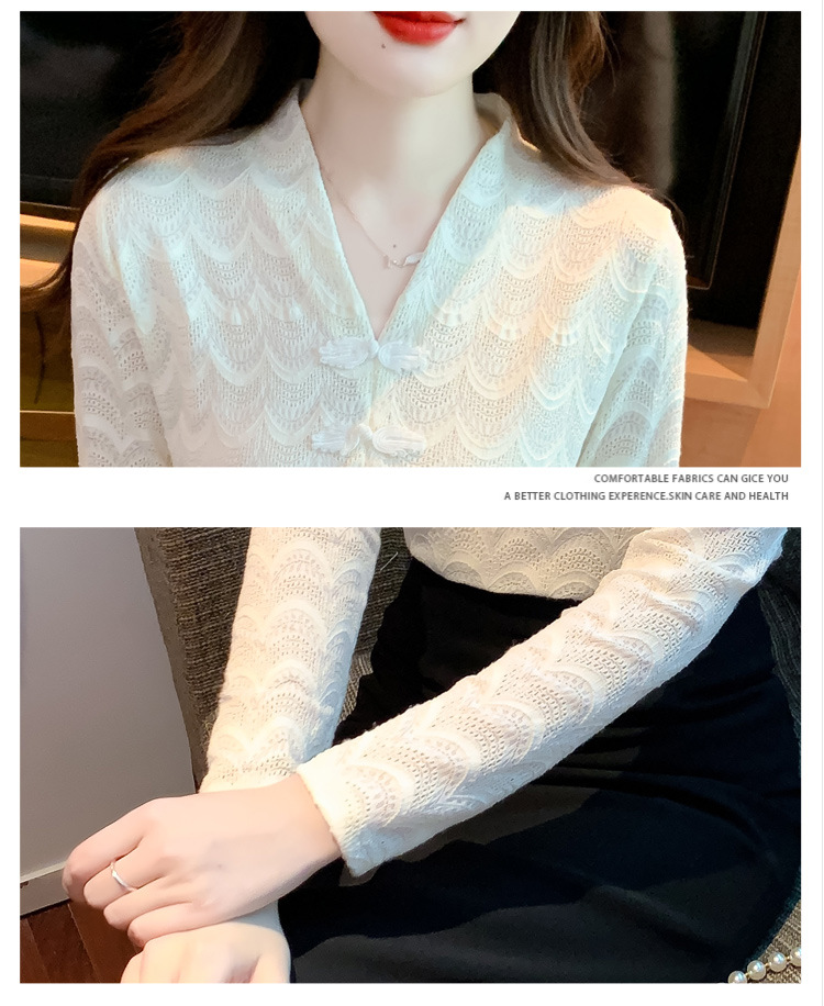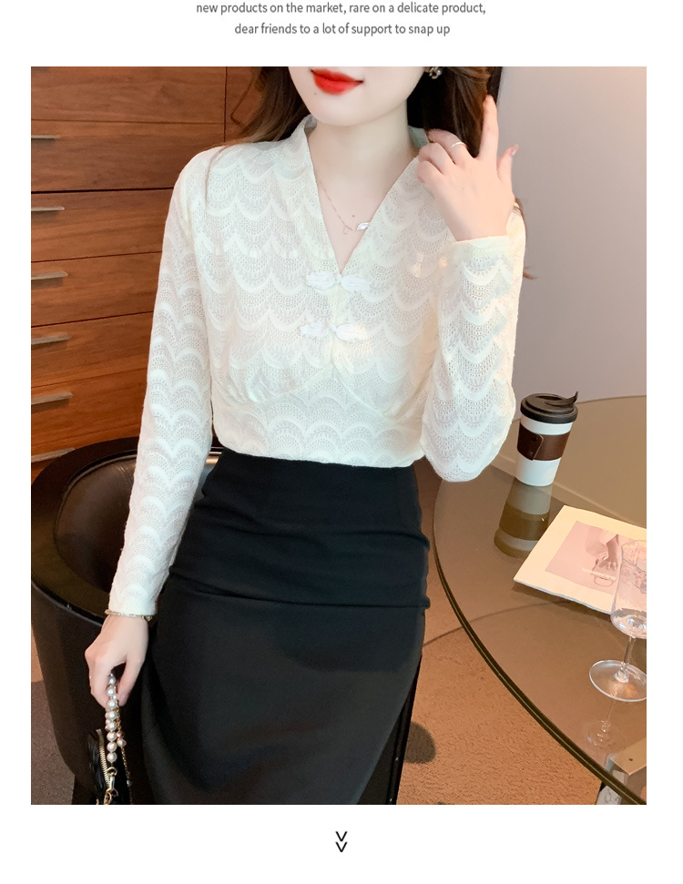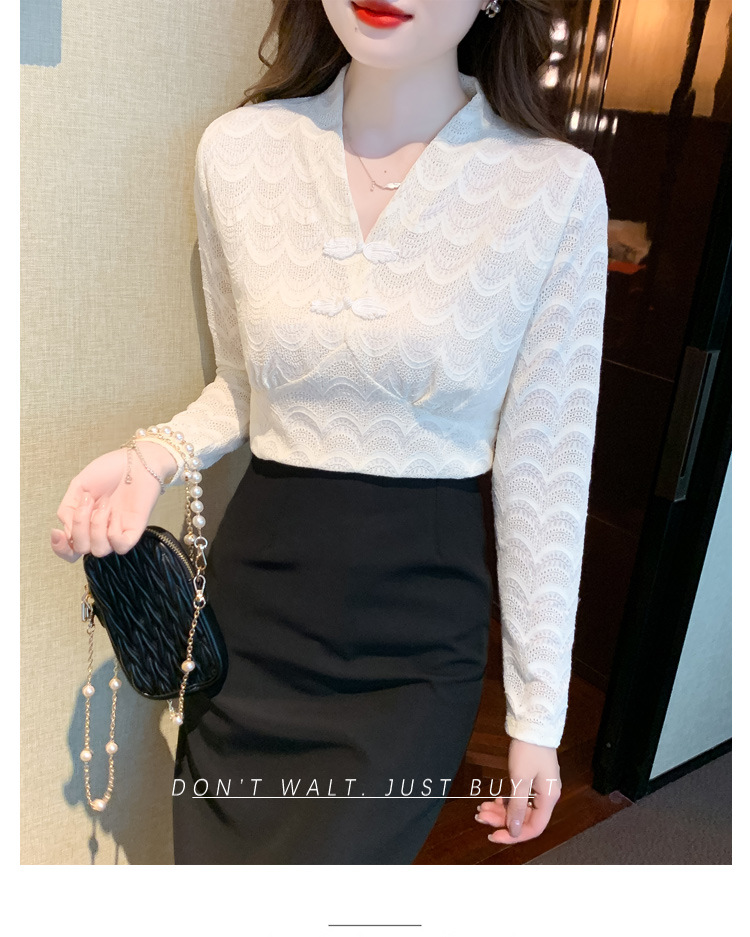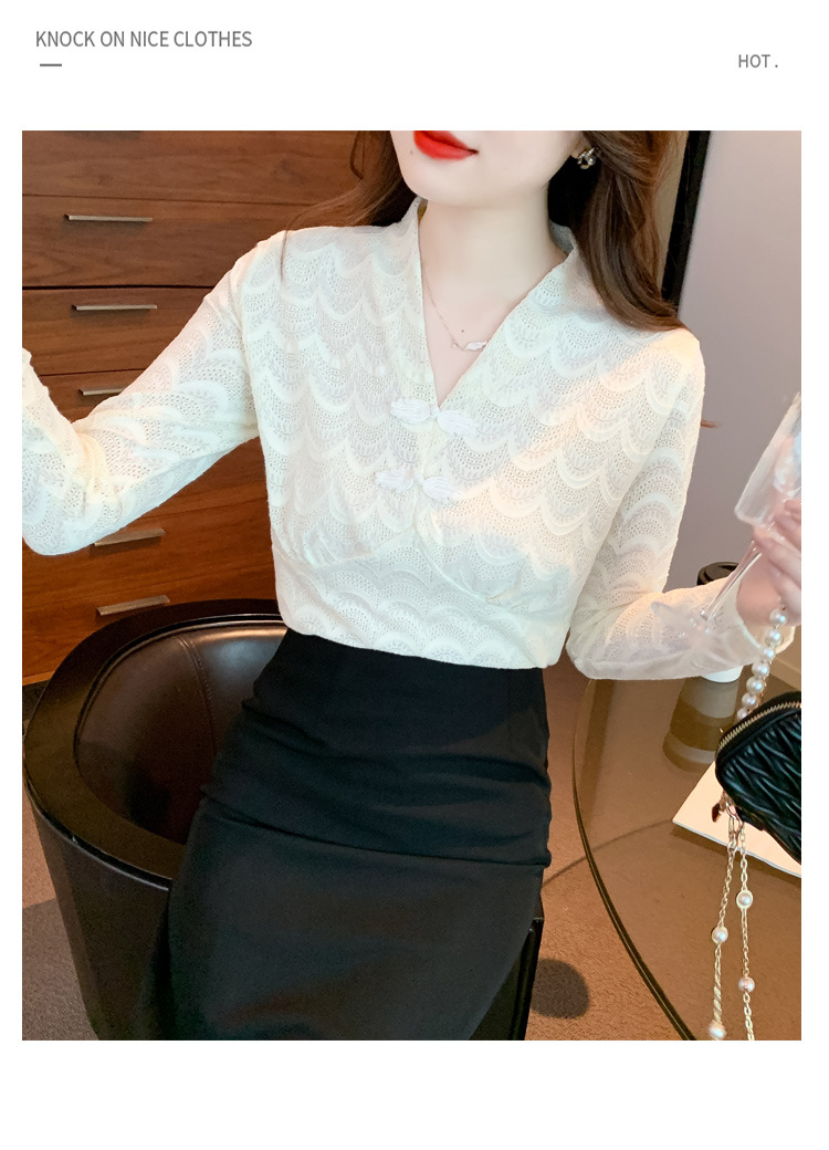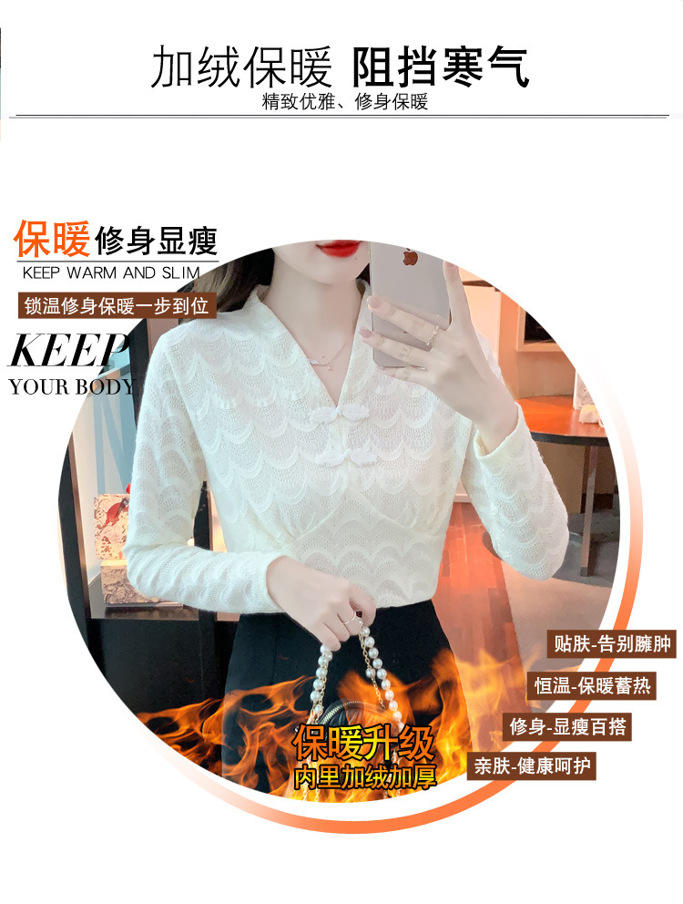 v领蕾丝打底衫女2022秋季新款时尚气质内搭长袖洋气漂亮小衫上衣 KQL-323H2976