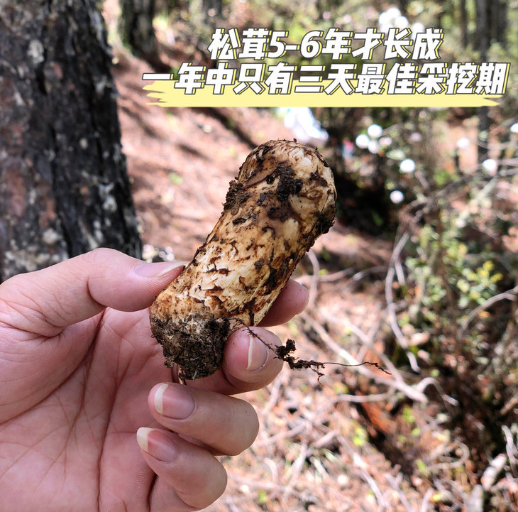 松茸需5-6年才长出子实体,就算是有经验的藏民,一天下来可能也挖不到好松茸。