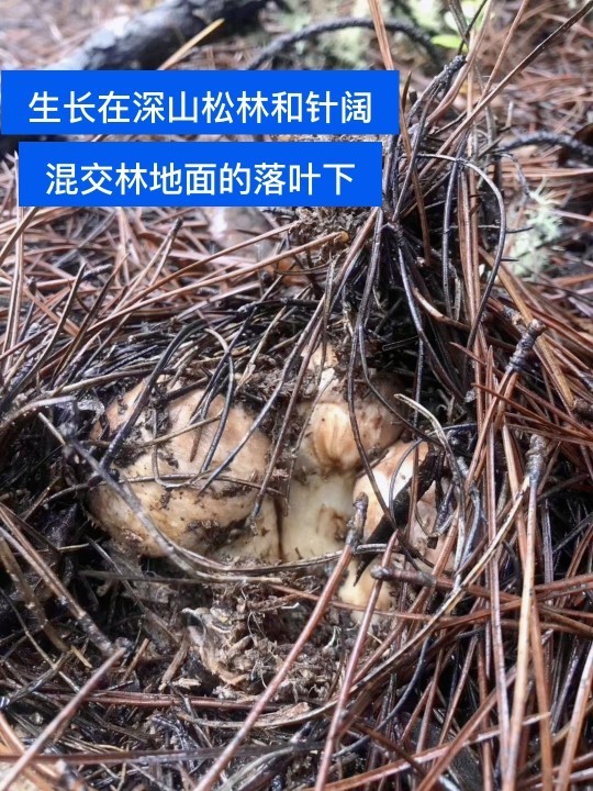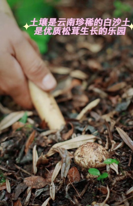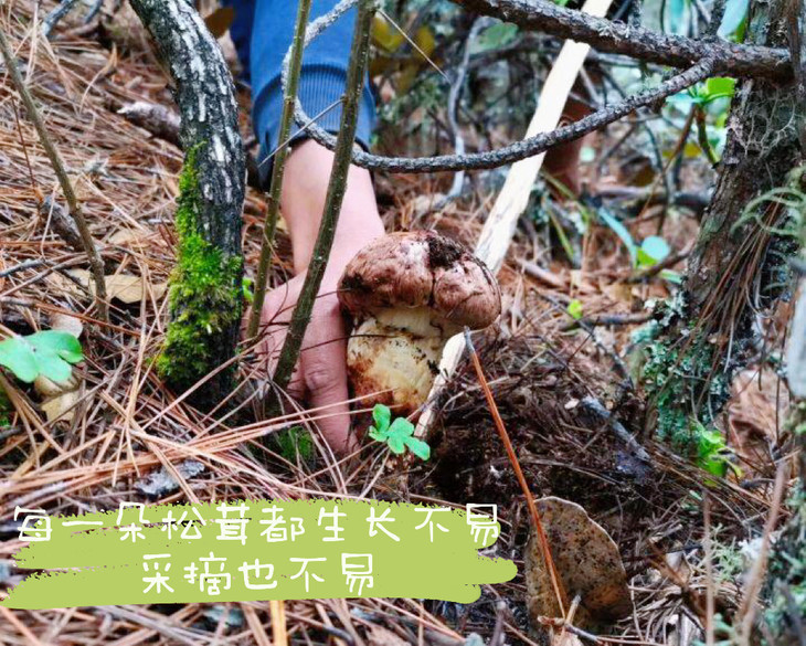 松茸生长于松枝下面,菌丝发育一般是一窝一窝的,比如说今年采了,明年同样的地方还会有,没有的地方基本来年也没有,所以每年踩点很重要,我们找的是到当地的老乡。