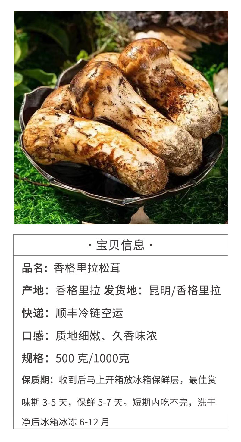 1.新鲜松茸用吸水纸包裹后放保鲜盒密封,冰箱保鲜层保存,忌沾水,请于5-7天内食用