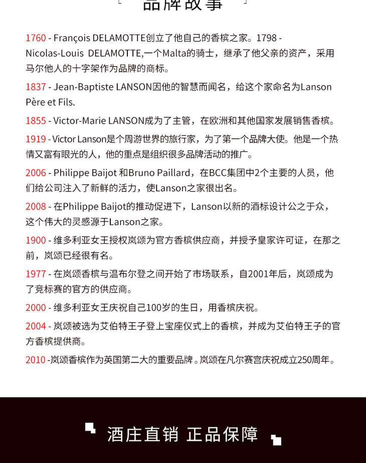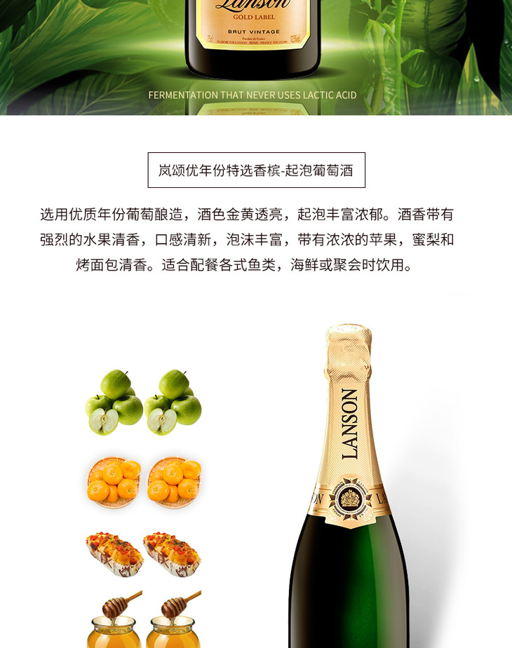 法国原瓶进口香槟 岚颂优年份特选香槟 Champagne Lanson Gold label Millesime 单支750ml