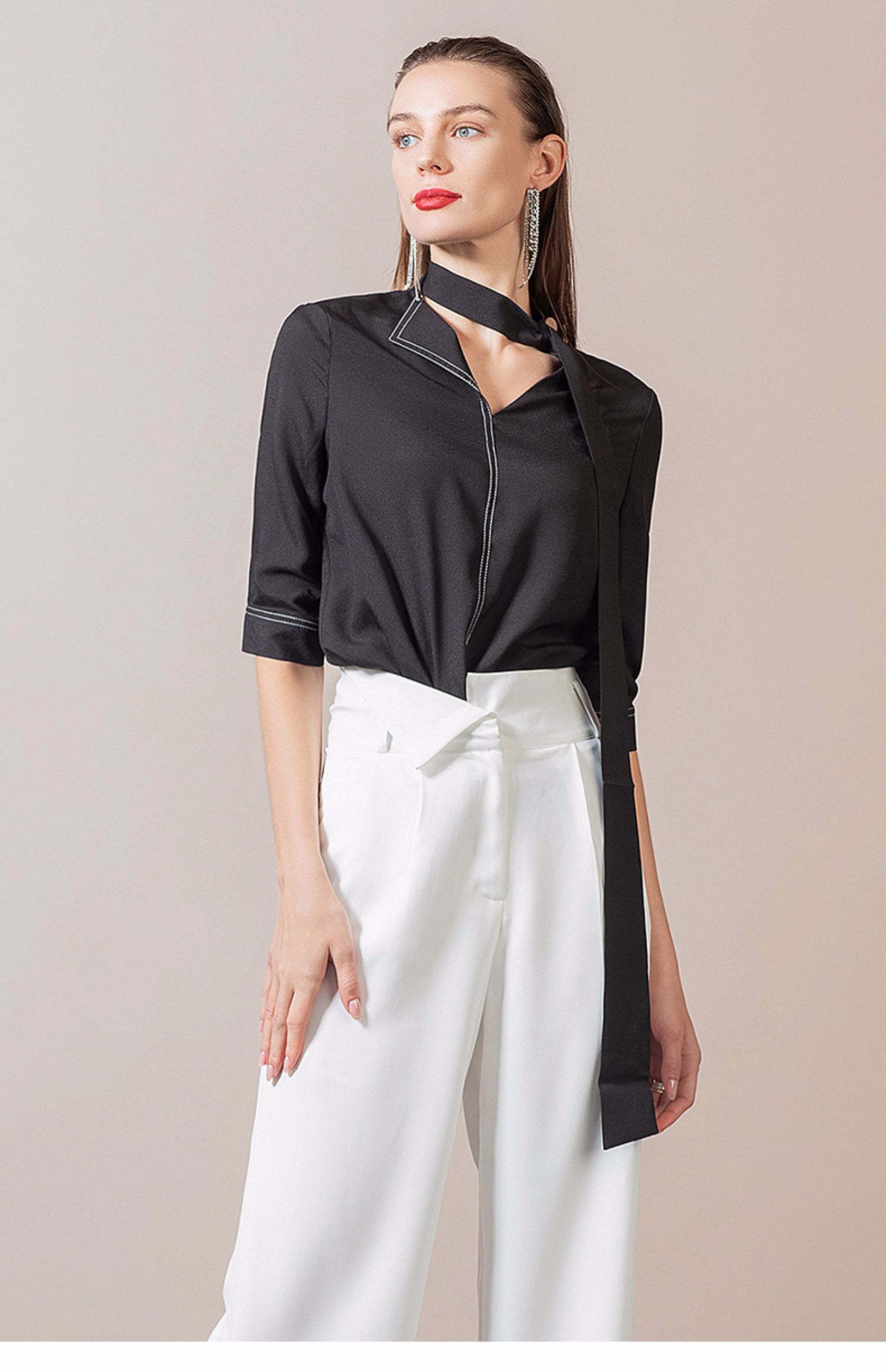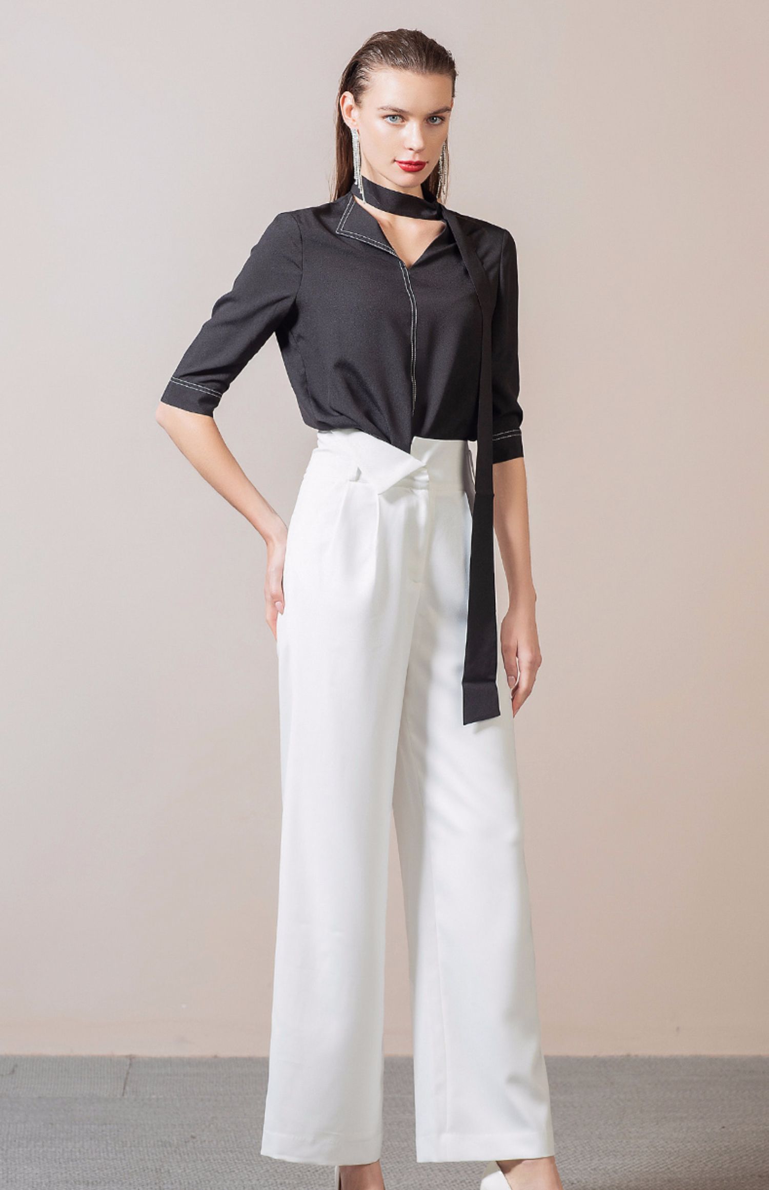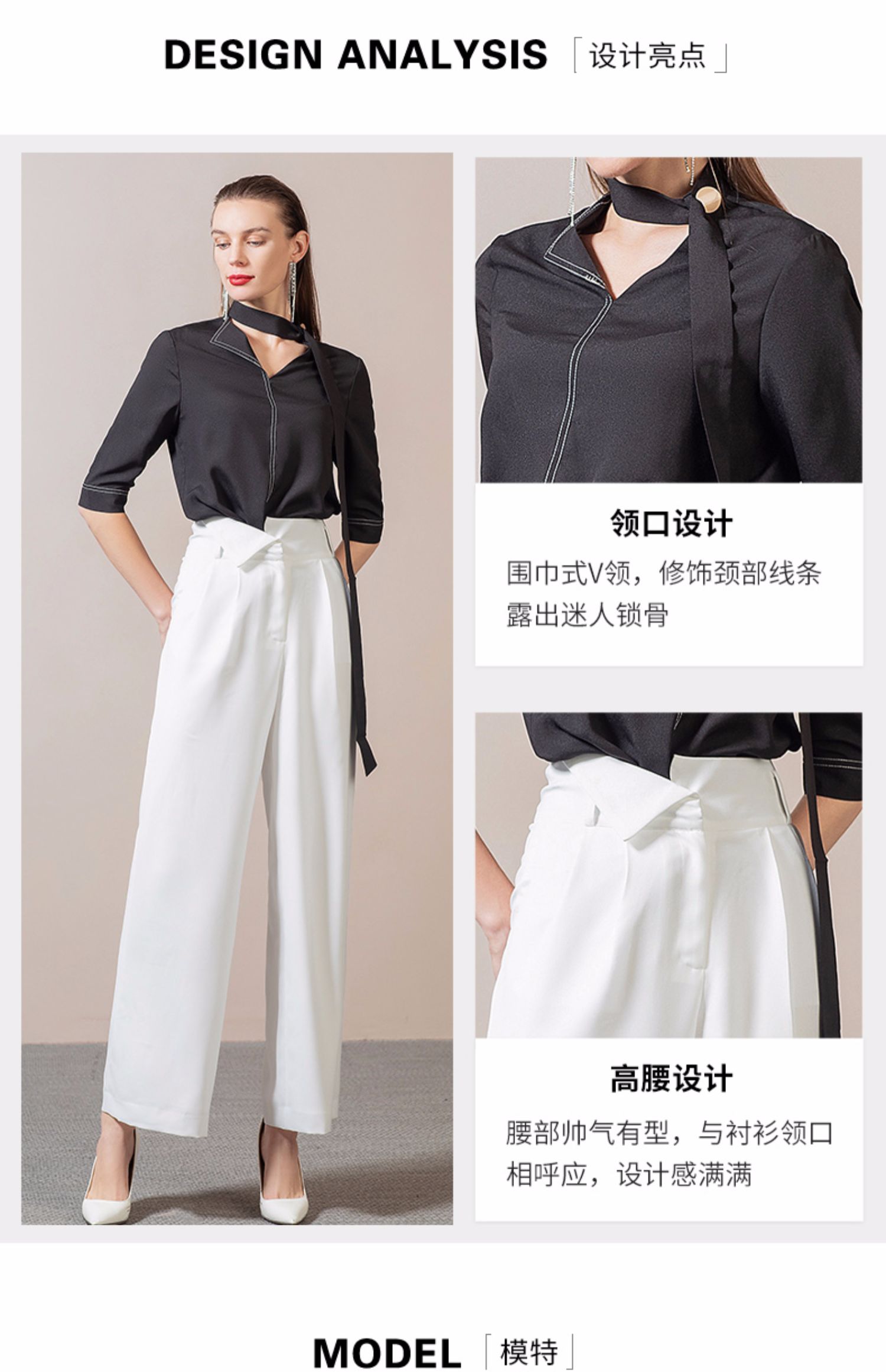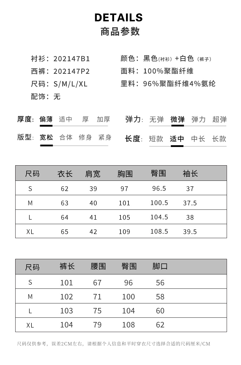 IWY/黑色衬衫白色裤子西装职业套装女个性初高端办公室时尚202147B1+P2