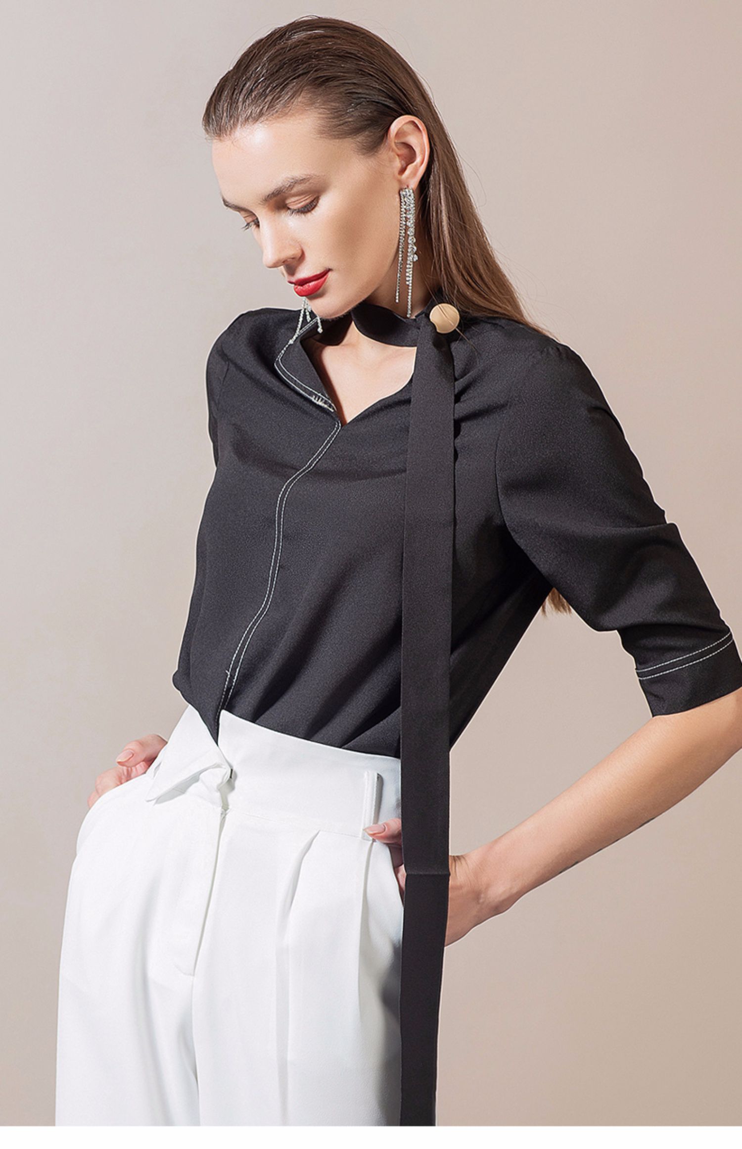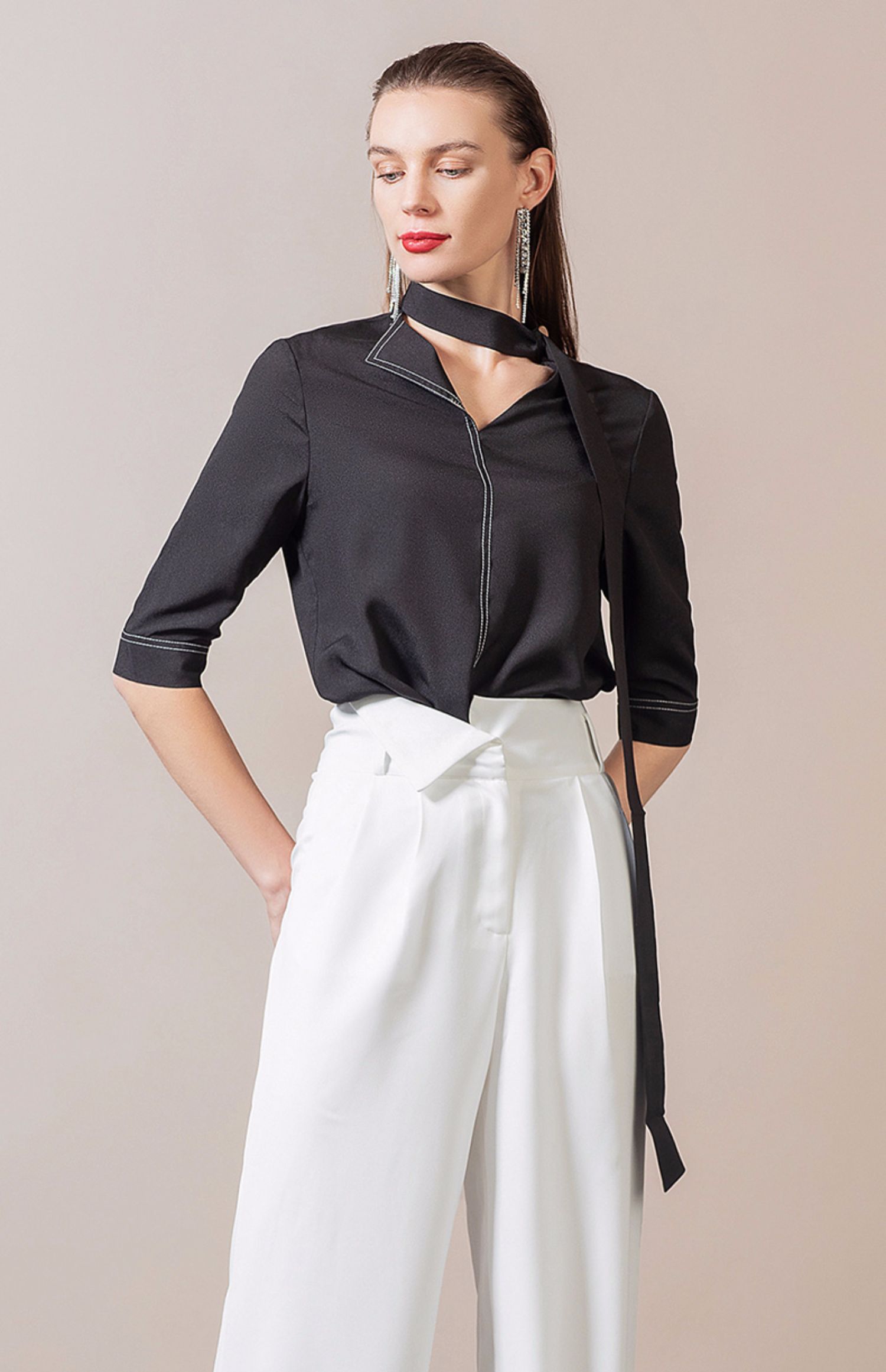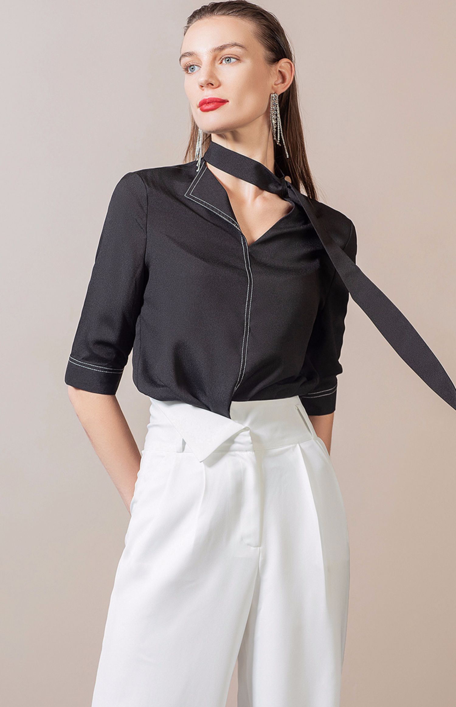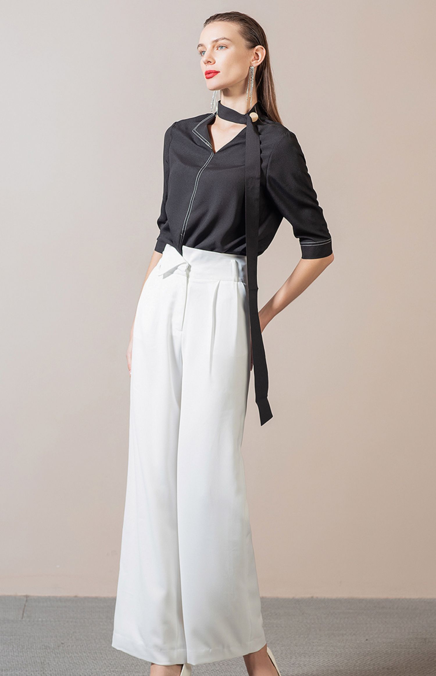 IWY/黑色衬衫白色裤子西装职业套装女个性初高端办公室时尚202147B1+P2