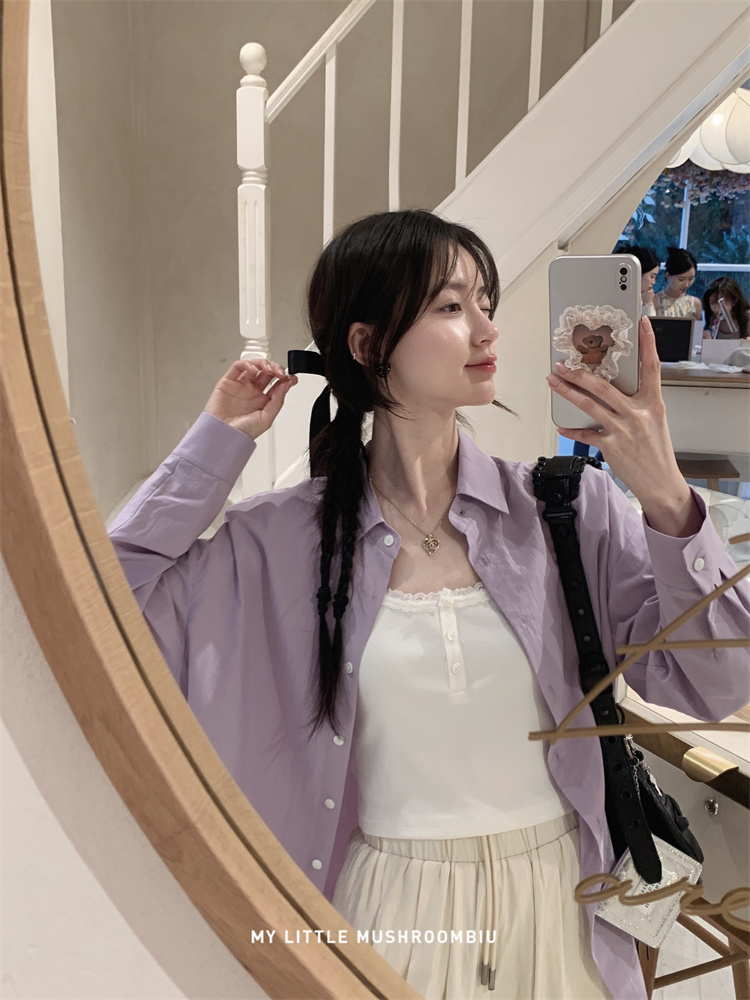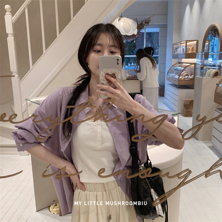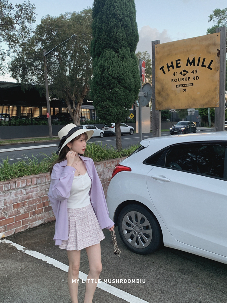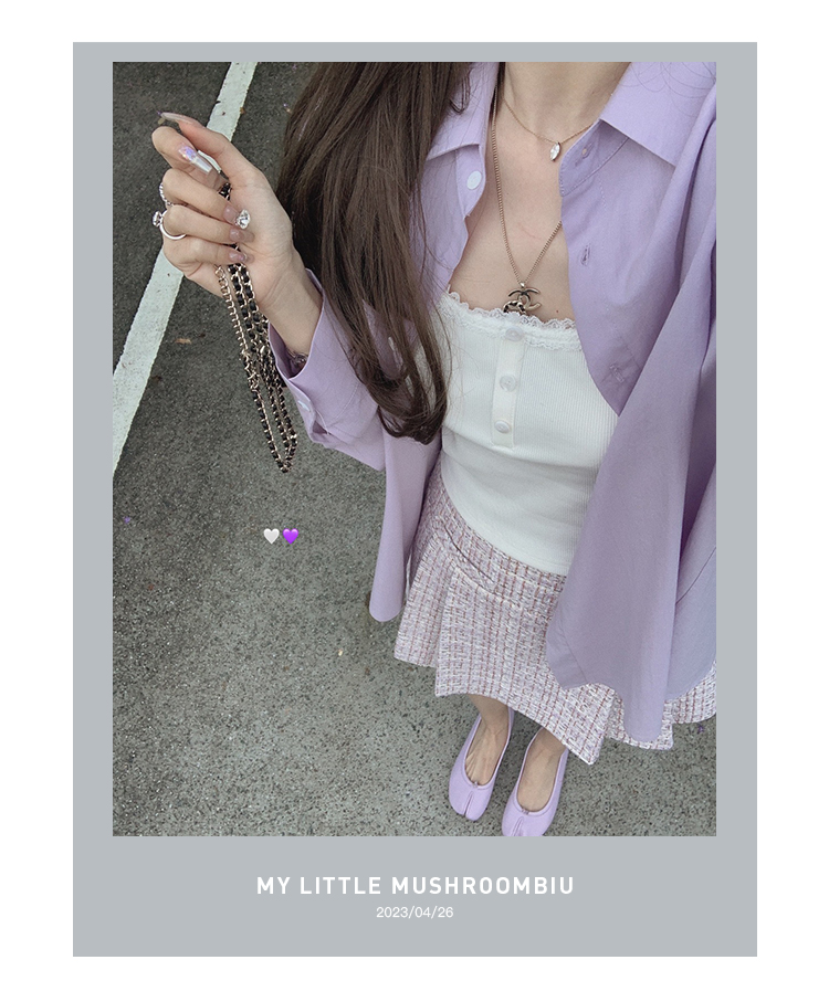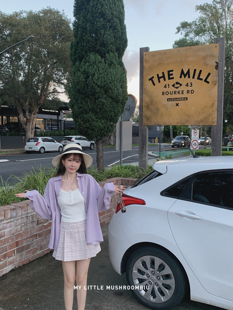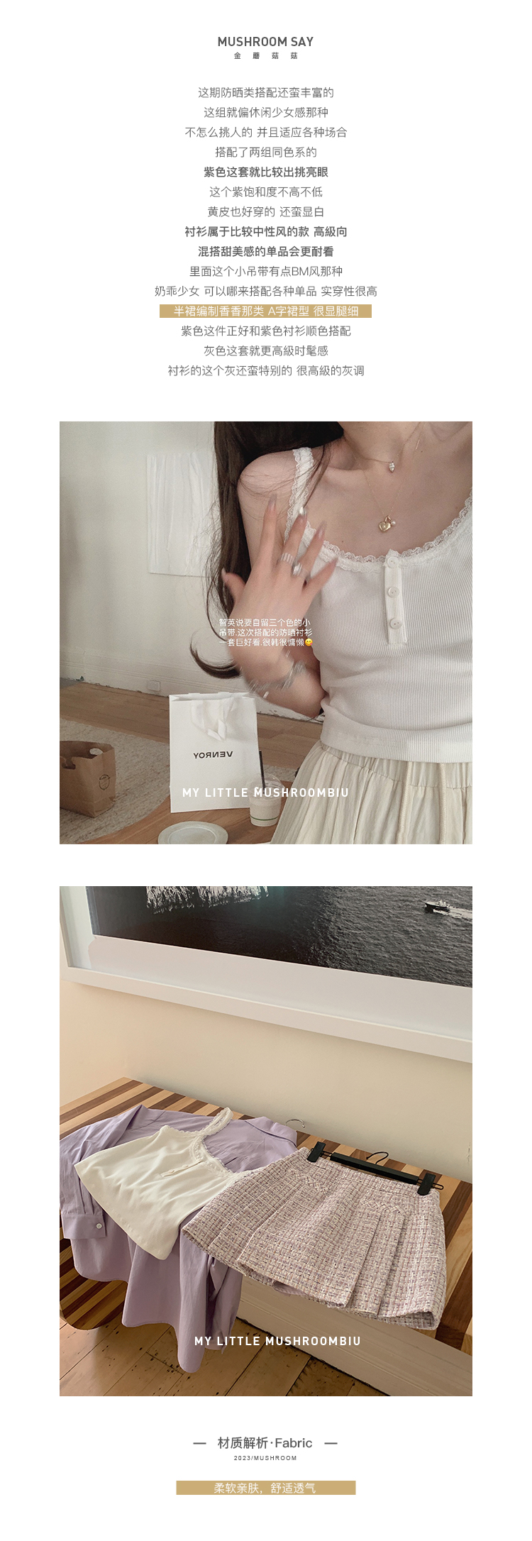奶灰/紫色半裙 金蘑菇菇 奶香冷翠 防晒三件套/ 甜辣少女防晒衬衫吊带短裙套装夏