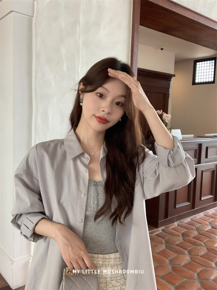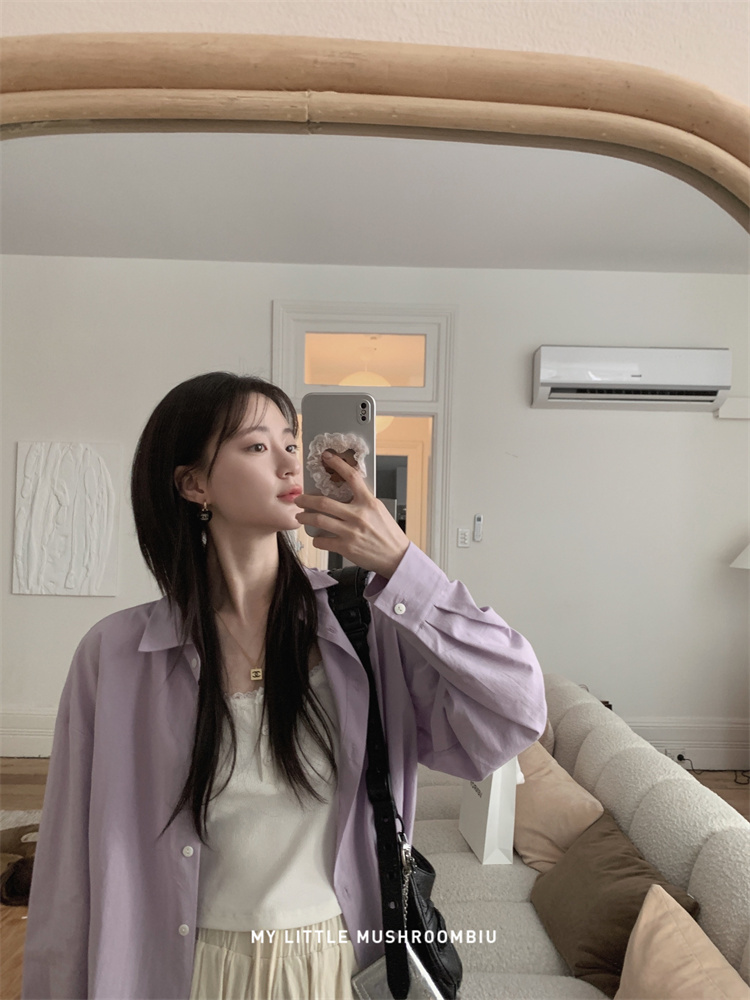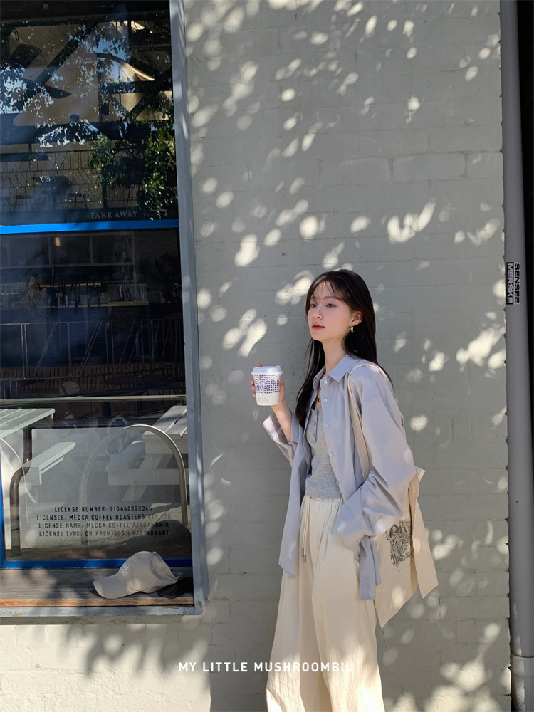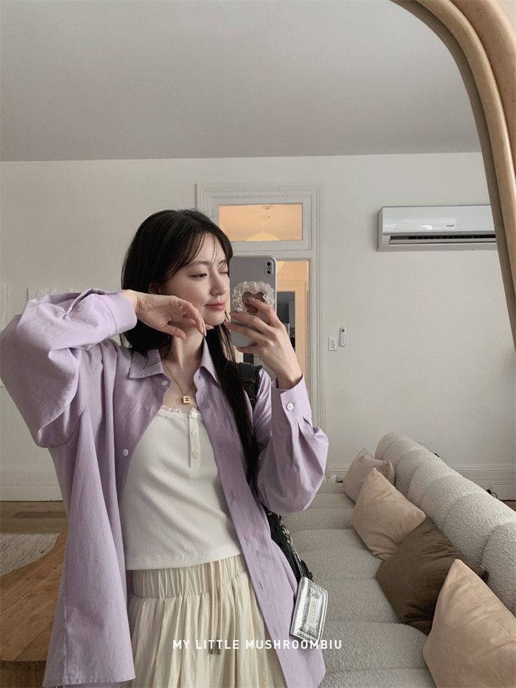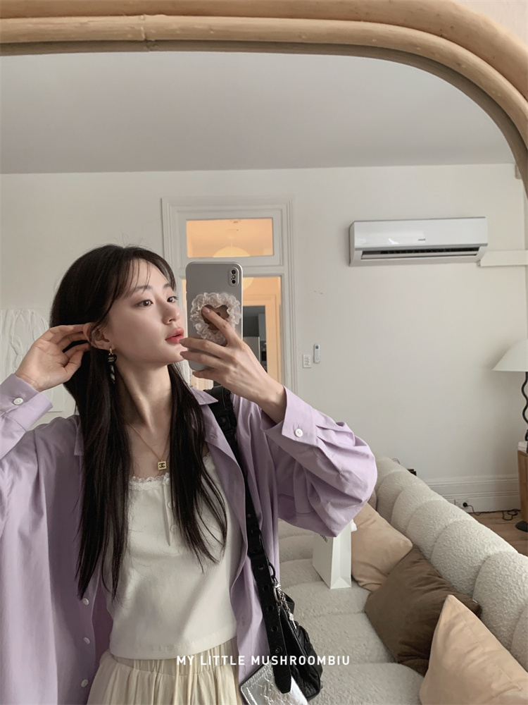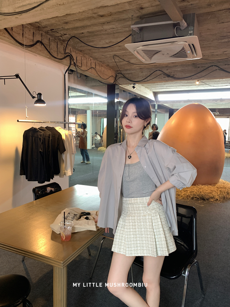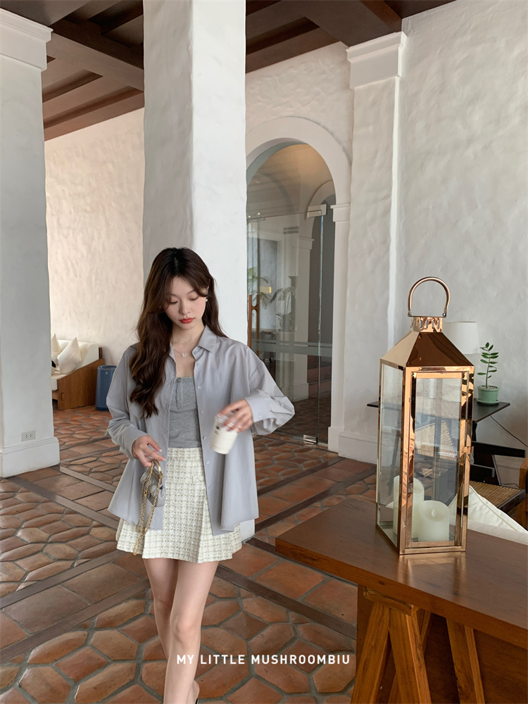 奶灰/紫色半裙 金蘑菇菇 奶香冷翠 防晒三件套/ 甜辣少女防晒衬衫吊带短裙套装夏