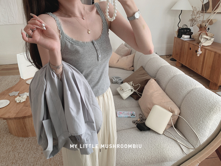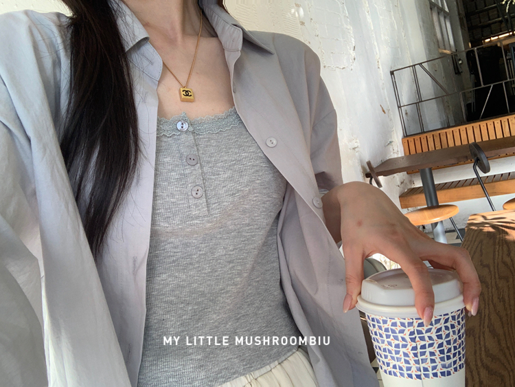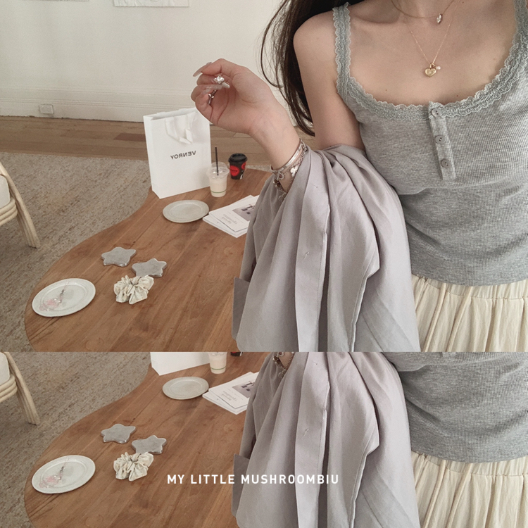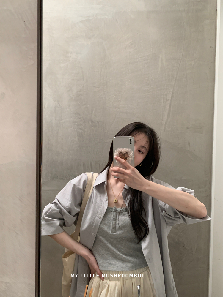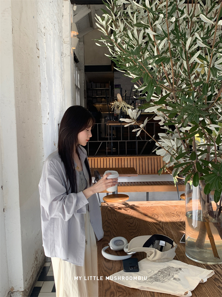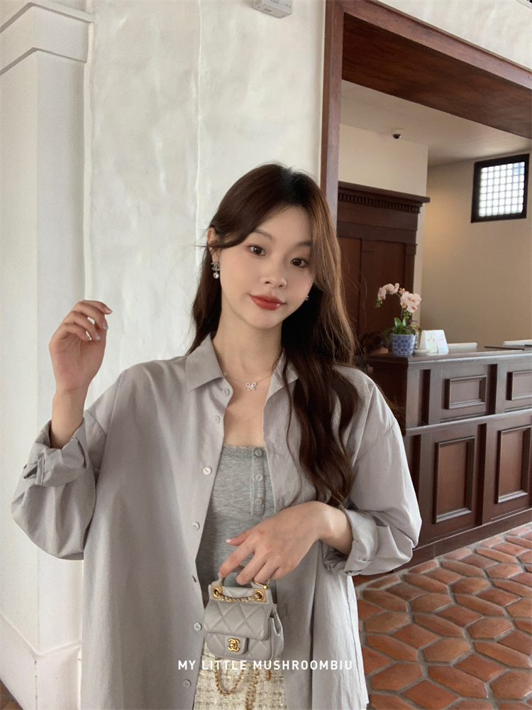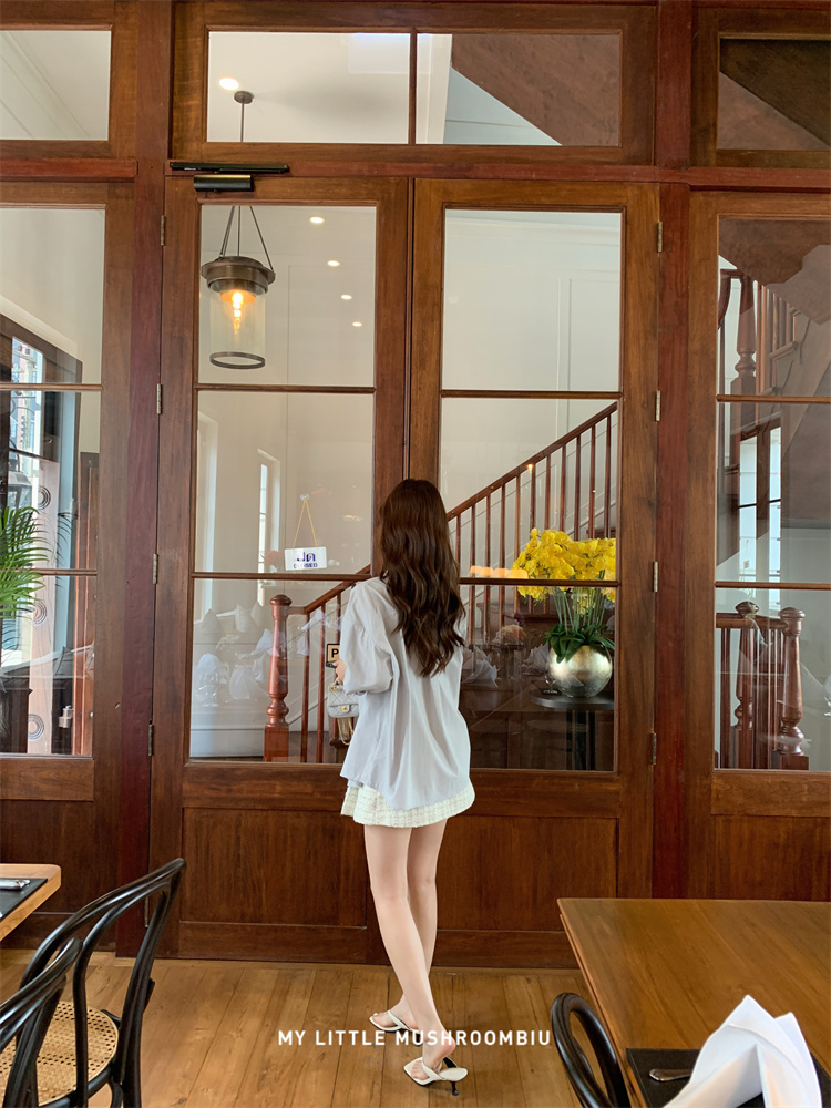 奶灰/紫色半裙 金蘑菇菇 奶香冷翠 防晒三件套/ 甜辣少女防晒衬衫吊带短裙套装夏