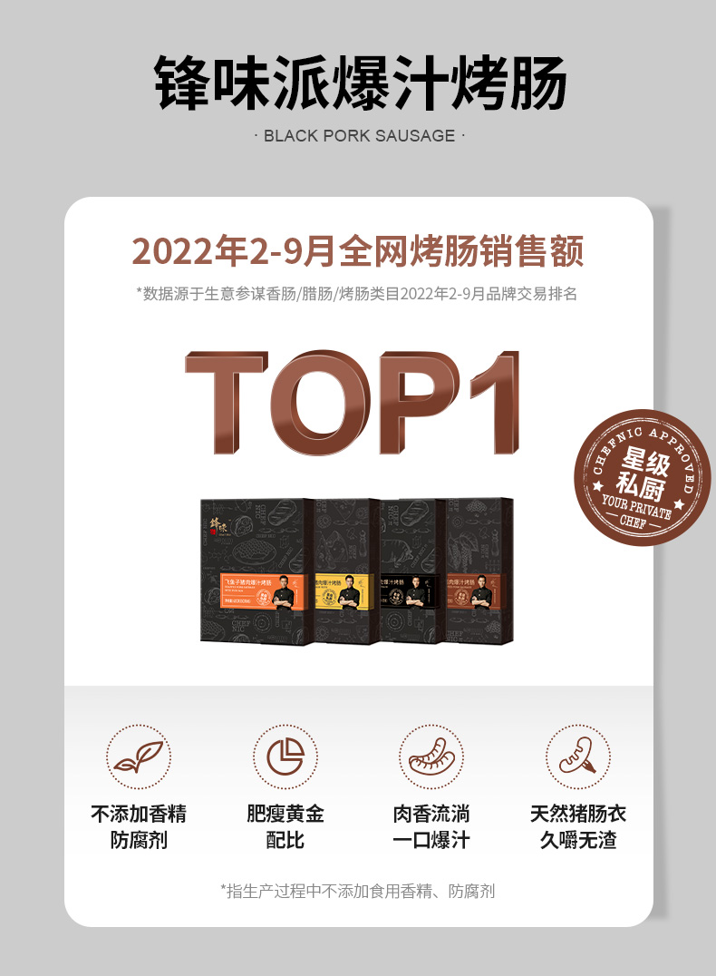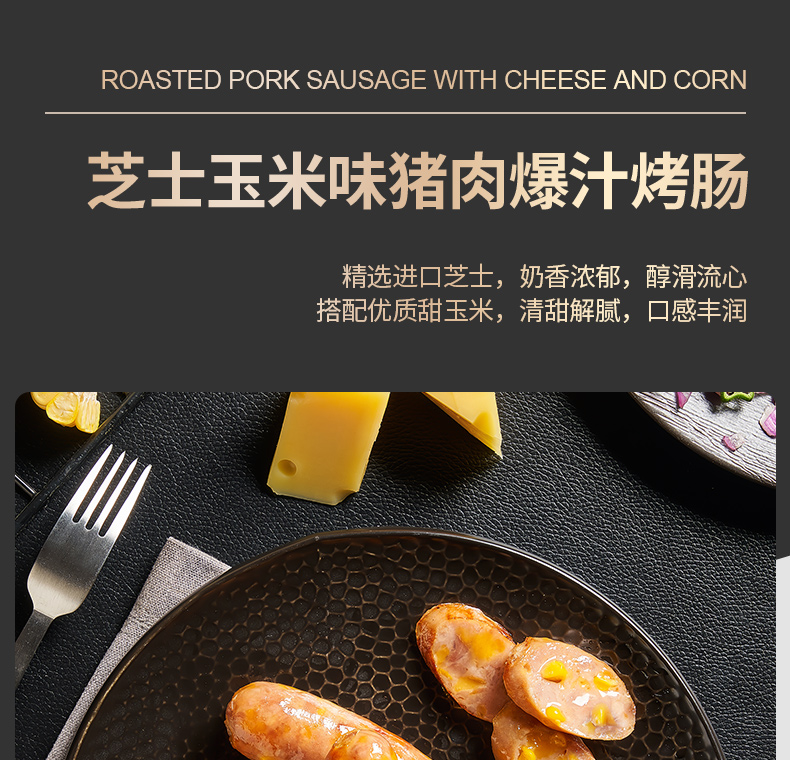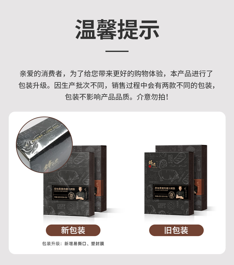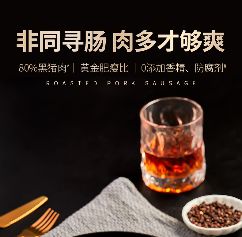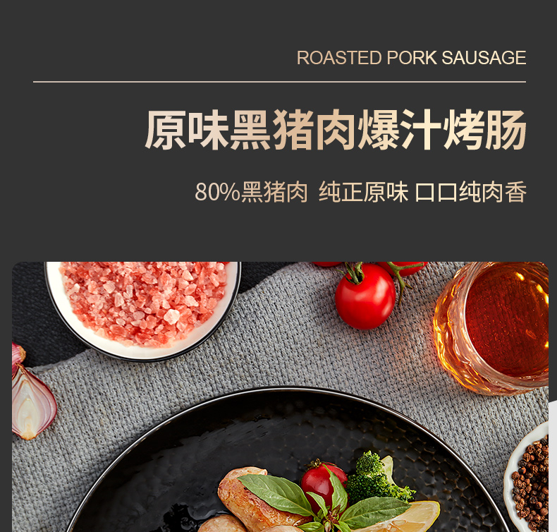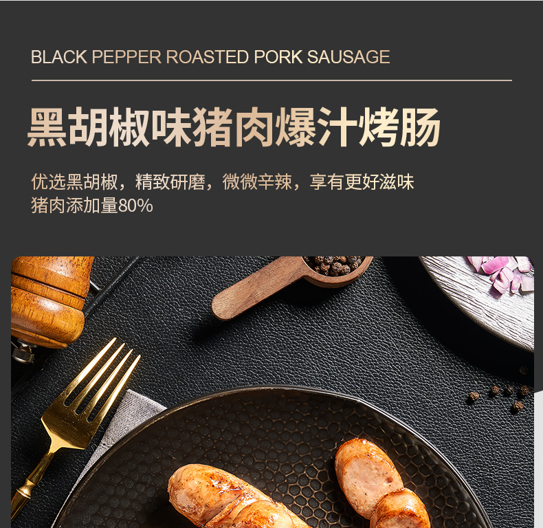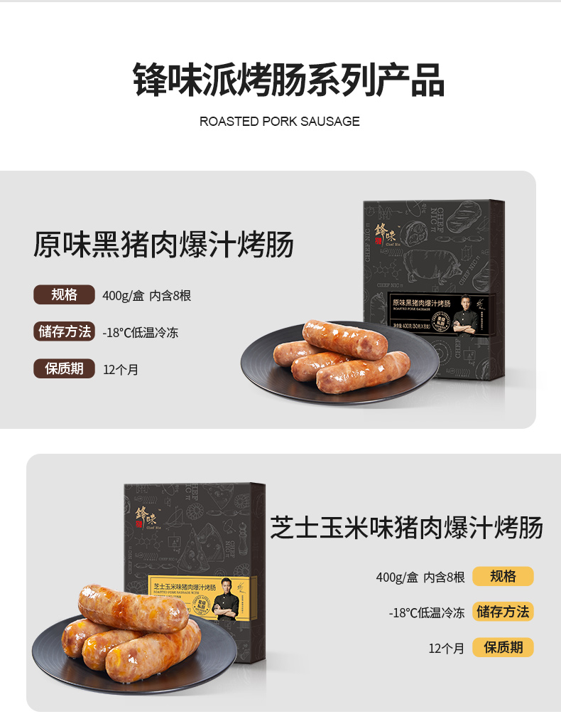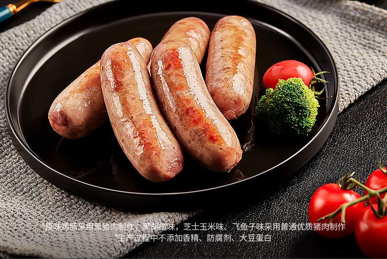 锋味派 火山石烤肠台湾纯香肉肠 地道肉肠脆皮肠 原味+黑椒组合装火腿肠