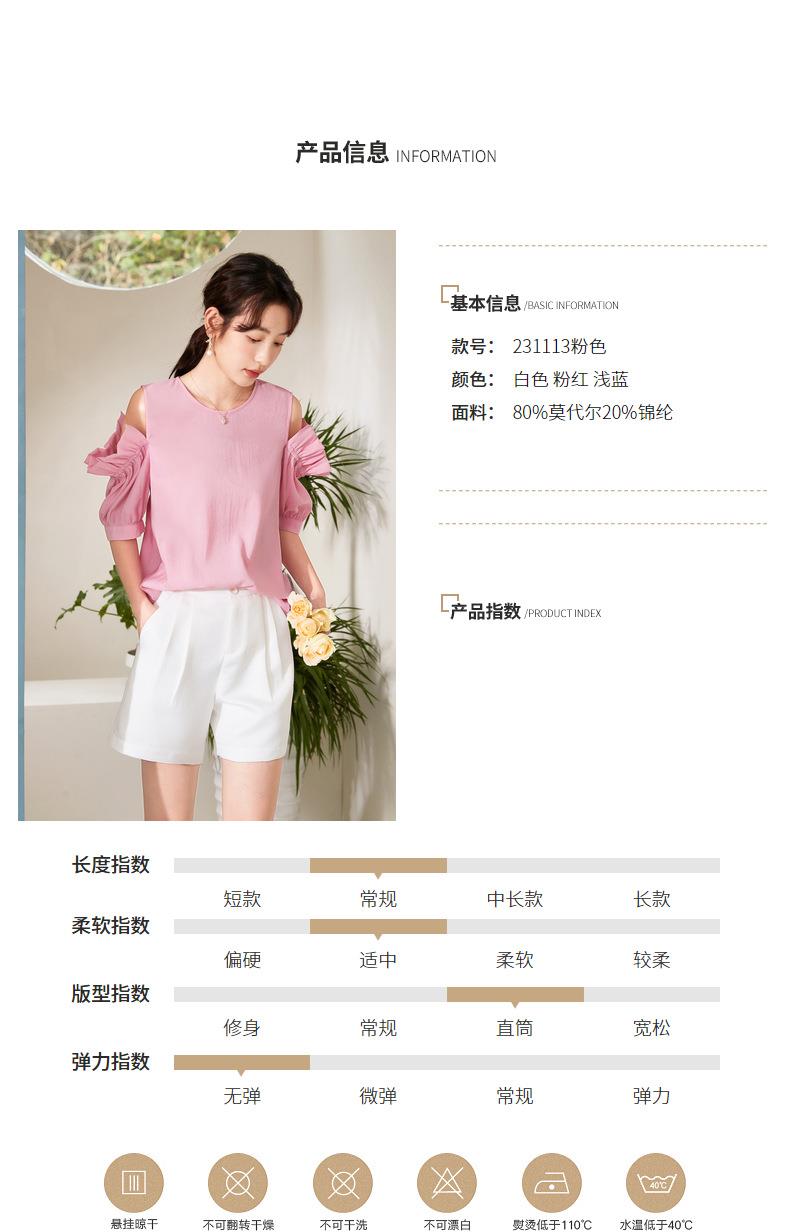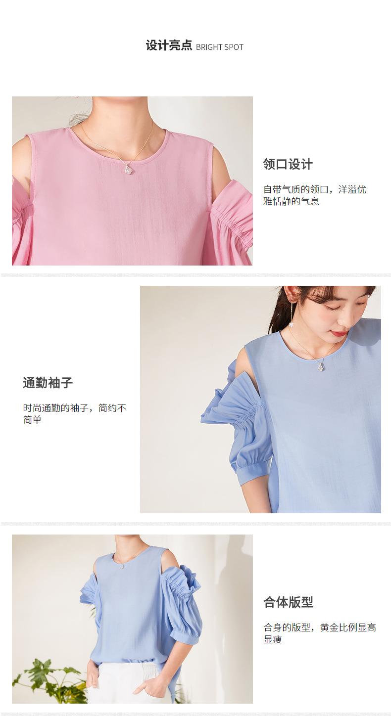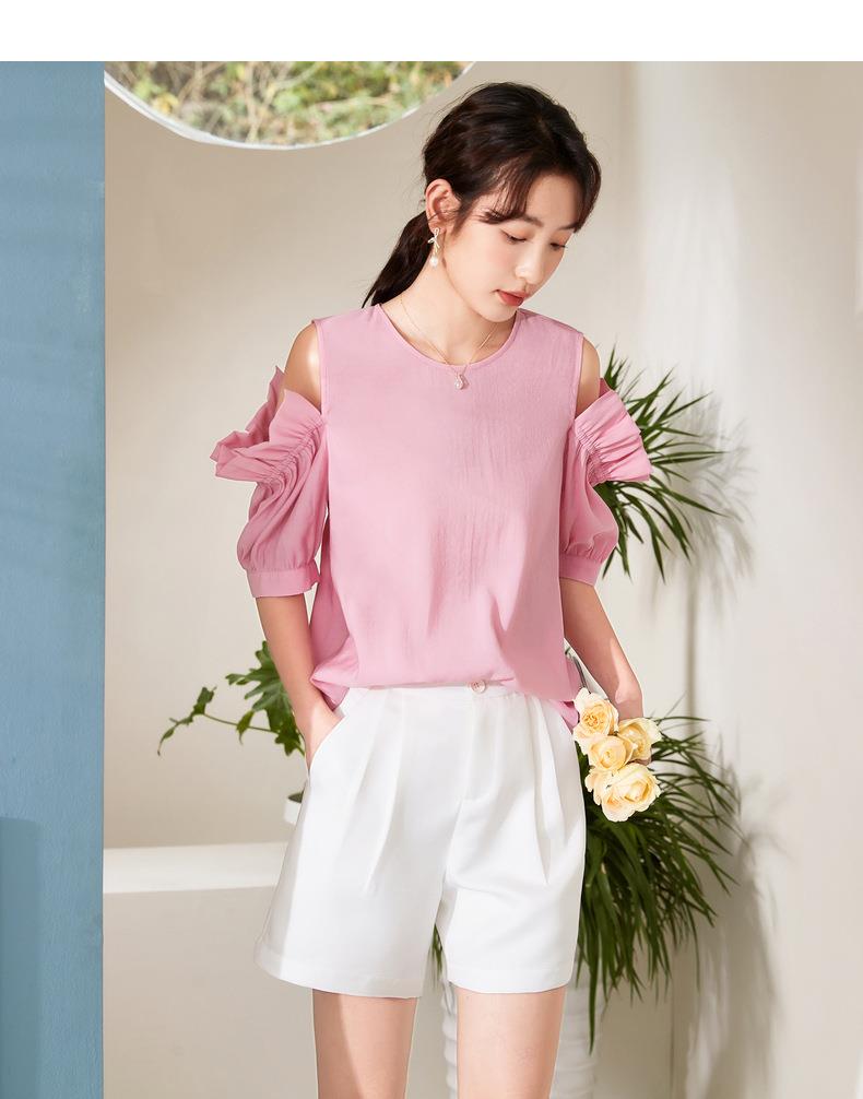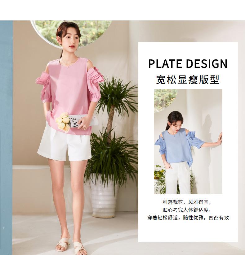 百姿 短袖圆领雪纺衫女2023夏季新款韩版直筒显瘦小衫上衣女装