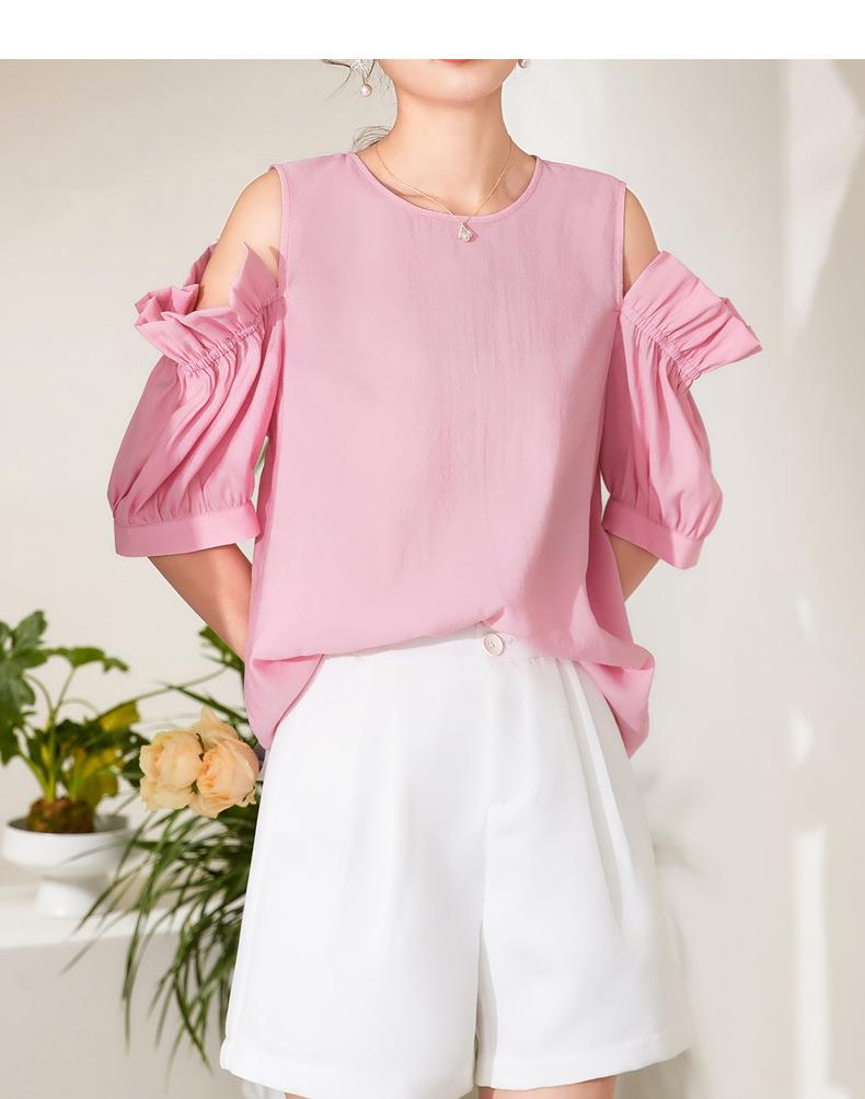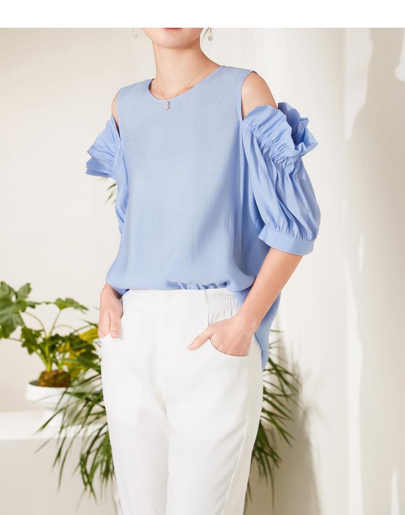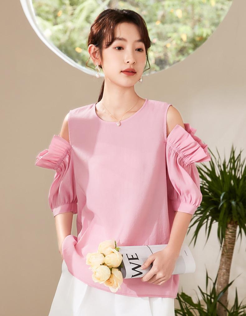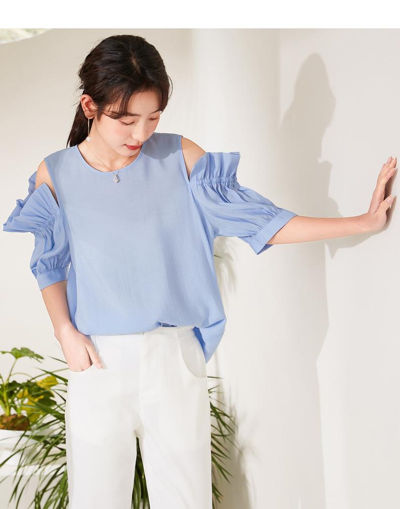 百姿 短袖圆领雪纺衫女2023夏季新款韩版直筒显瘦小衫上衣女装