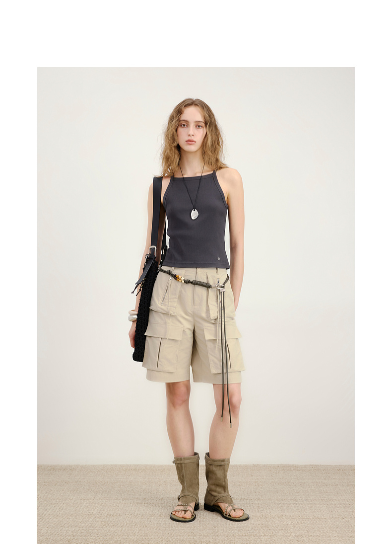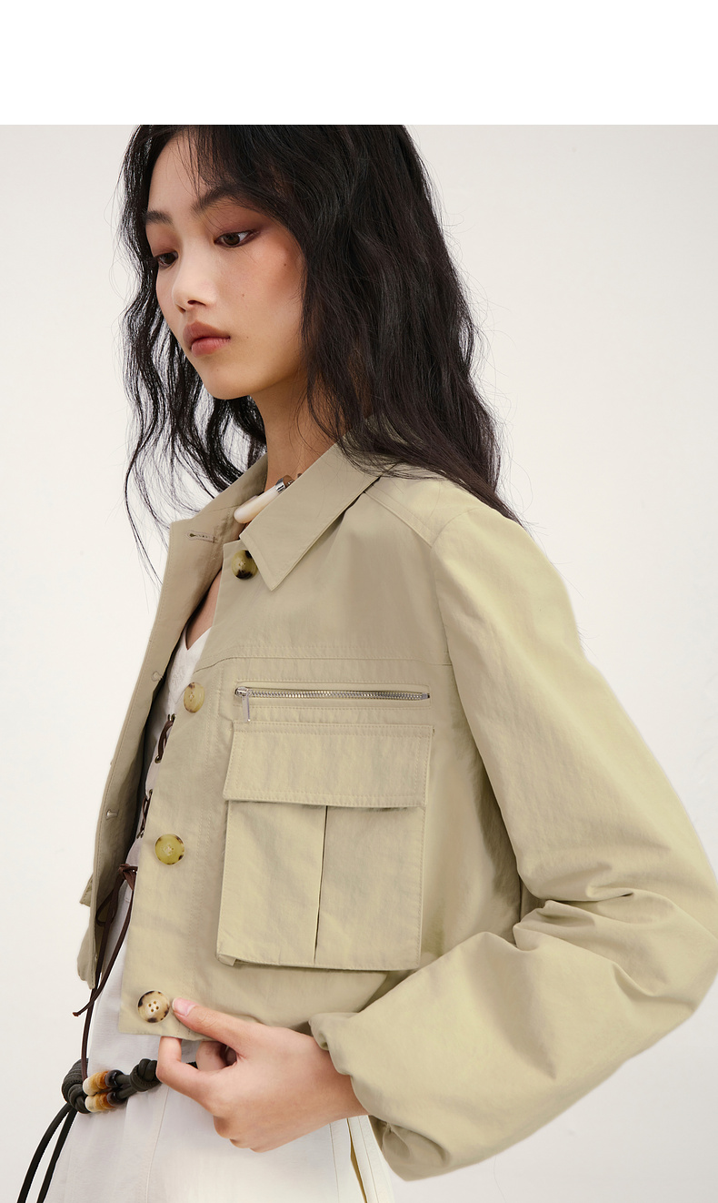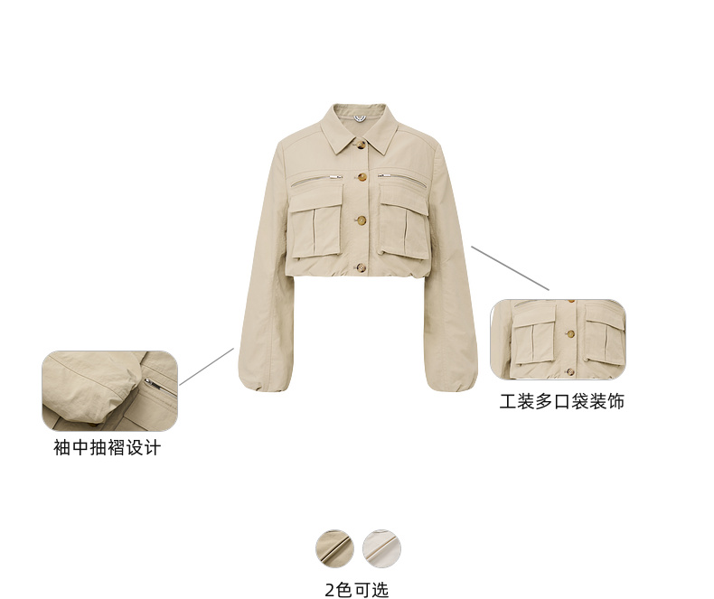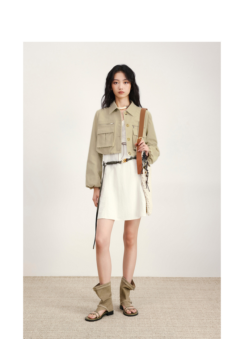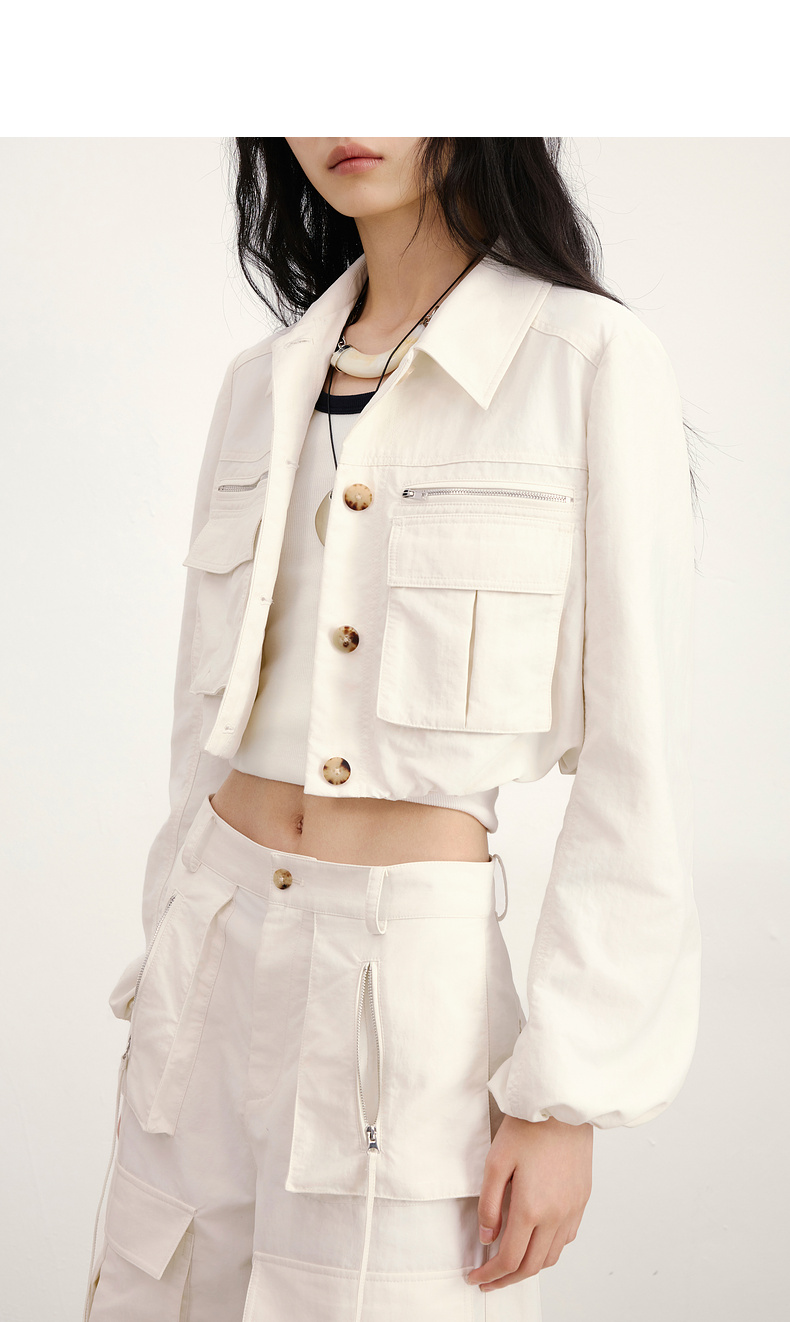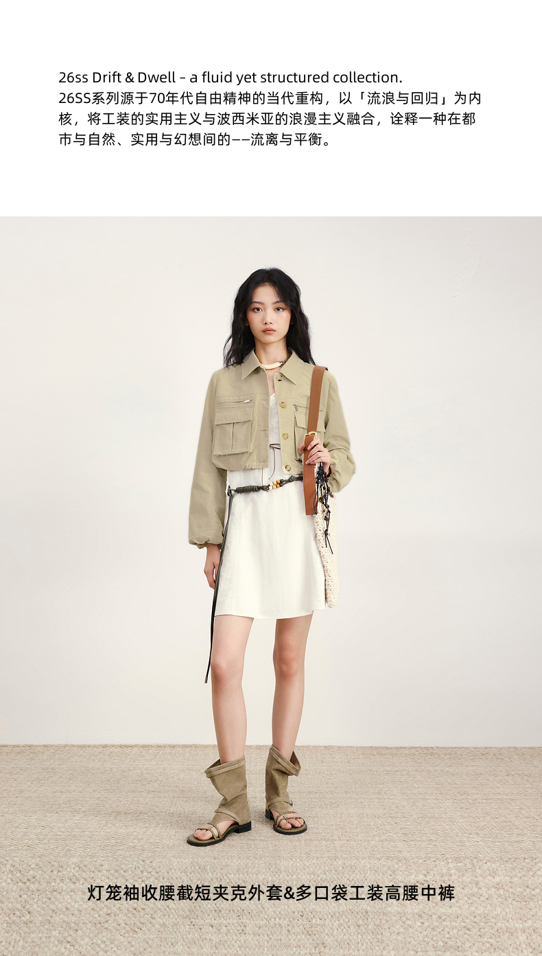 lost in echo2026年春夏新款工装风收腰灯笼袖短夹克外套中裤套装
