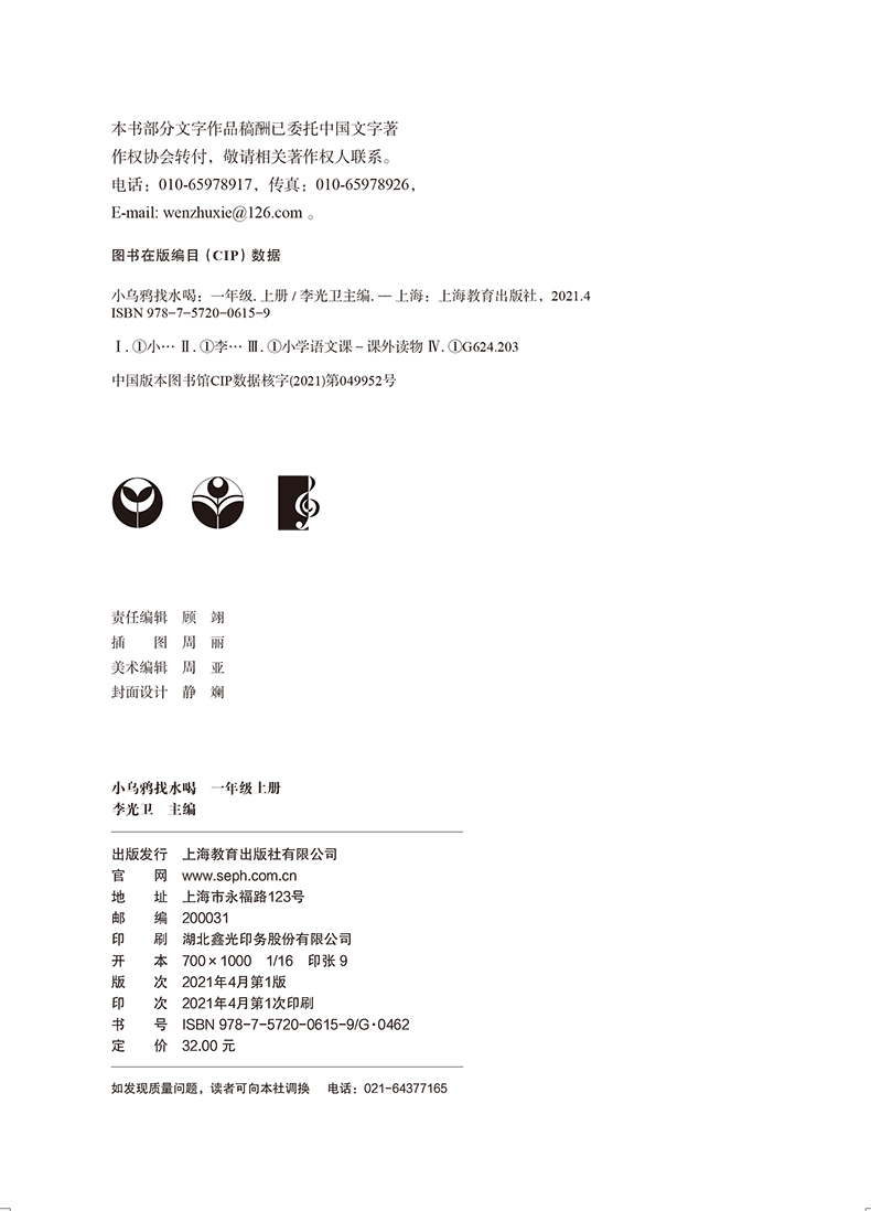 小乌鸦找水喝 一年级上册课外书 注音版 李光卫主编 小学生快乐阅读丛书课外读物书 上海教育出版社fb
