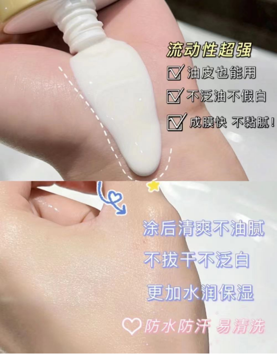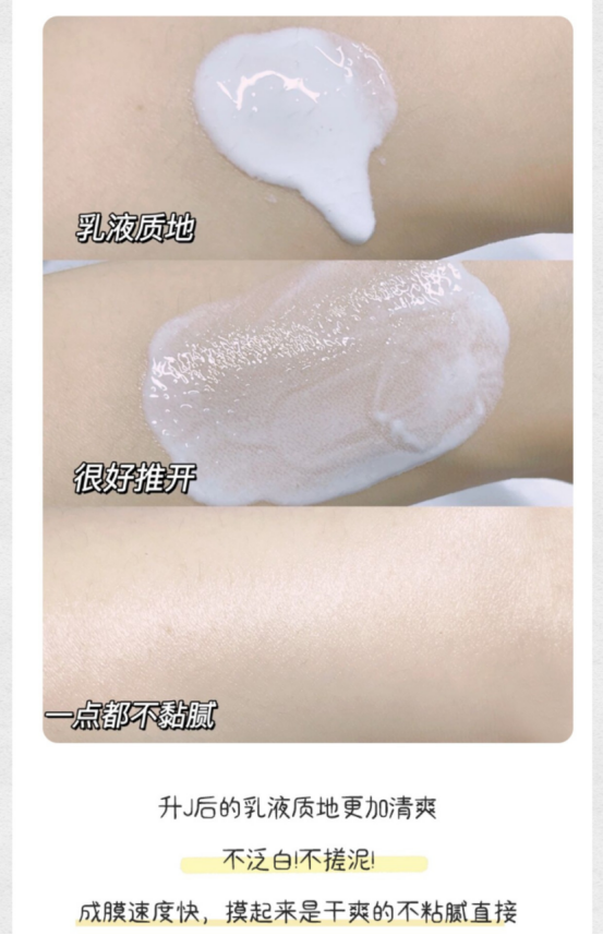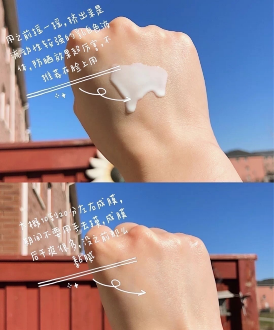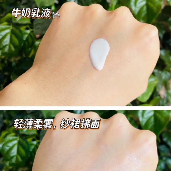 质地轻薄滋润不黏腻,好吸收、不泛白,防晒力持久!用前摇一摇~~