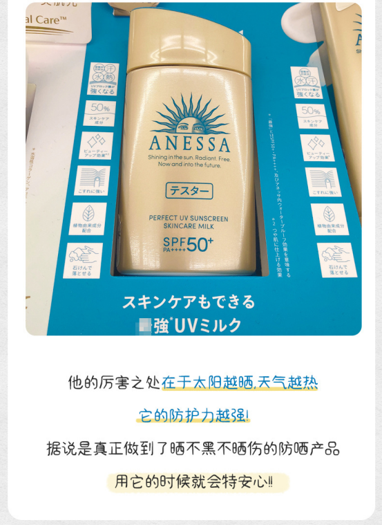 在日本连续20年销量第一,Anessa安耐晒至今俨然成为亚洲强劲的防晒品牌,有个很残酷的事实:一天防晒没做好,一年美白全白费,三、四月不防晒,五月六月徒伤悲。