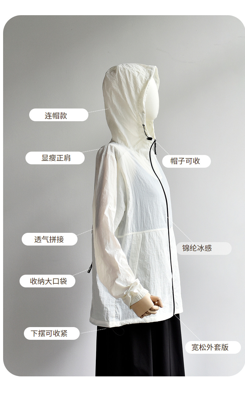 【软壳防晒外套】 Lulu大牌同款梭织锦纶冰感休闲防晒衣 连帽轻薄户外运动夹克短外套