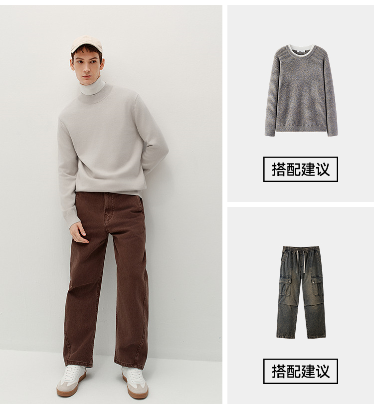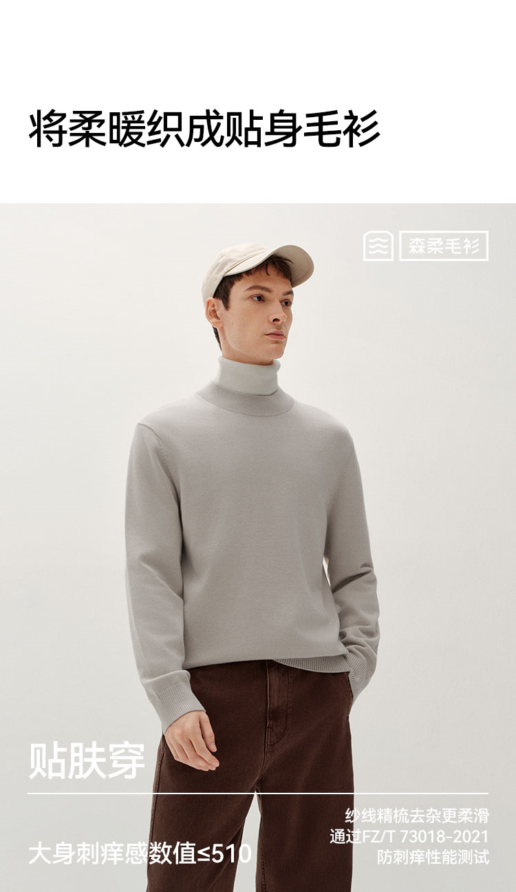 森柔|商场同款森马毛衫男冬发热抗静电半高领内搭2025新款针织衫
